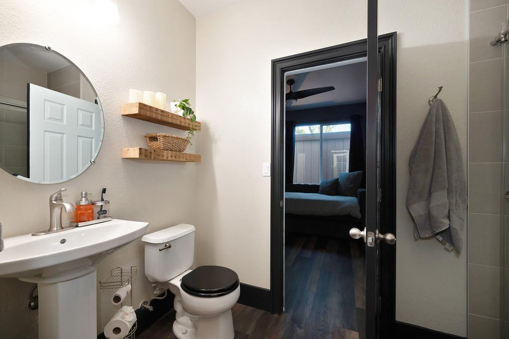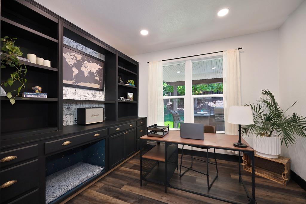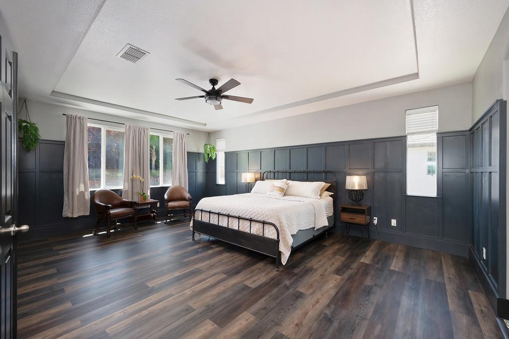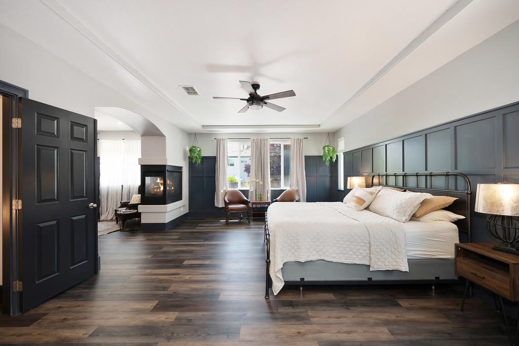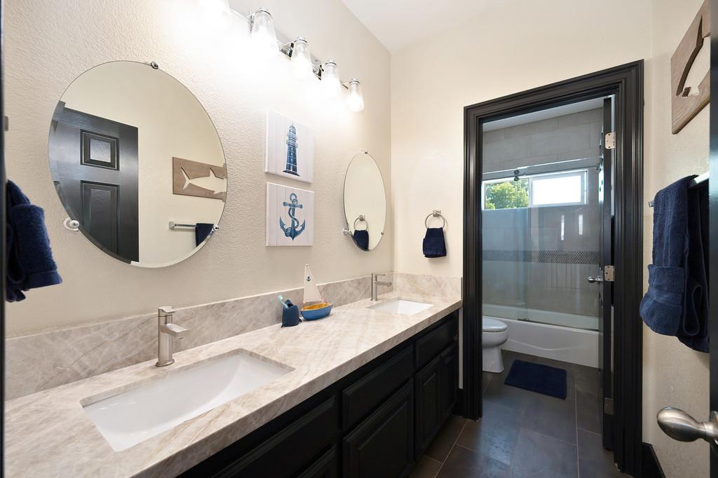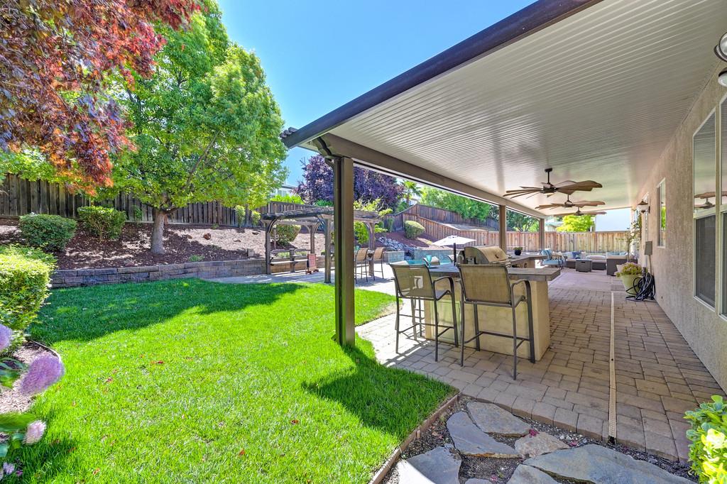 Elegant remodeled 3,600 square foot JMC 4-5 bedroom / 4 full bath home in the sought-after gated community of Morgan Greens. Situated near the end of a cul-de-sac, this exquisite property offers versatile living spaces with a family room w/ fireplace that opens to the kitchen, formal dining room, office/ 5th bedroom, and a convenient downstairs bedroom complete with an ensuite full bathroom. Upstairs bedrooms, laundry room, upstairs living room, and a luxurious primary suite is a serene retreat with a two-sided fireplace, dual closets, and a claw tub. A stunning Salt Water Pool is the heart of the beautifully landscaped backyard, perfect for entertaining all summer long including a new covered patio, built-in BBQ/kitchen area, 9-hole putting green, outdoor shower w/ toilet, and a spa hookup & pad. The expansive Lot and 4-Car garage has ample space for vehicles and additional storage. Just steps from the community park with play areas, tennis courts, and trails, this home blends elegance, functionality, and outdoor appeal for all.