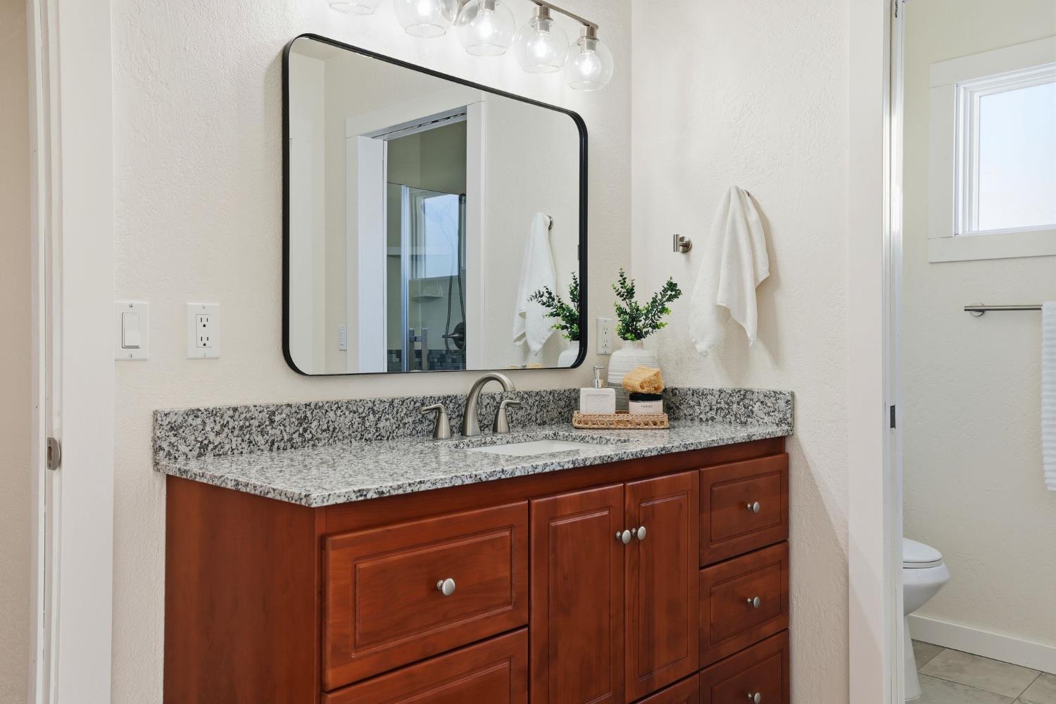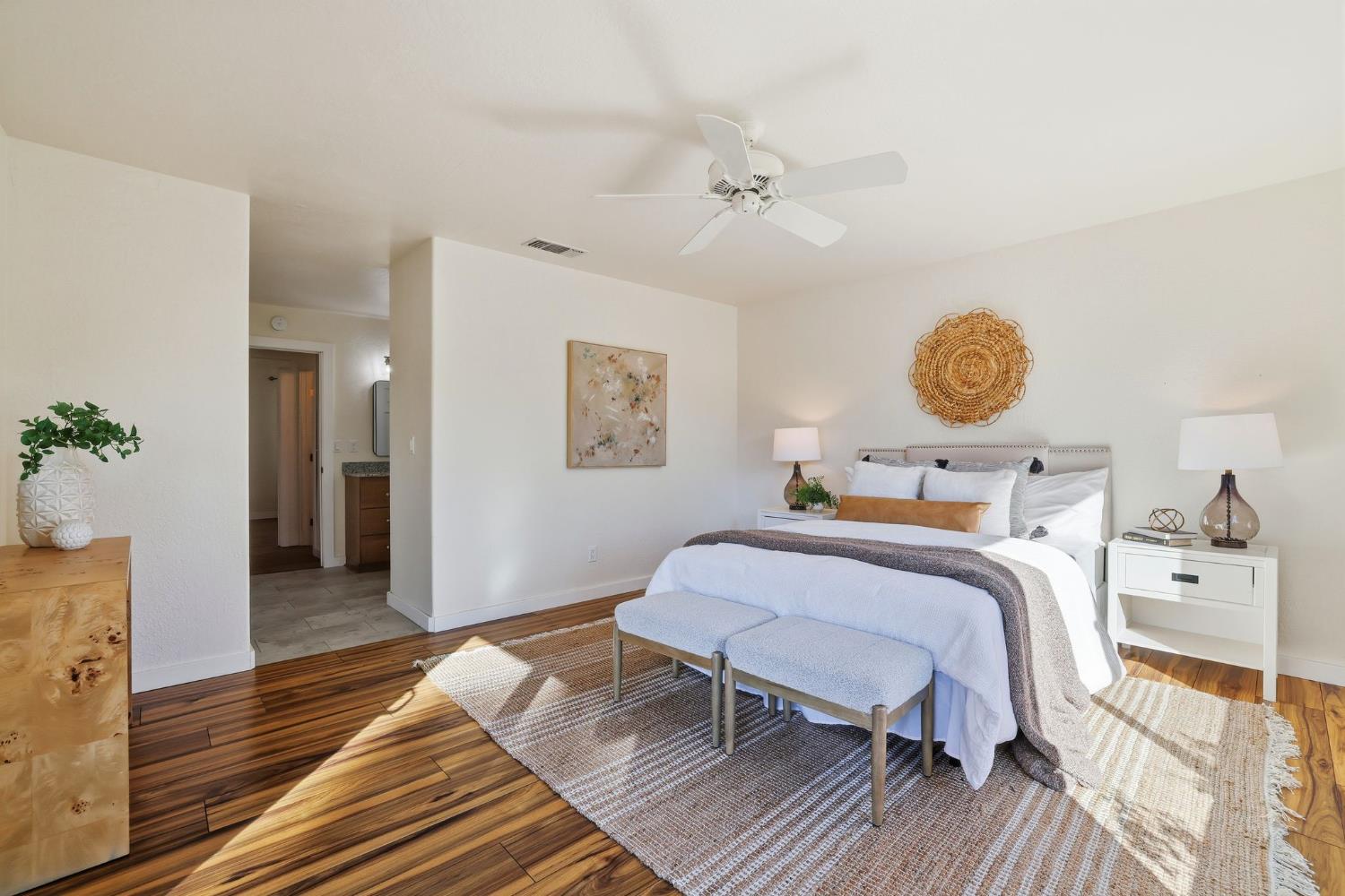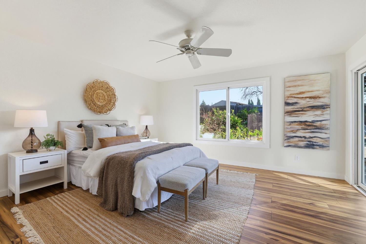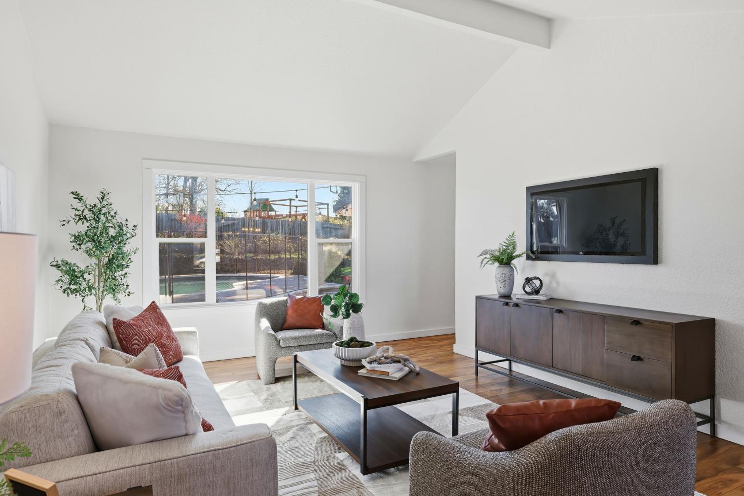 Set at the end of a quiet Rocklin cul-de-sac, this single-story home on a spacious 0.32 acre lot feels welcoming from the moment you arrive. The front patio is set up with bistro lighting and a fire pit, perfect for entertaining or relaxed evenings. Inside, the living room and family room feature high ceilings and abundant natural light, creating an open, airy feel. The living, dining, and family rooms flow seamlessly into the kitchen, making it easy to gather and entertain. Down the hallway are four bedrooms and two bathrooms, including a primary suite with its own bathroom and dual closets. Sliding doors open to the backyard, making indoor/outdoor living a breeze. The home sits on a large, thoughtfully designed lot, and the backyard offers so many highlights. There is a fenced pool with a waterslide, garden, kids play area, citrus trees, and mature landscaping that make it feel private and lived in. Owned solar and an EV charger bring practical value. Whether it's weekend barbecues, watching the kids play in the backyard after school, or quiet evenings by the fire pit, this home is ready for everyday moments and lasting memories. Located just minutes from parks, trails, and top-rated Rocklin schools.