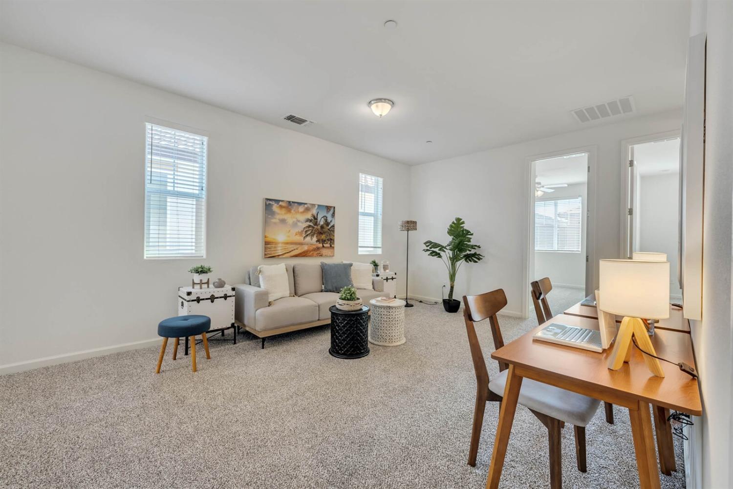 Welcome to this well-maintained 3-bedroom, 2.5-bath home in the heart of Natomas, offering 1,868 sqft of comfortable living space. Built in 2017, this modern gem features an upstairs loft area, perfect for a home office or entertainment space. The open-concept design flows seamlessly into a beautiful covered patio with a ceiling fan, ideal for year-round outdoor enjoyment. With a no-maintenance yard, this home is perfect for those seeking a low-upkeep lifestyle. Located close to a park and near-by school, it's the perfect blend of convenience and style for families or professionals!