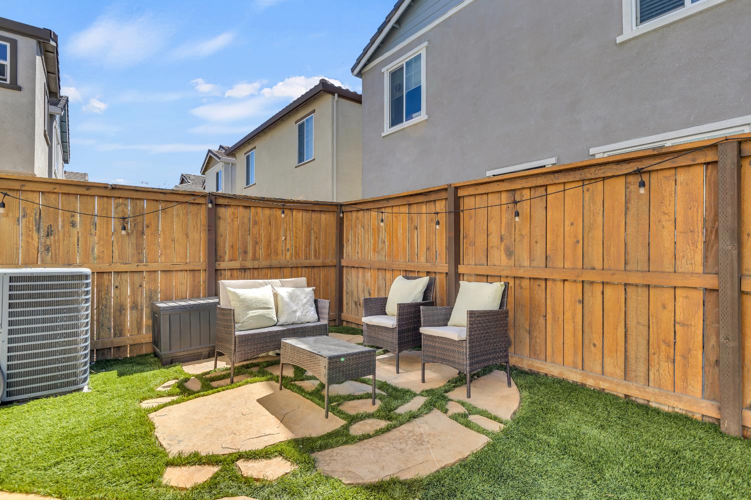 This stylish 4-bedroom, 2.5-bath Beazer home is packed with upgrades and designed for comfort. Step inside to soaring ceilings and a bright, open-concept great room perfect for gatherings. The modern kitchen shines with granite countertops, stainless steel appliances, upgraded cabinetry, pantry, and direct access to your low maintenance backyard. Upstairs, you'll find brand new plush carpeting, a convenient laundry room, and a spacious primary suite with a dual vanity, soaking tub, walk-in shower, and generous walk-in closet. Enjoy low-maintenance living with a beautifully finished outdoor patio, concrete surround, and easy-care landscaping. The attached 2-car garage adds everyday convenience. Located just steps from a huge park and minutes to the new Costco, shopping, dining, freeways, Sac International Airport, and downtown Sacramentoyou'll love the blend of lifestyle and location. Don't miss your chance to call this Natomas gem home!
