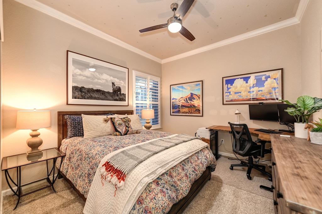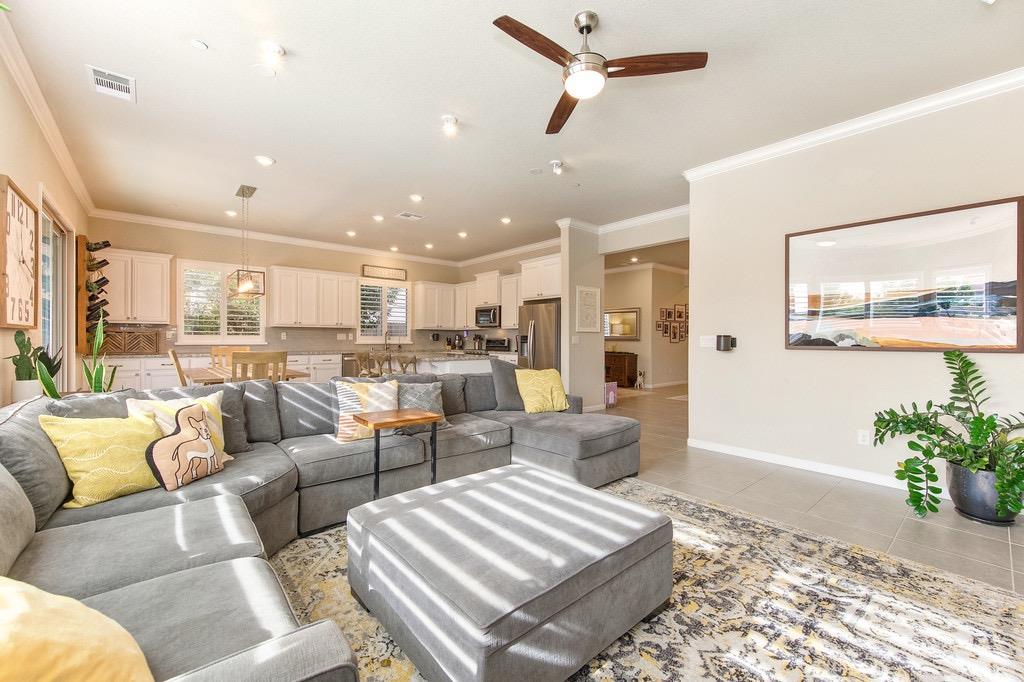 Discover The Park by JMC Homes, a premier gated community in Rocklin. This stunning single-story solar home built in 2018 offers 2,419 square feet of thoughtfully designed living space. With 4 bedrooms, 3 bathrooms, and a 3-car garage, this residence is perfect for modern living. The home is ideally situated across from a greenbelt and backs onto a private park, providing a peaceful and picturesque setting. The heart of the home is the spacious kitchen, featuring abundant storage, granite countertops, stainless steel appliances, a walk-in pantry, and an island that seamlessly connects to the dining area and large family room. The primary suite is a true retreat, complete with a luxurious bathroom featuring both a shower and a soaking tub. On the same side of the home, you'll find a second bedroom and bathroom, along with a well-equipped laundry room with upper cabinets and a sink. 2 additional bedrooms and bathroom are located on the opposite side, offering privacy and convenience. The backyard is great for entertaining, boasting a covered patio perfect for year-round gatherings and BBQs. Enjoy proximity to top-tier shopping destinations like Target, Trader Joe's, and Costco, as well as a variety of dining options. The home is zoned for the highly acclaimed Rocklin Schools.
