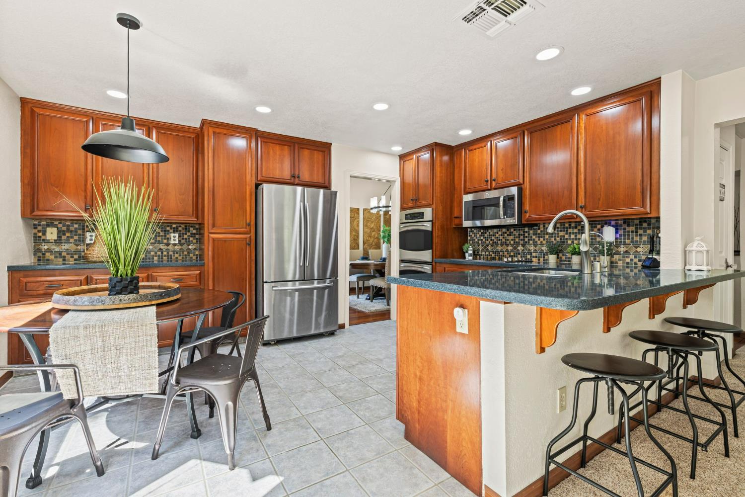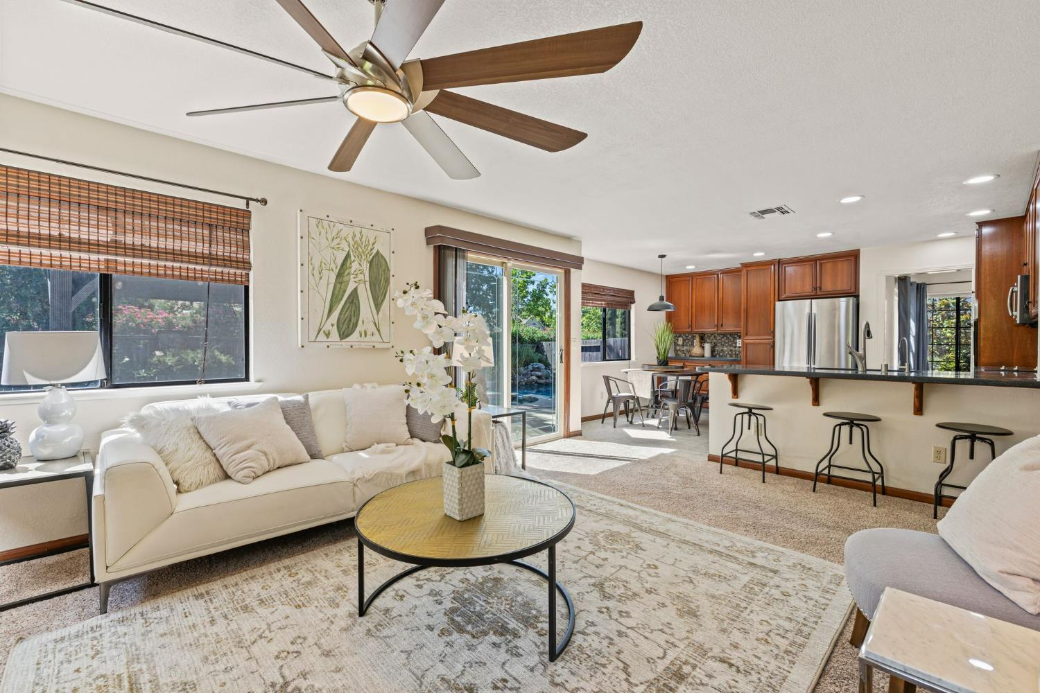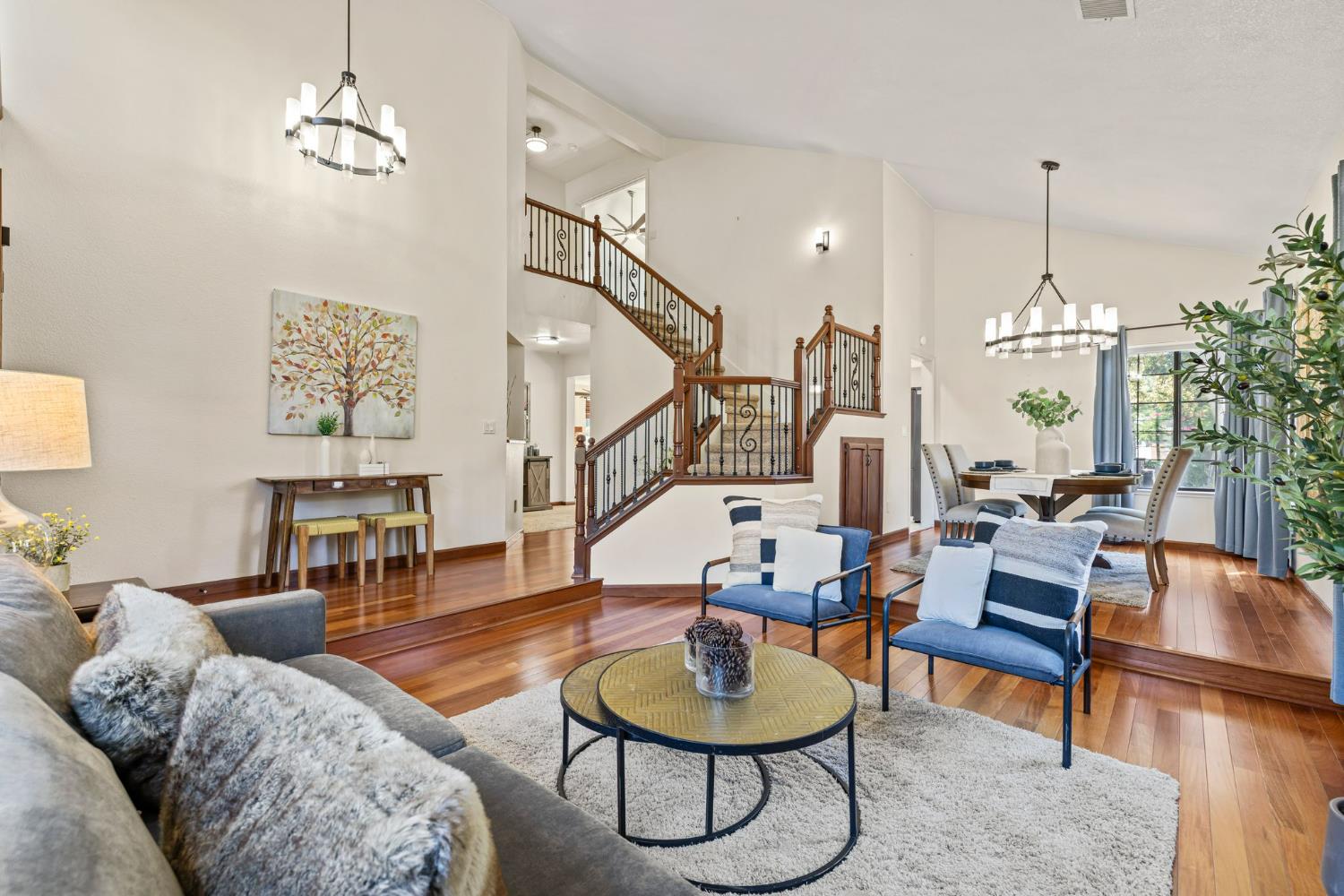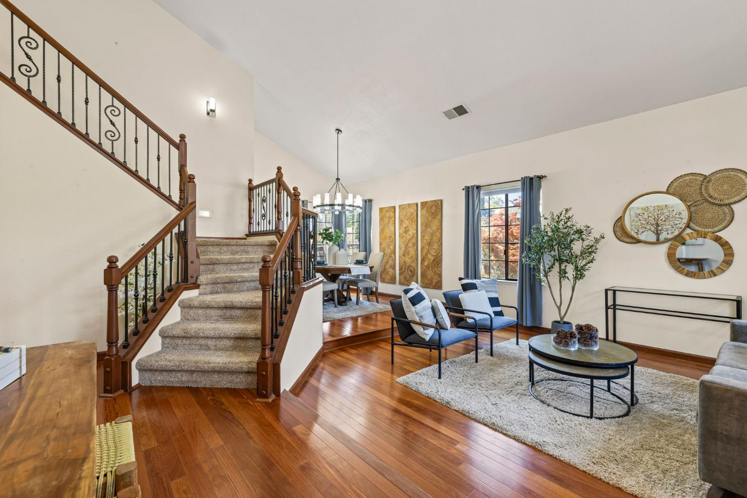 Welcome to your dream oasis in the heart of Bar J Ranch! This stunning home perfectly balances convenience & tranquility. Imagine zipping over to the vibrant community center, the nearby library, or the top-notch Blue Ribbon schools in the Buckeye School District. Step inside to a grand entrance featuring a vaulted ceiling and dazzling hardwood floors, all bathed in natural light. The kitchen boasts chic Quartz countertops, a stylish tile backsplash, and sleek modern appliances. Entertain your guests in style as they cozy up by the wood-burning fireplace. The formal dining room is ready to host your most memorable meals. Guest bedroom & full bath on the main floor. Ascend the rod-iron staircase to discover the primary suite offering two spacious walk-in closets, a luxurious soaking tub, and a refreshing step-in shower. This home is packed with fantastic features, including SOLAR panels, RV/boat parking for your adventurous side, a whole-house fan to keep things breezy, and a 3-car garage with built-in storage. The backyard is an entertainer's delight featuring a sparkling pool and a private basketball court for epic games. Fire up the outdoor kitchen BBQ and enjoy and enjoy unforgettable family gatherings, all without the hassle of Mello-Roos or HOA fees. Welcome to Bar J Ranch