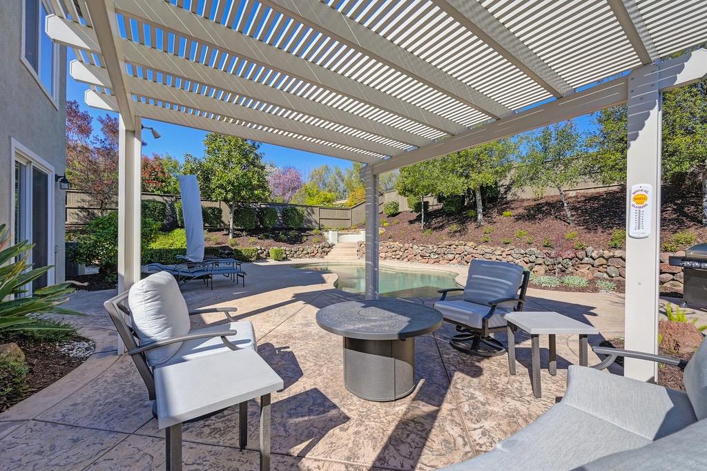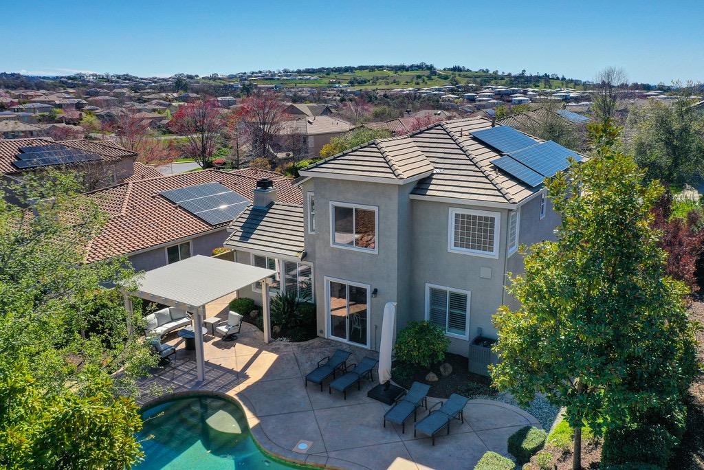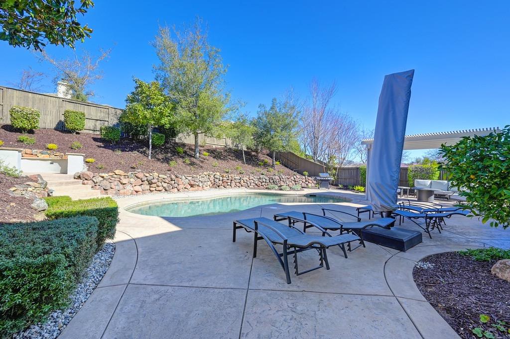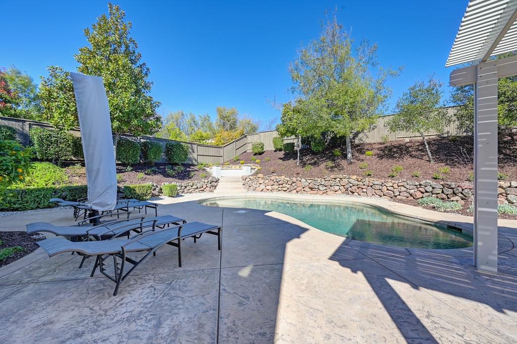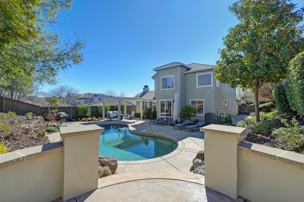 Experience affordable luxury living within the prestigious gated community of Serrano. This expansive 2,799 square foot residence offers 4 bedrooms and 3 full bathrooms, including a convenient downstairs bedroom and full bathroom. The living and dining rooms, family room, and spacious gourmet kitchen provide ample space for comfortable living on the main floor. Upstairs, a flexible sitting room, 2 bedrooms with a Jack & Jill bathroom, and a stunning master suite with a large walk-in closet, double vanity, and a separate tub/shower area await. The well-appointed newly landscaped backyard featuring a pool and multiple lounging areas is perfect for summer relaxation and gardening. Notable highlights include owned solar installed in 2021, new landscaping in 2023, and an HVAC system installed in 2022, among other updates. Residents will enjoy the convenience of El Dorado Hills Town Center, Highway 50, and a multitude of nearby amenities. This property offers an exceptional blend of luxury, comfort, and convenience, making it an ideal choice for discerning buyers seeking the ultimate in upscale living.