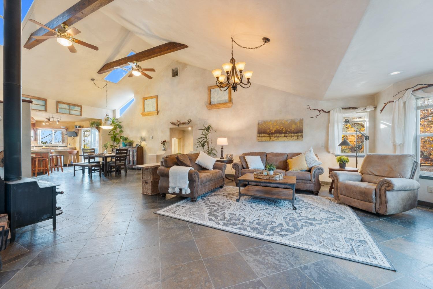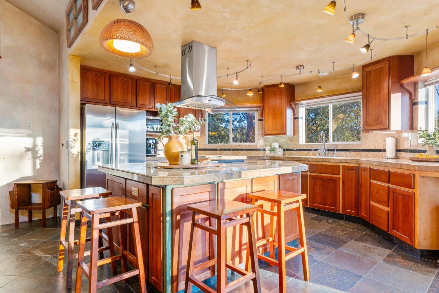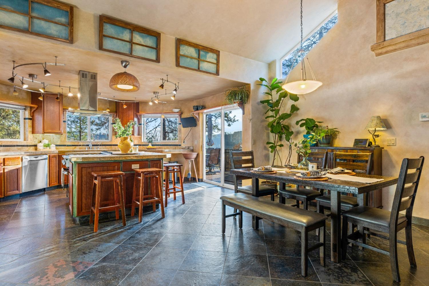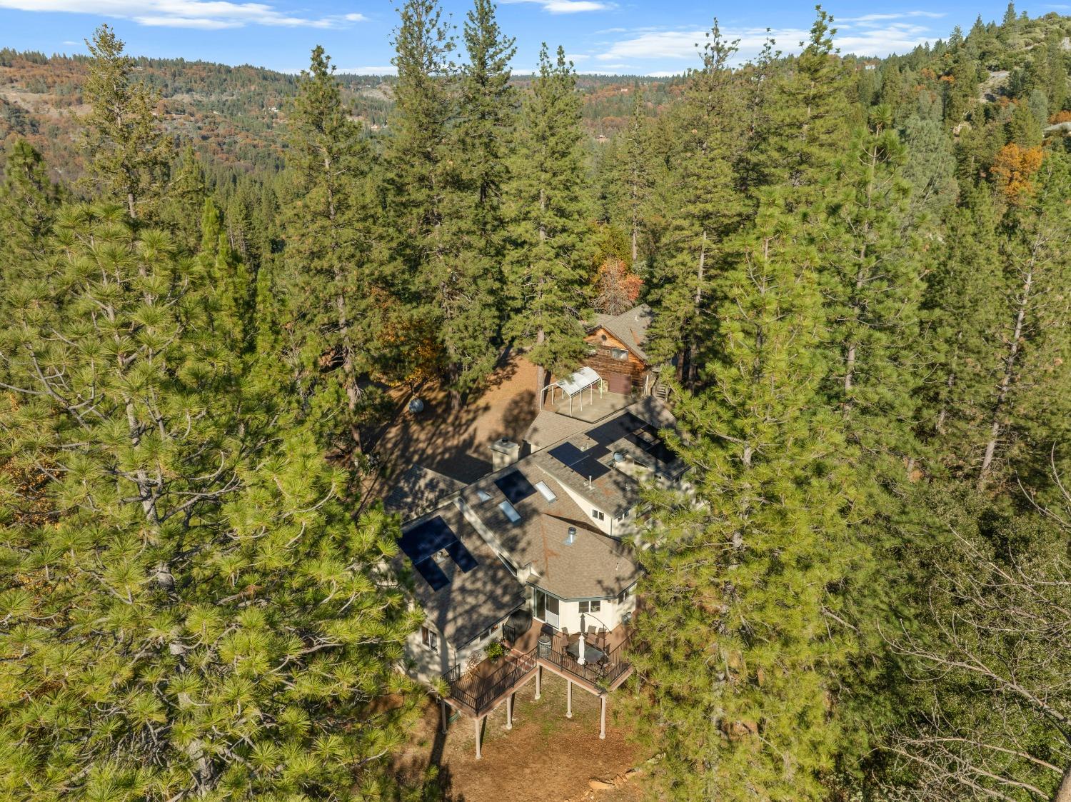 Nestled in the serene mountainous beauty of Camino near renowned Apple Hill, this stunning custom home offers a harmonious blend of rustic charm & modern comfort. Spacious great room concept with vaulted ceilings opens to a well-appointed kitchen with endless granite counter tops giving ample space for the culinary enthusiast. A private deck stretches across the rear of the home offering stunning mountain views. Spacious primary bedroom with retreat area and balcony's that were thoughtfully designed to capture the essence of mountain living. Impressively tiled primary bath with jacuzzi tub and walk-in shower. 2nd unit over garage may be converted to an ADU and currently offers retreat options for guests or the possibility for a home-based business. The custom designed shop behind the garage will excite any hobby enthusiast. Owned Solar! This home truly embraces the tranquility of mountain living at its finest.
