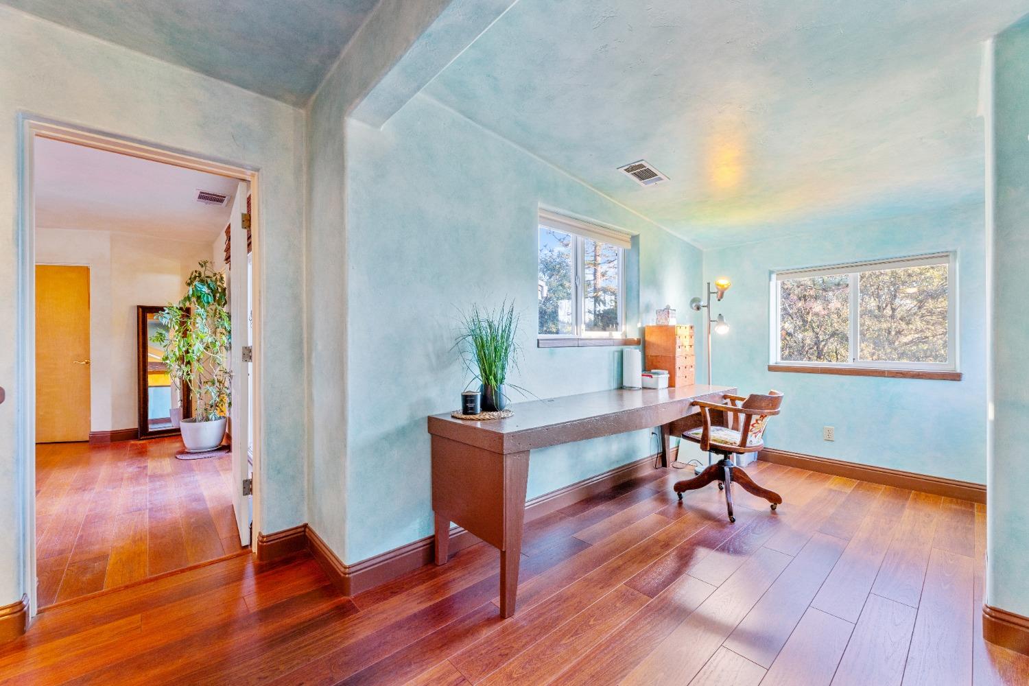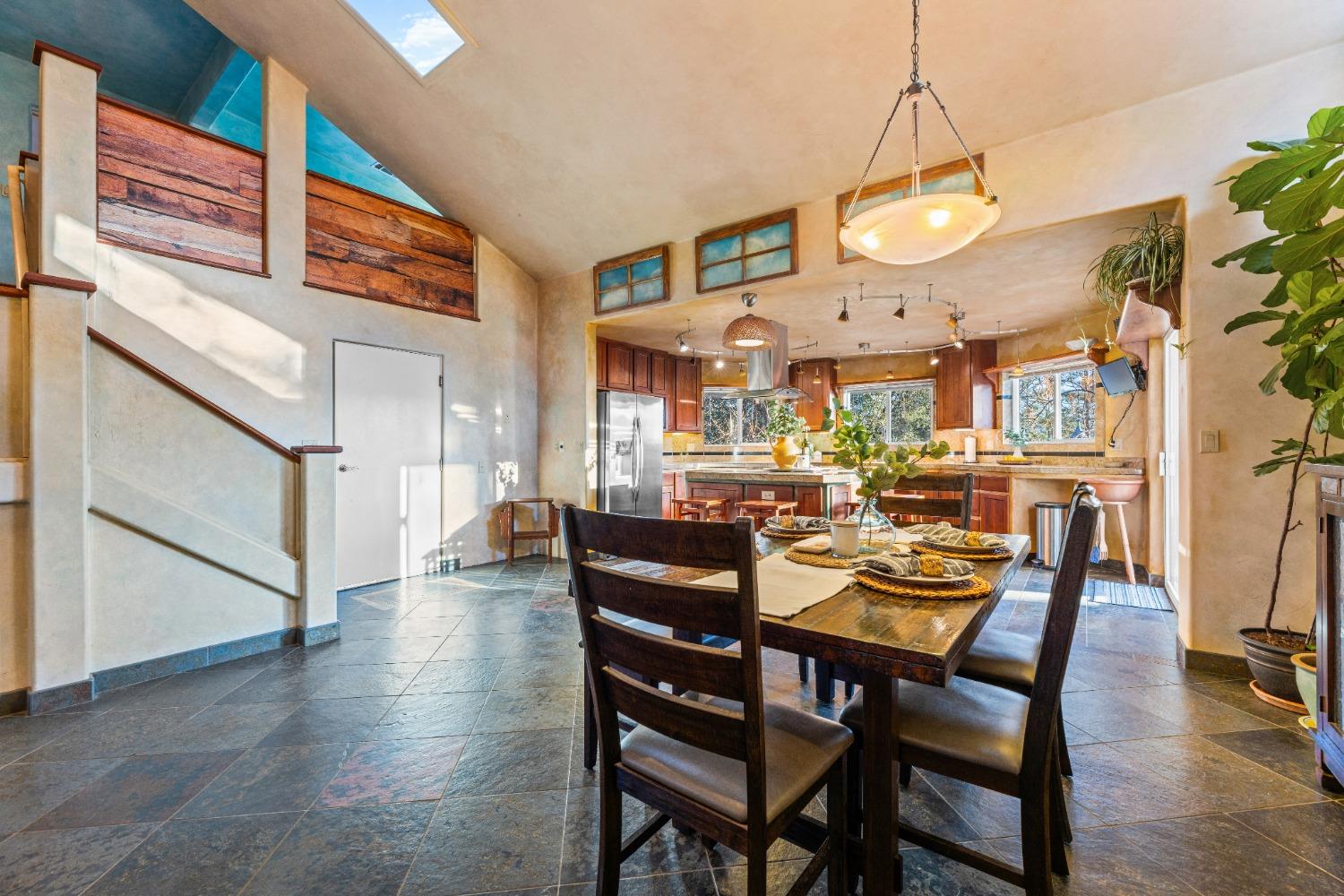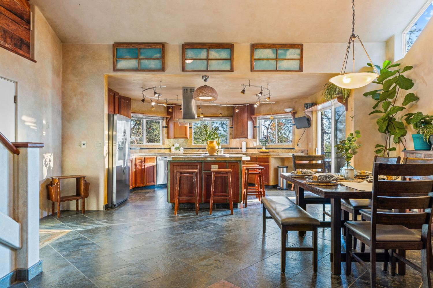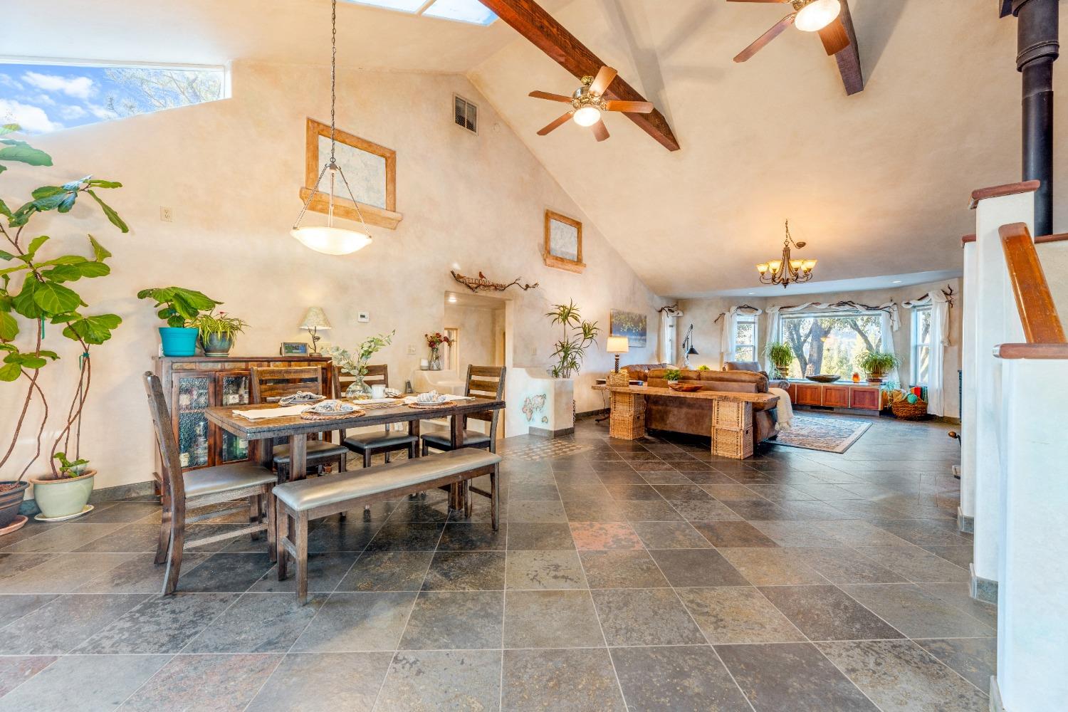 Nestled in the serene mountainous beauty of Camino near renowned Apple Hill, this stunning custom home offers a harmonious blend of rustic charm & modern comfort. Spacious great room concept with vaulted ceilings opens to a well-appointed kitchen with endless granite counter tops giving ample space for the culinary enthusiast. A private deck stretches across the rear of the home offering stunning mountain views. Spacious primary bedroom with retreat area and balcony's that were thoughtfully designed to capture the essence of mountain living. Impressively tiled primary bath with jacuzzi tub and walk-in shower. 2nd unit over garage may be converted to an ADU and currently offers retreat options for guests or the possibility for a home-based business. The custom designed shop behind the garage will excite any hobby enthusiast. Owned Solar! This home truly embraces the tranquility of mountain living at its finest.