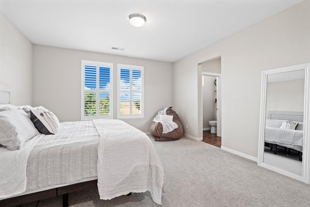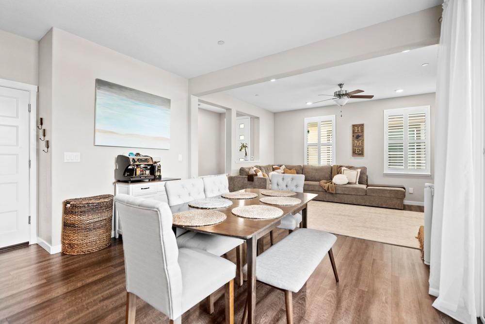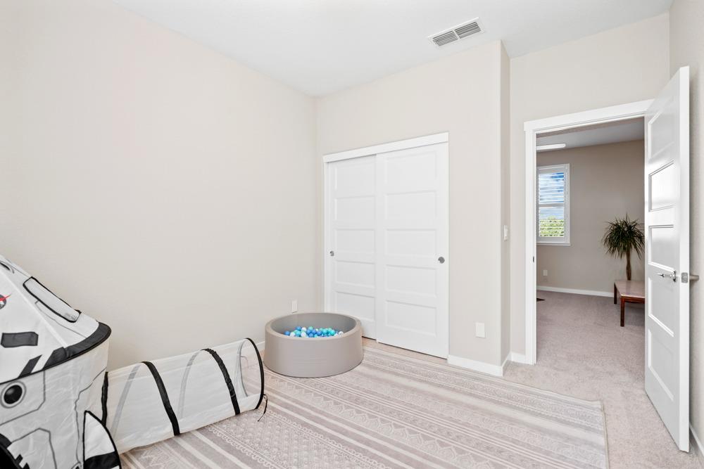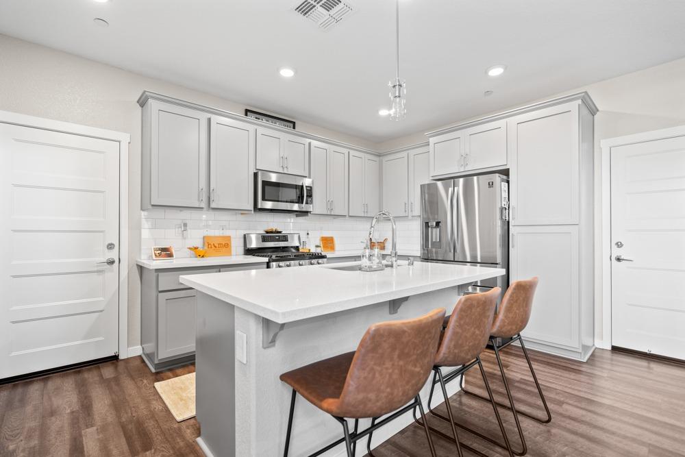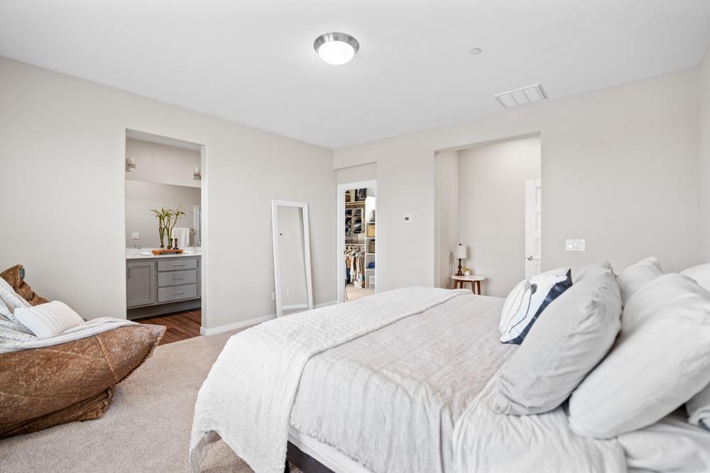 Gorgeous two story home in gated Monterrey Village! This like-new showstopper features 4 bedrooms 3 bathrooms plus a large upper level loft with beautiful sunset views. The desirable floorplan and modern finishes make the home feel open and inviting. Laundry room is located on the upper level for your convenience and you'll love the oversized walk-in closet in the primary bedroom. Two attached one car garages with an EV charging station included. Low maintenance side patio off the dining room/kitchen area. Prime location close to the community park and pool. Located in the Elk Grove Unified school district.