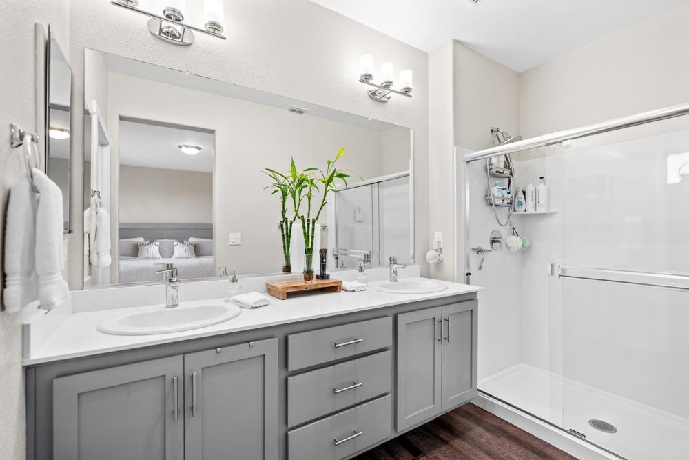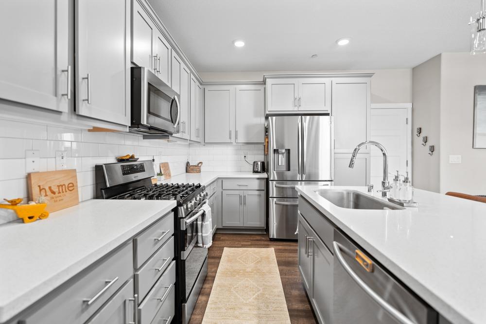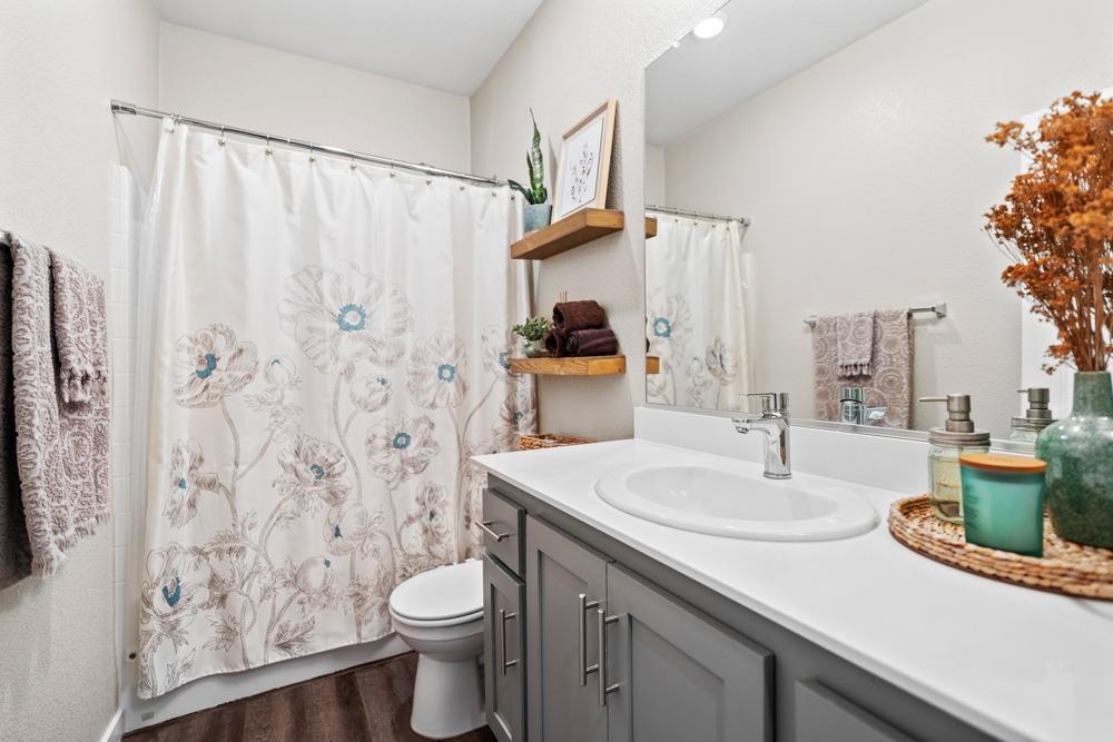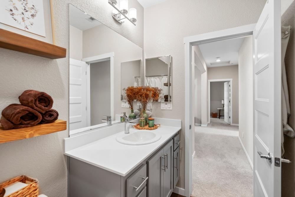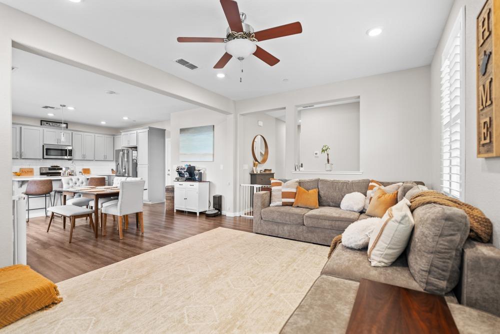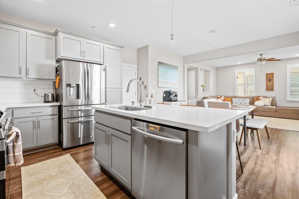 Gorgeous two story home in gated Monterrey Village! This like-new showstopper features 4 bedrooms 3 bathrooms plus a large upper level loft with beautiful sunset views. The desirable floorplan and modern finishes make the home feel open and inviting. Laundry room is located on the upper level for your convenience and you'll love the oversized walk-in closet in the primary bedroom. Two attached one car garages with an EV charging station included. Low maintenance side patio off the dining room/kitchen area. Prime location close to the community park and pool. Located in the Elk Grove Unified school district.