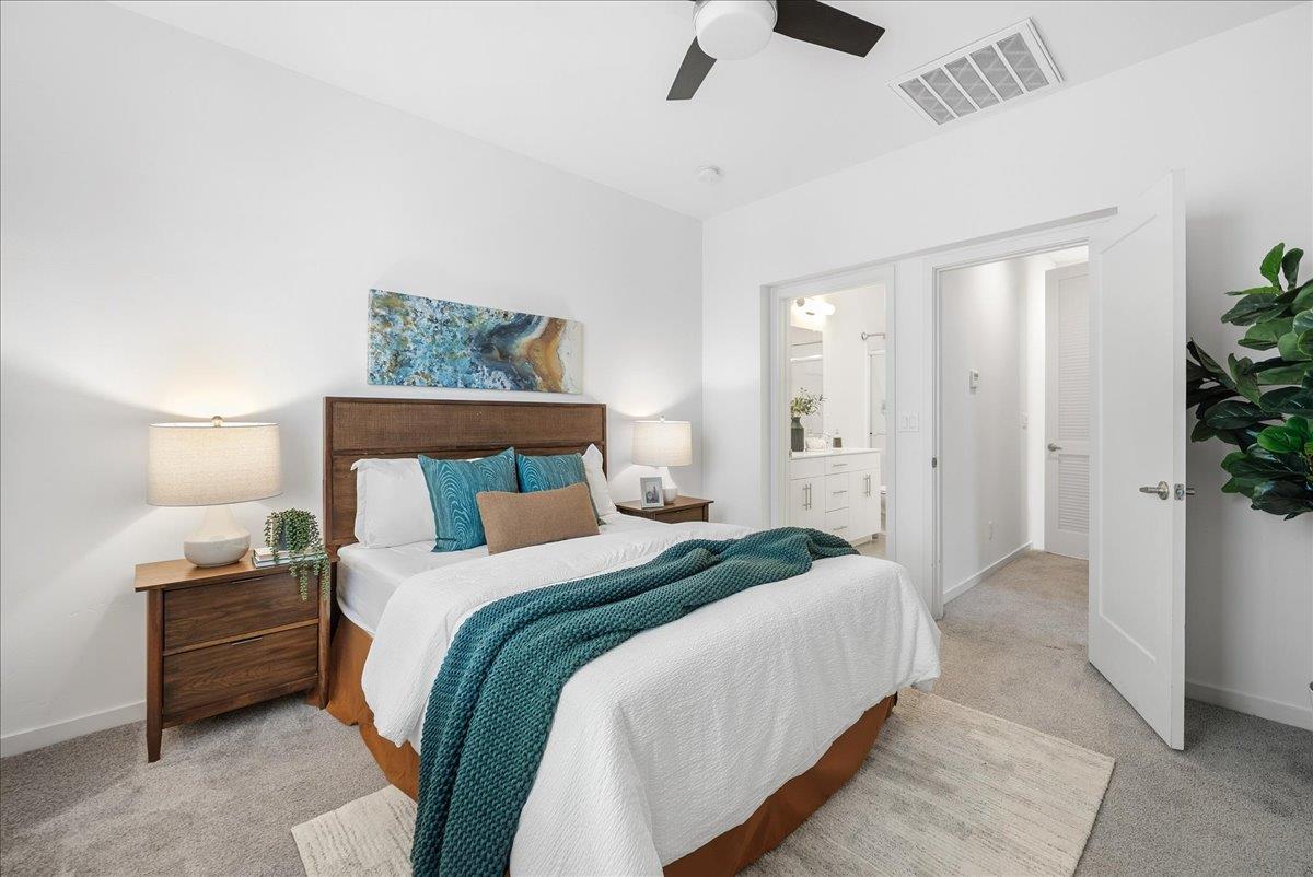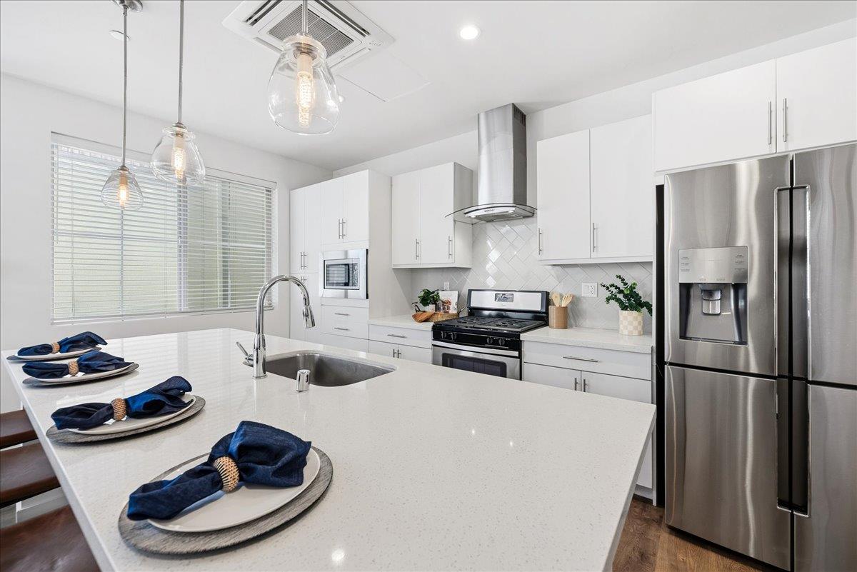 Enjoy a modern, low-maintenance, lock-and-go lifestyle in this light filled end unit townhome in The Mill at Broadway. The open concept main level blends the living area to a well-appointed kitchen featuring a large island with sink and eat-in bar, stainless steel appliances, quartz counters, generous cabinetry space, and a built-in nook ideal for your morning coffee ritual or your stage for kicking off happy hour. A convenient half bath and an oversized attached one-car garage complete the main floor. Upstairs, two spacious bedroom suites each offer private ensuite bathrooms and walk-in closets. The primary suite includes dual sinks and a roomy stall shower. A stackable laundry area is thoughtfully located on the upper level for added convenience. Energy conscious features include a tankless water heater and high-efficiency Fujitsu heating and cooling units for precise climate control in every room. The Mill at Broadway is vibrant and alive, with a vibe that has to be experienced. The community is designed for connection and outdoor enjoyment, with a neighborhood park featuring a grassy hill, a dedicated fenced dog park, and inviting gathering spaces. Located close to downtown Sacramento, you'll appreciate easy access to DOCO, Golden 1 Center, the West Sacramento Riverfront and Ballpark, Land Park, Selland's Market, and your new favorite coffee shops and restaurants. Come make this your new home!