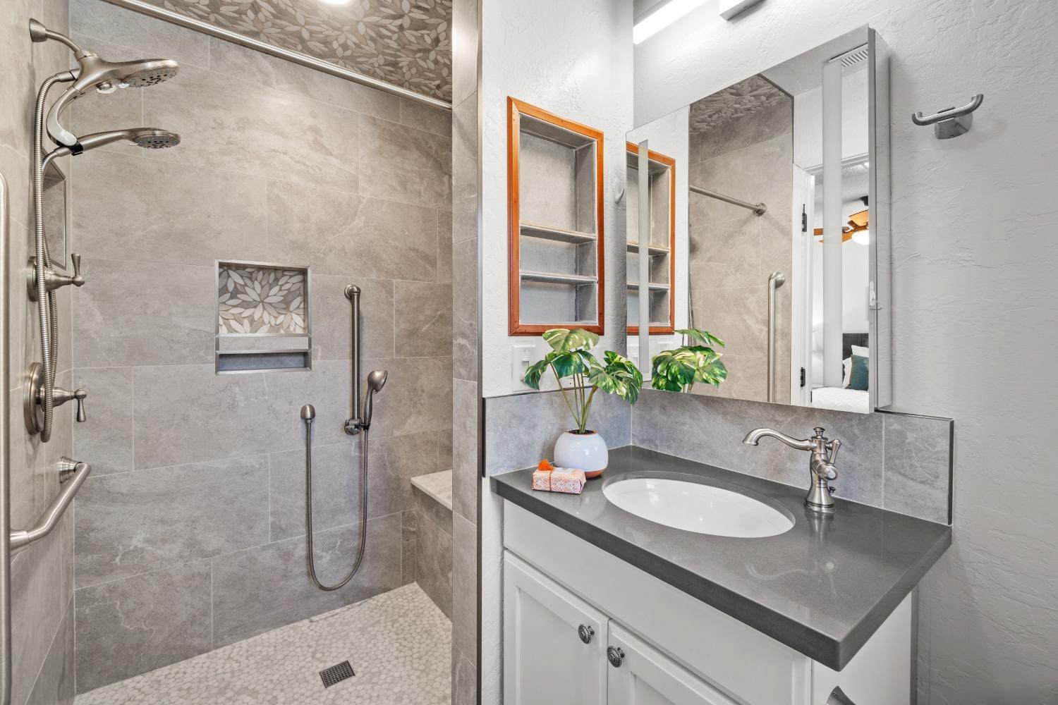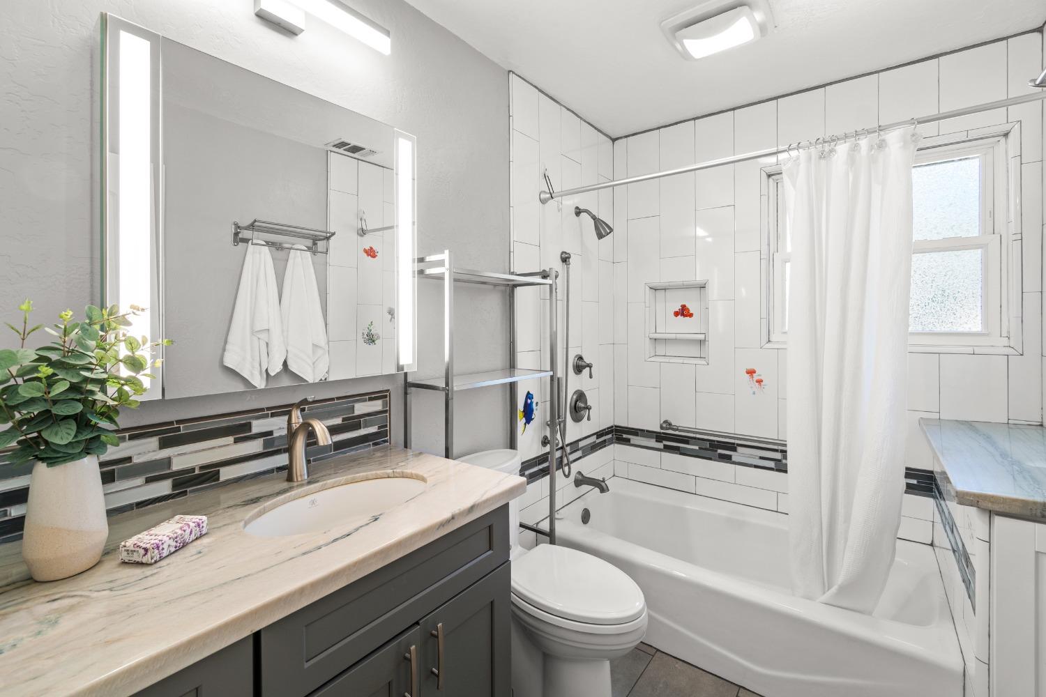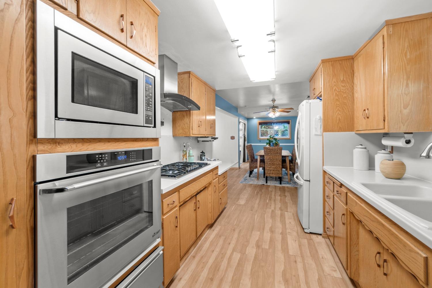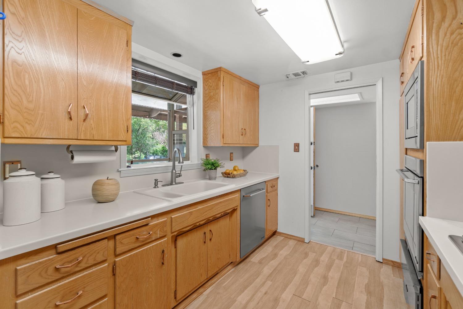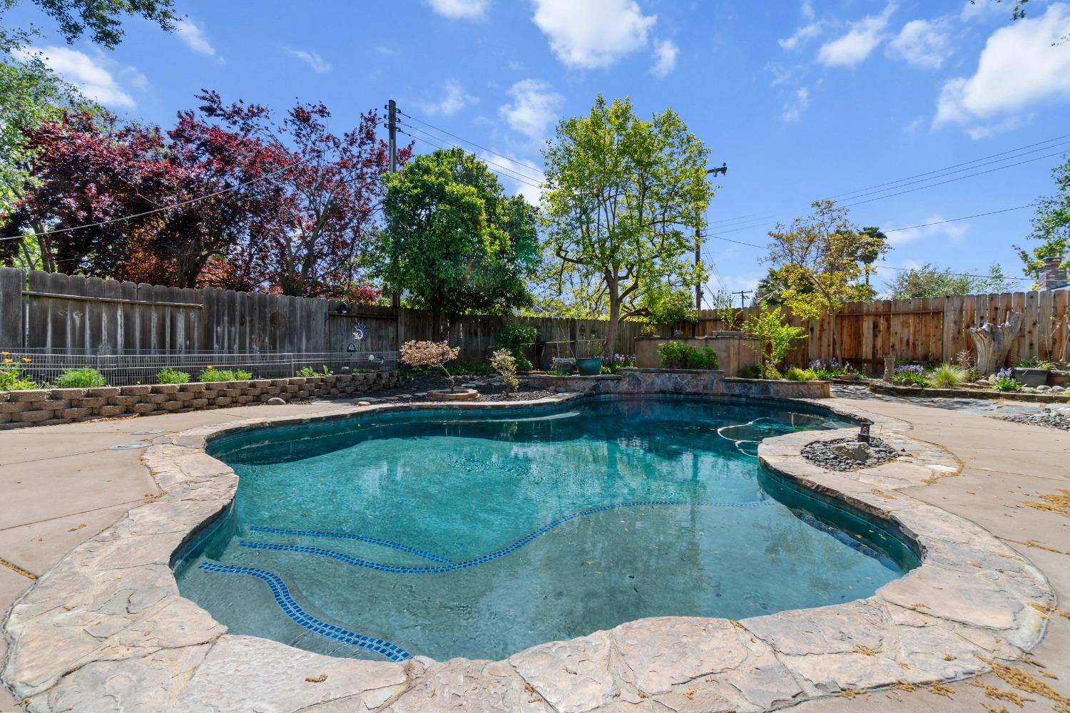 Nestled in a quiet Carmichael neighborhood, this charming ranch style home is the perfect place to call home and kick off your summer. A glistening pool awaits canon balls and floaties with umbrella drinks, while the oversized side yard provides enough space to store all your recreational toys. The private and low maintenance quarter acre lot allows you to lock up and hit the road without worrying about the yard. As you enter the home, the spacious living room and inviting sunroom will draw you in, making you want to kick off your shoes and stay a while. The kitchen is a cooking enthusiast's delight, featuring high-end stainless steel appliances. The primary suite provides a calming view through a beautiful wood-framed window, and offers a custom remodeled ensuite bath. The fully remodeled hall bath is perfect for guests or little ones with a shower over tub. Interior laundry area leads to a third full bath and the attached 2-car garage. Other notable features include newer pool equipment, central A/C, laminate floors, indoor office/flex space off the dining area, sleek electric fireplace insert, fruit trees and more! Perfectly situated near parks, shopping and downtown attractions, this home is an unbeatable combination of tranquility and accessibility. Come make this one yours!