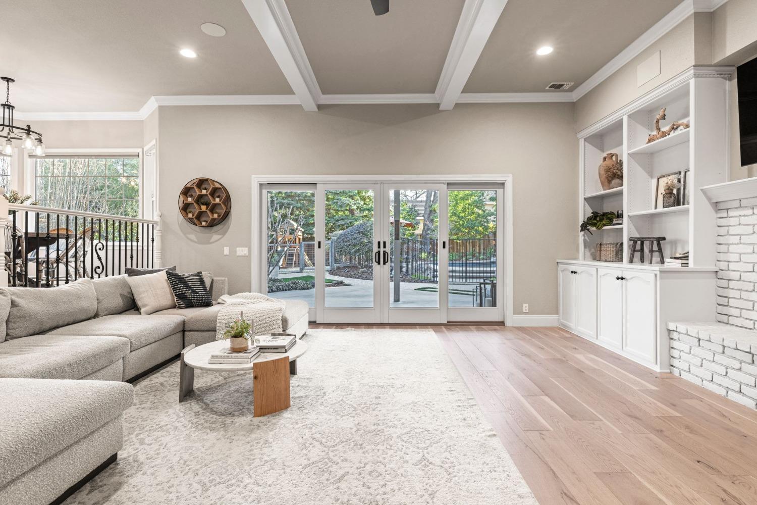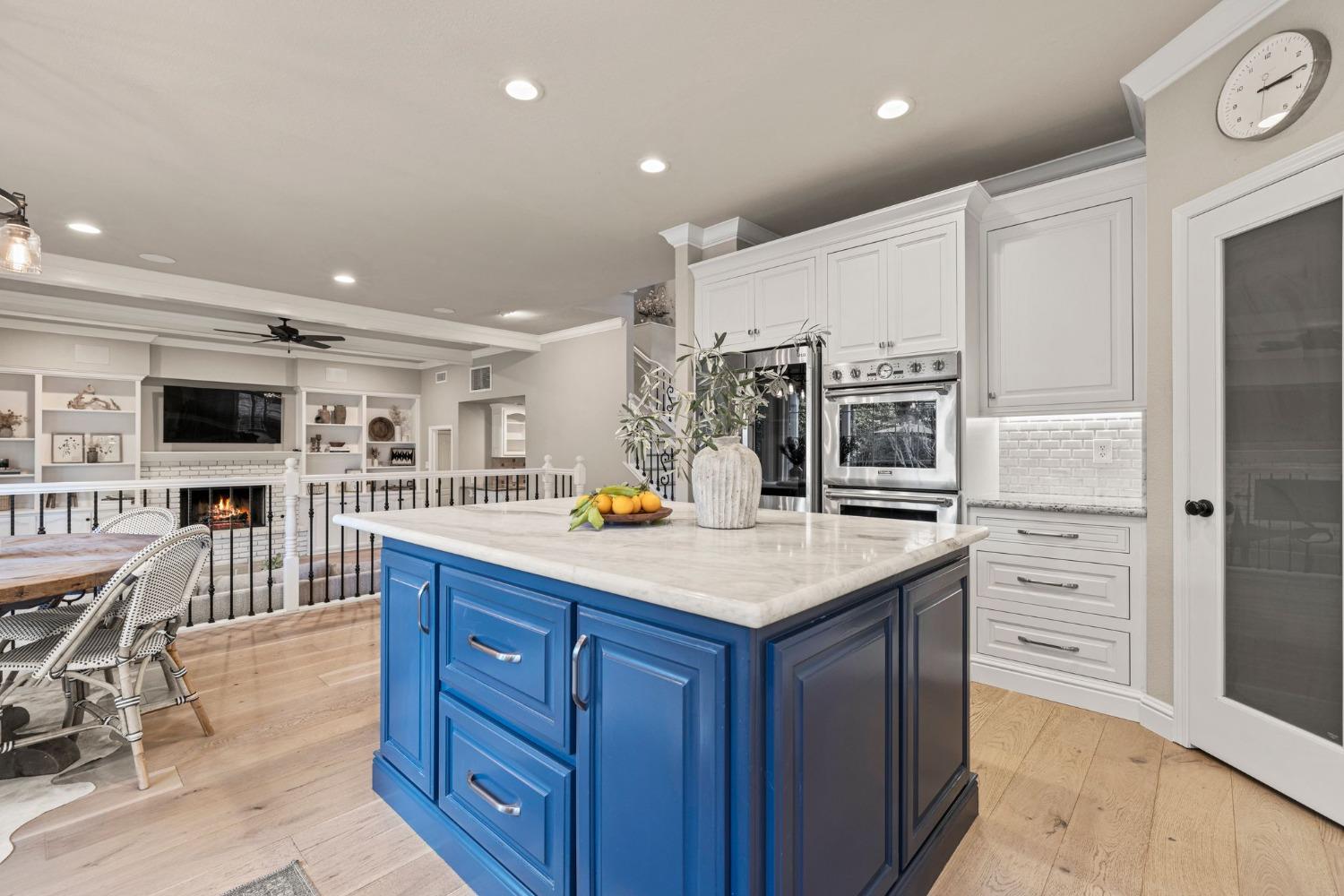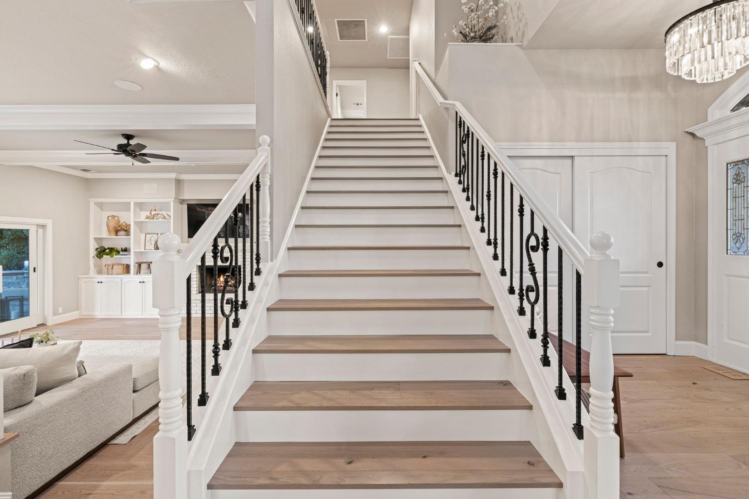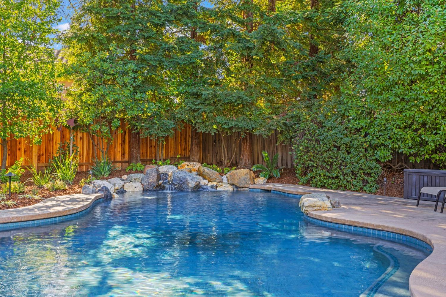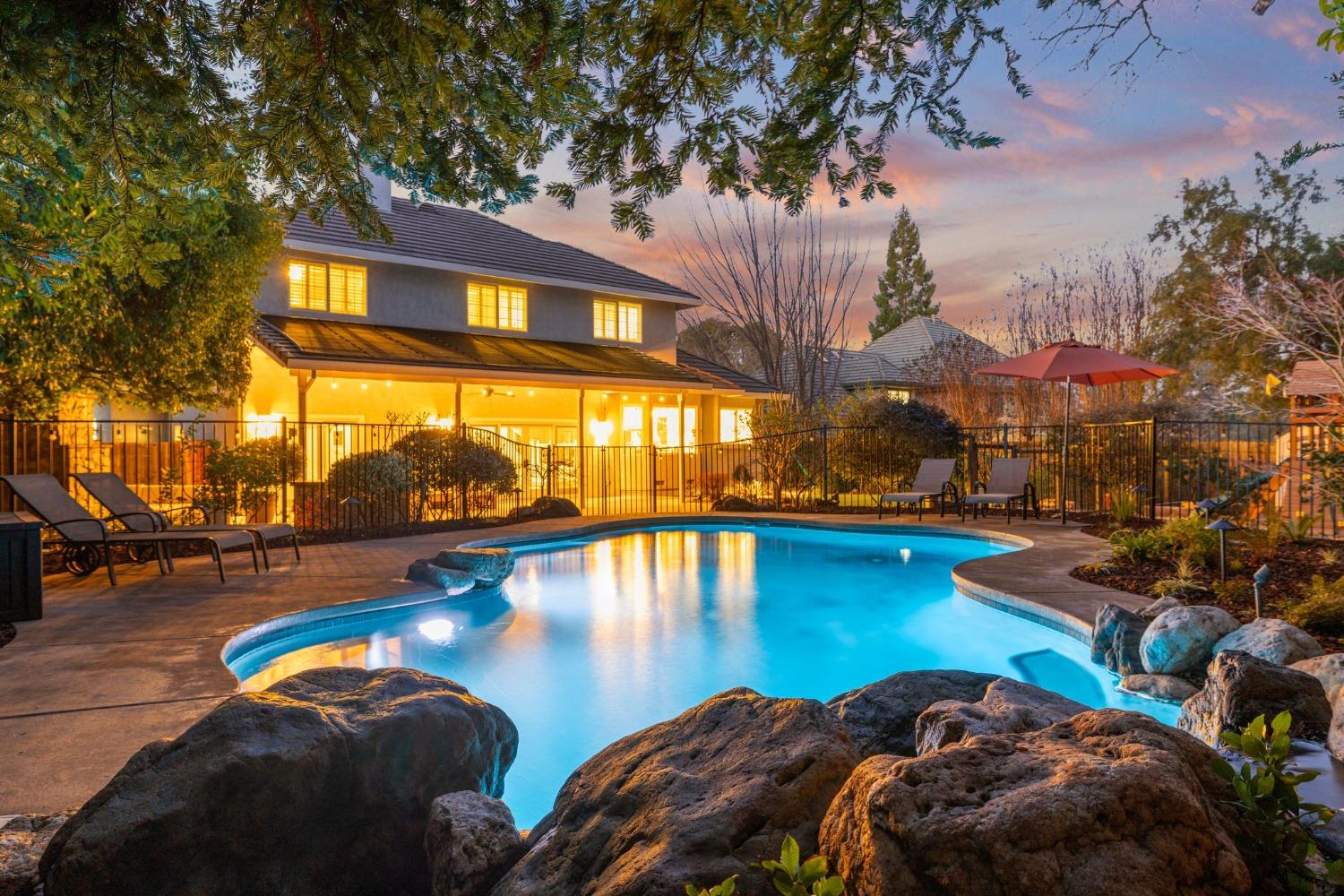 Welcome to Highgrove Court, a sought-after cul-de-sac in the heart of Granite Bay. This updated custom home is an entertainer's dream with 5 BD, 3 BA, and an epic backyard! The main level features formal living and dining rooms, a chef's kitchen, and a spacious family room with a wet bar. The kitchen is outfitted with Thermador double ovens, a Wolf range, Miele dishwasher, walk-in pantry, & a marble island with additional storage and refrigerated beverage drawers. A private, ground-level bedroom and bathroom, with exterior access, makes for an ideal guest suite or home office. Upstairs, there are four bedrooms and two bathrooms. The primary suite boasts two closets, and an en-suite bathroom with a double washstand and makeup vanity, jacuzzi tub, and separate shower. The backyard is always bbq and pool party ready with its covered patio with built-in speakers, fenced pool with waterfall & solar heating, built-in BBQ, stone fireplace, & a play area with a playground set. The side yard can accommodate a boat or RV. The house is complete with a 3-car garage with epoxy floors, whole-house fan, multiple-zone HVAC, & premium engineered hardwood floors. Located near top-rated schools, parks, & GB Golf Club, this home blends elegance and convenience in an unbeatable setting.