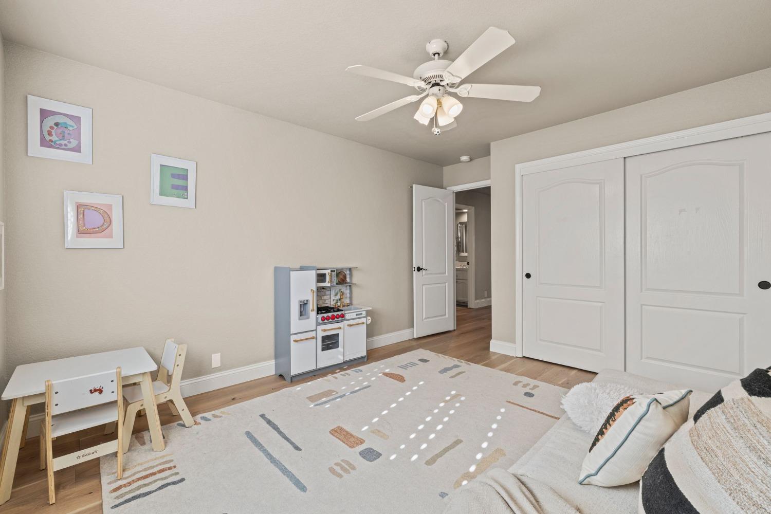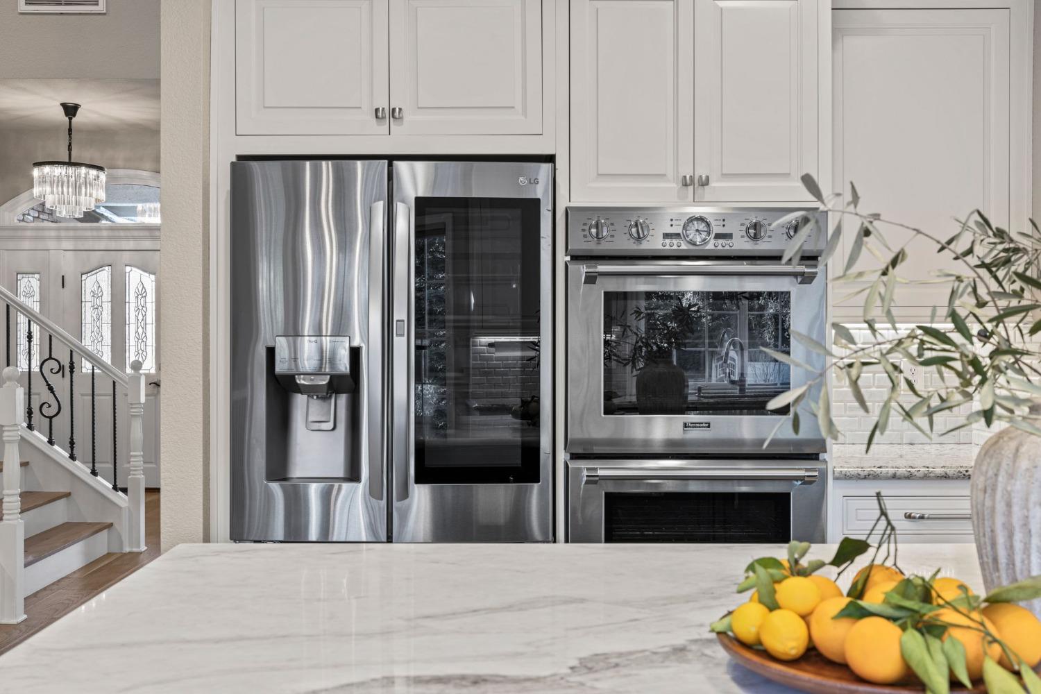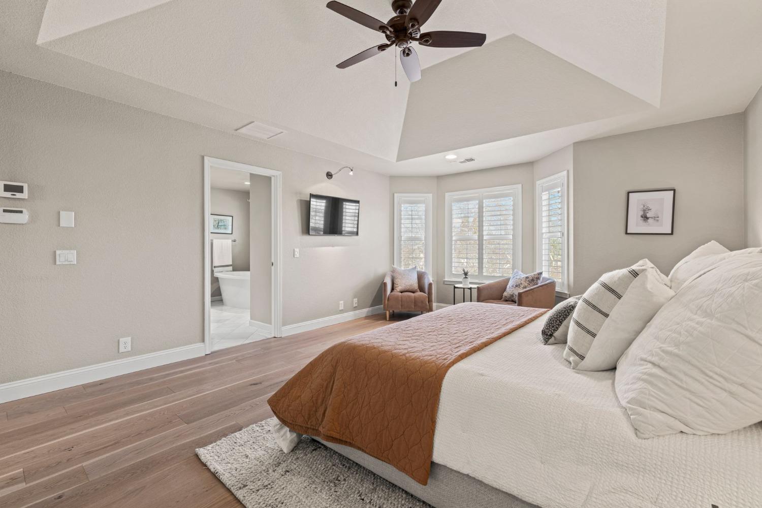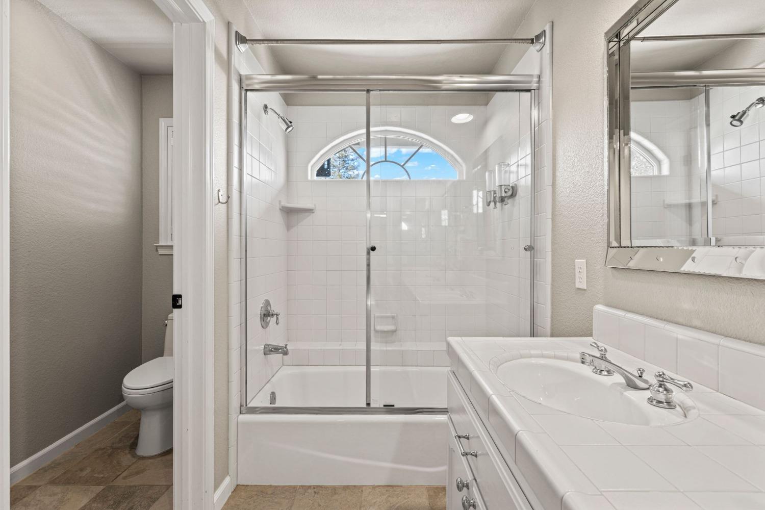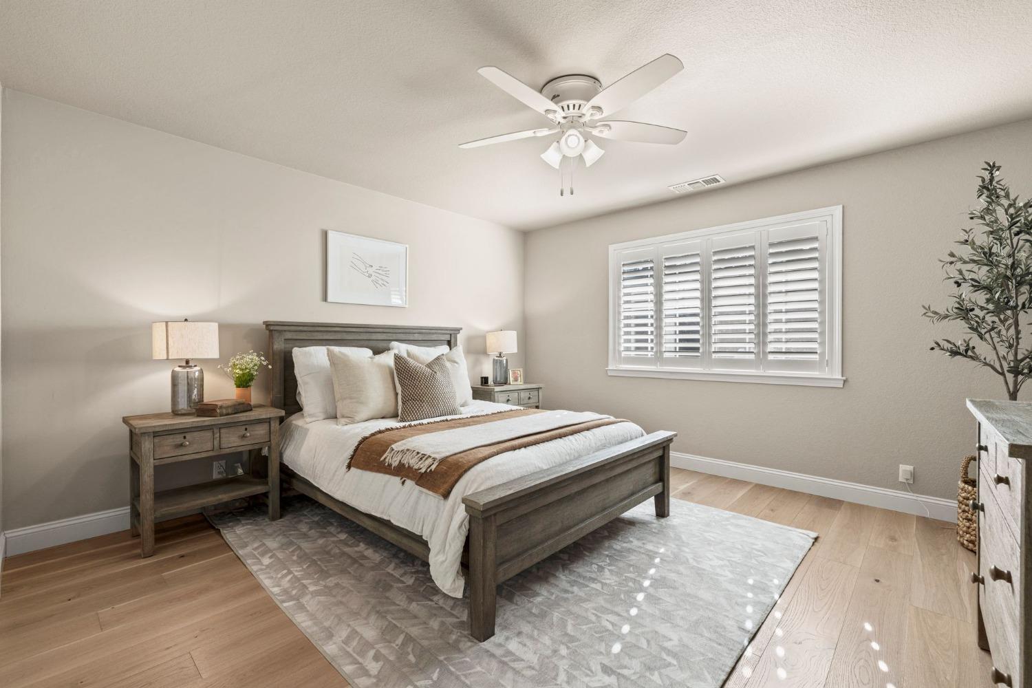 Welcome to Highgrove Court, a sought-after cul-de-sac in the heart of Granite Bay. This updated custom home is an entertainer's dream with 5 BD, 3 BA, and an epic backyard! The main level features formal living and dining rooms, a chef's kitchen, and a spacious family room with a wet bar. The kitchen is outfitted with Thermador double ovens, a Wolf range, Miele dishwasher, walk-in pantry, & a marble island with additional storage and refrigerated beverage drawers. A private, ground-level bedroom and bathroom, with exterior access, makes for an ideal guest suite or home office. Upstairs, there are four bedrooms and two bathrooms. The primary suite boasts two closets, and an en-suite bathroom with a double washstand and makeup vanity, jacuzzi tub, and separate shower. The backyard is always bbq and pool party ready with its covered patio with built-in speakers, fenced pool with waterfall & solar heating, built-in BBQ, stone fireplace, & a play area with a playground set. The side yard can accommodate a boat or RV. The house is complete with a 3-car garage with epoxy floors, whole-house fan, multiple-zone HVAC, & premium engineered hardwood floors. Located near top-rated schools, parks, & GB Golf Club, this home blends elegance and convenience in an unbeatable setting.