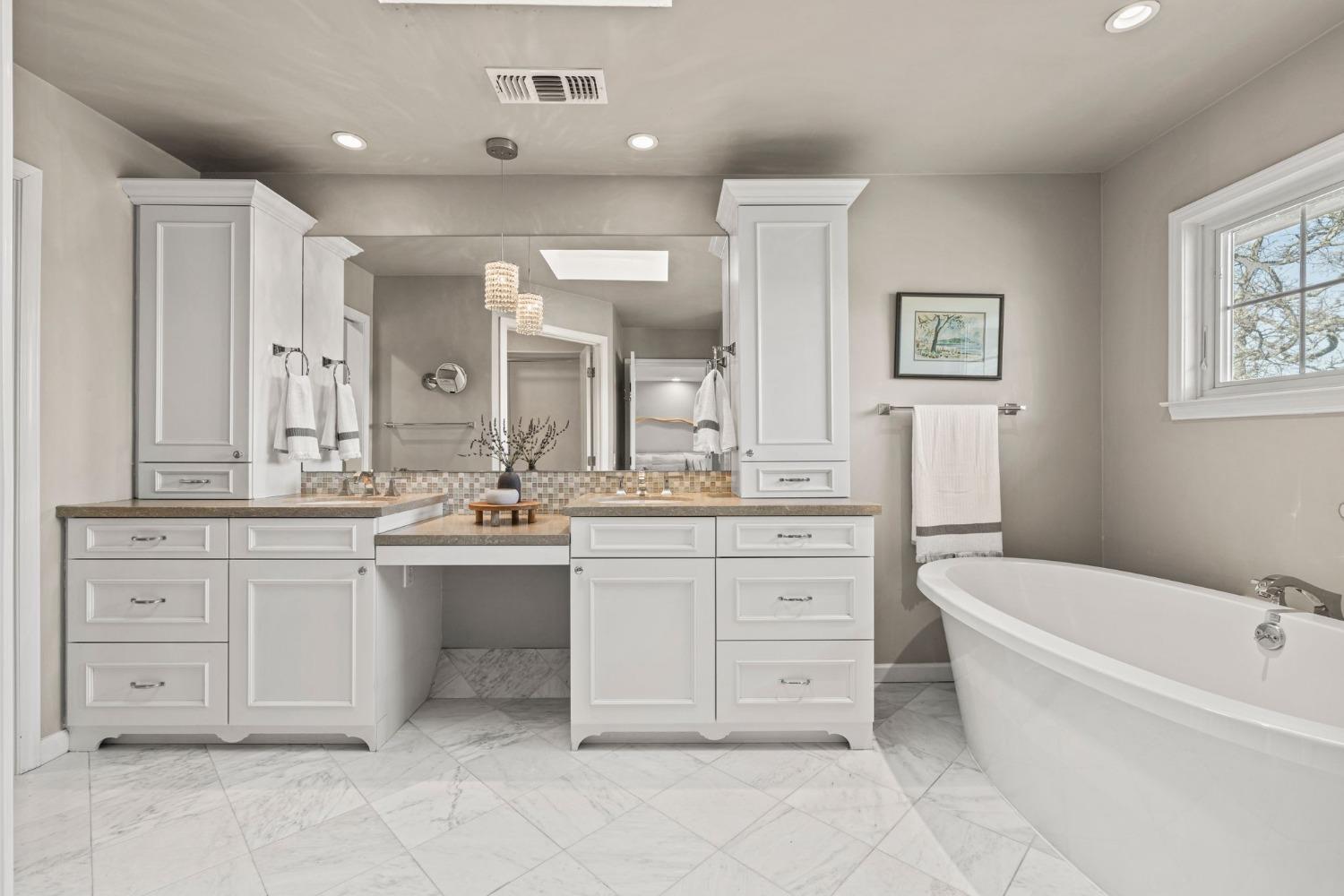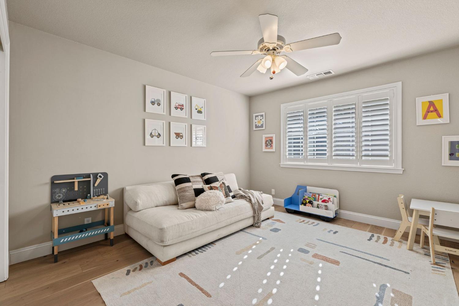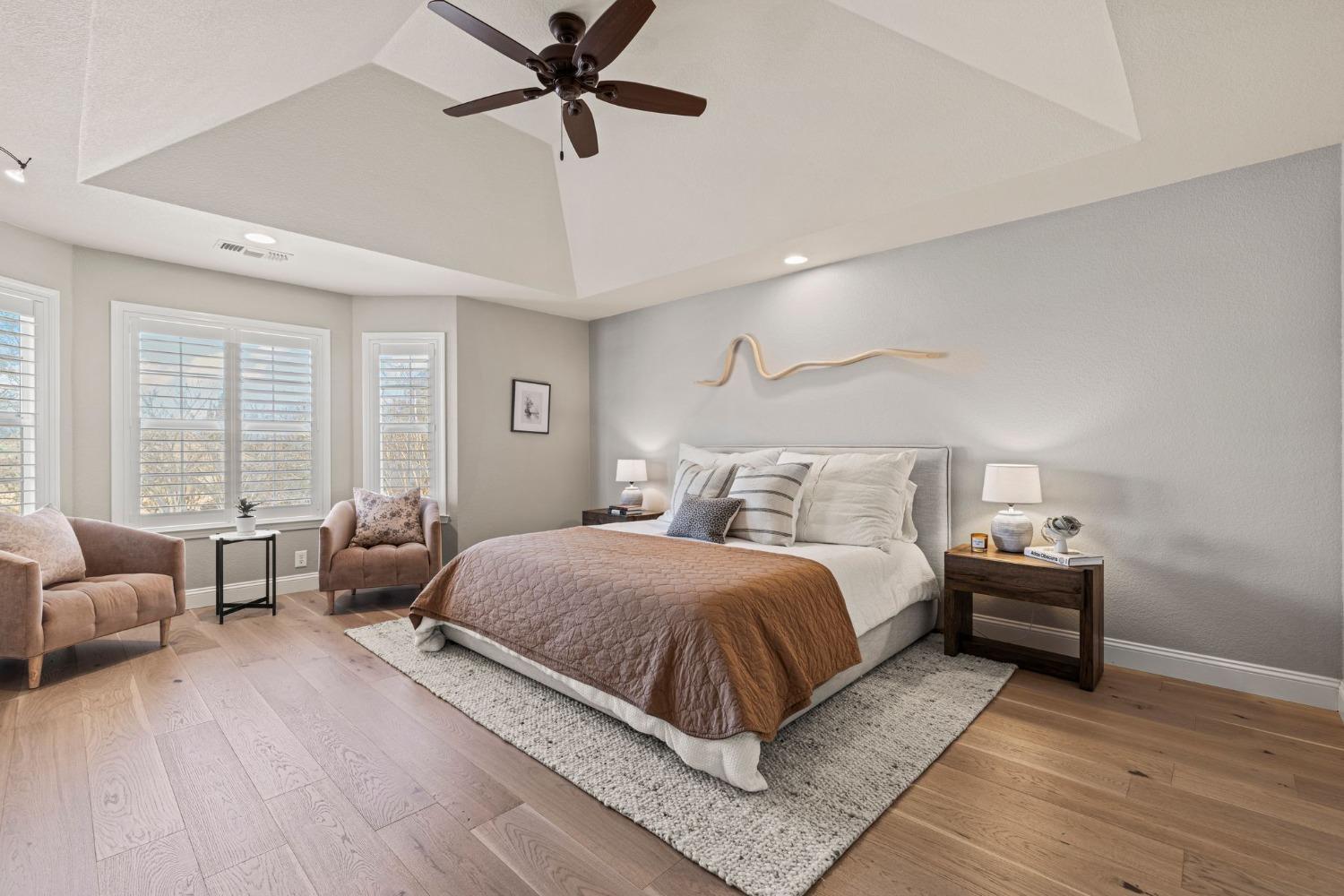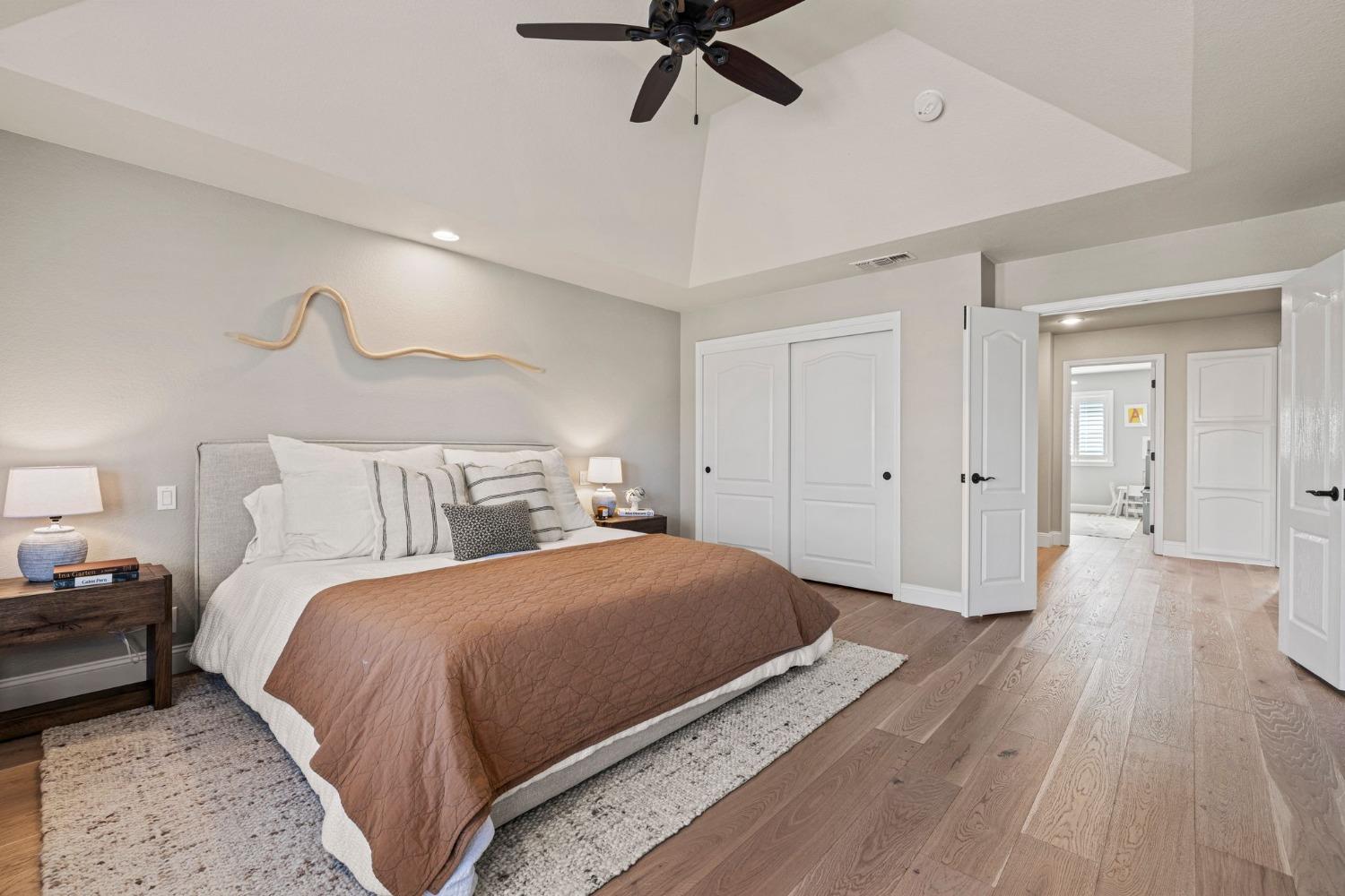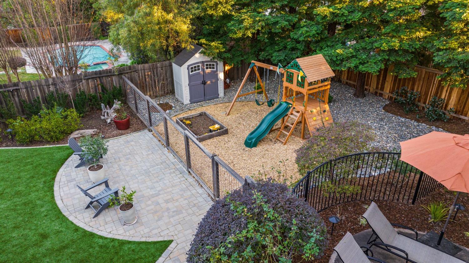 Welcome to Highgrove Court, a sought-after cul-de-sac in the heart of Granite Bay. This updated custom home is an entertainer's dream with 5 BD, 3 BA, and an epic backyard! The main level features formal living and dining rooms, a chef's kitchen, and a spacious family room with a wet bar. The kitchen is outfitted with Thermador double ovens, a Wolf range, Miele dishwasher, walk-in pantry, & a marble island with additional storage and refrigerated beverage drawers. A private, ground-level bedroom and bathroom, with exterior access, makes for an ideal guest suite or home office. Upstairs, there are four bedrooms and two bathrooms. The primary suite boasts two closets, and an en-suite bathroom with a double washstand and makeup vanity, jacuzzi tub, and separate shower. The backyard is always bbq and pool party ready with its covered patio with built-in speakers, fenced pool with waterfall & solar heating, built-in BBQ, stone fireplace, & a play area with a playground set. The side yard can accommodate a boat or RV. The house is complete with a 3-car garage with epoxy floors, whole-house fan, multiple-zone HVAC, & premium engineered hardwood floors. Located near top-rated schools, parks, & GB Golf Club, this home blends elegance and convenience in an unbeatable setting.