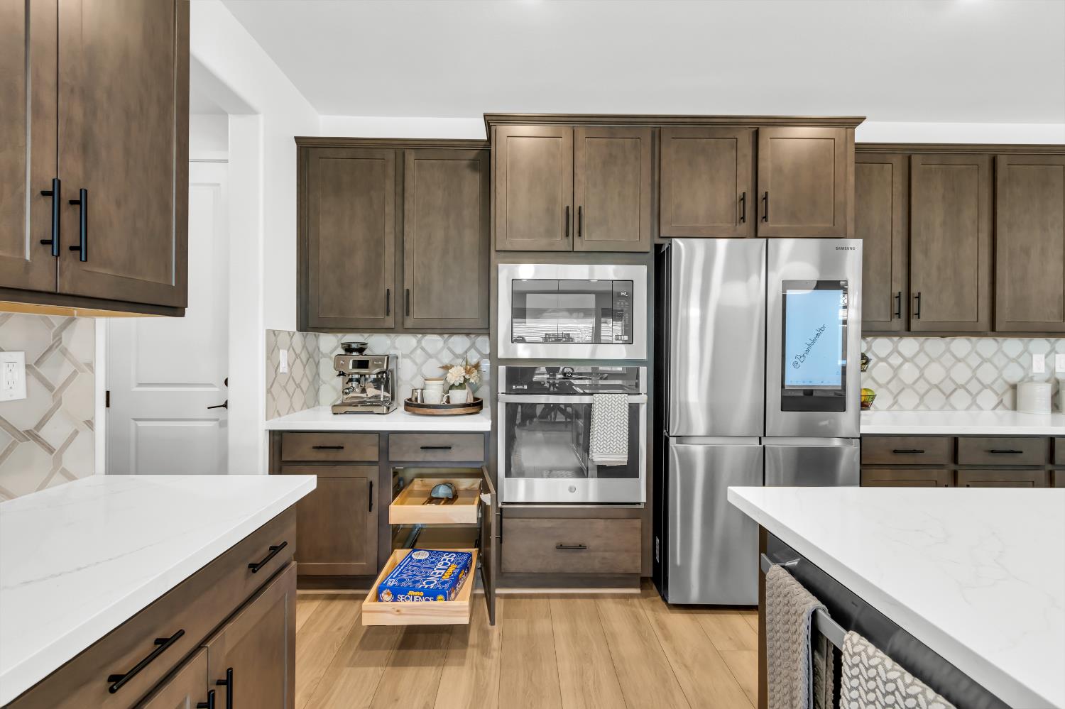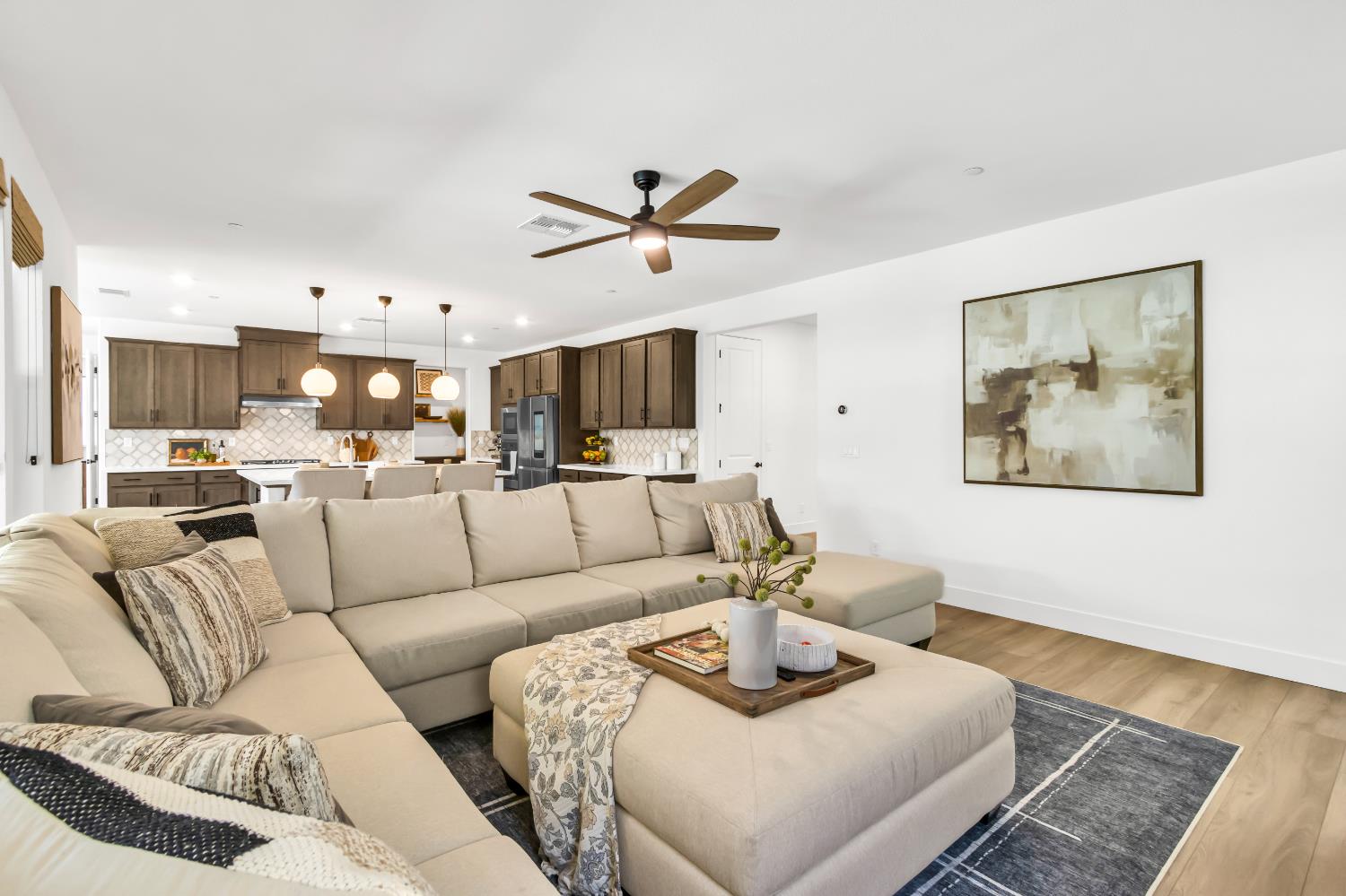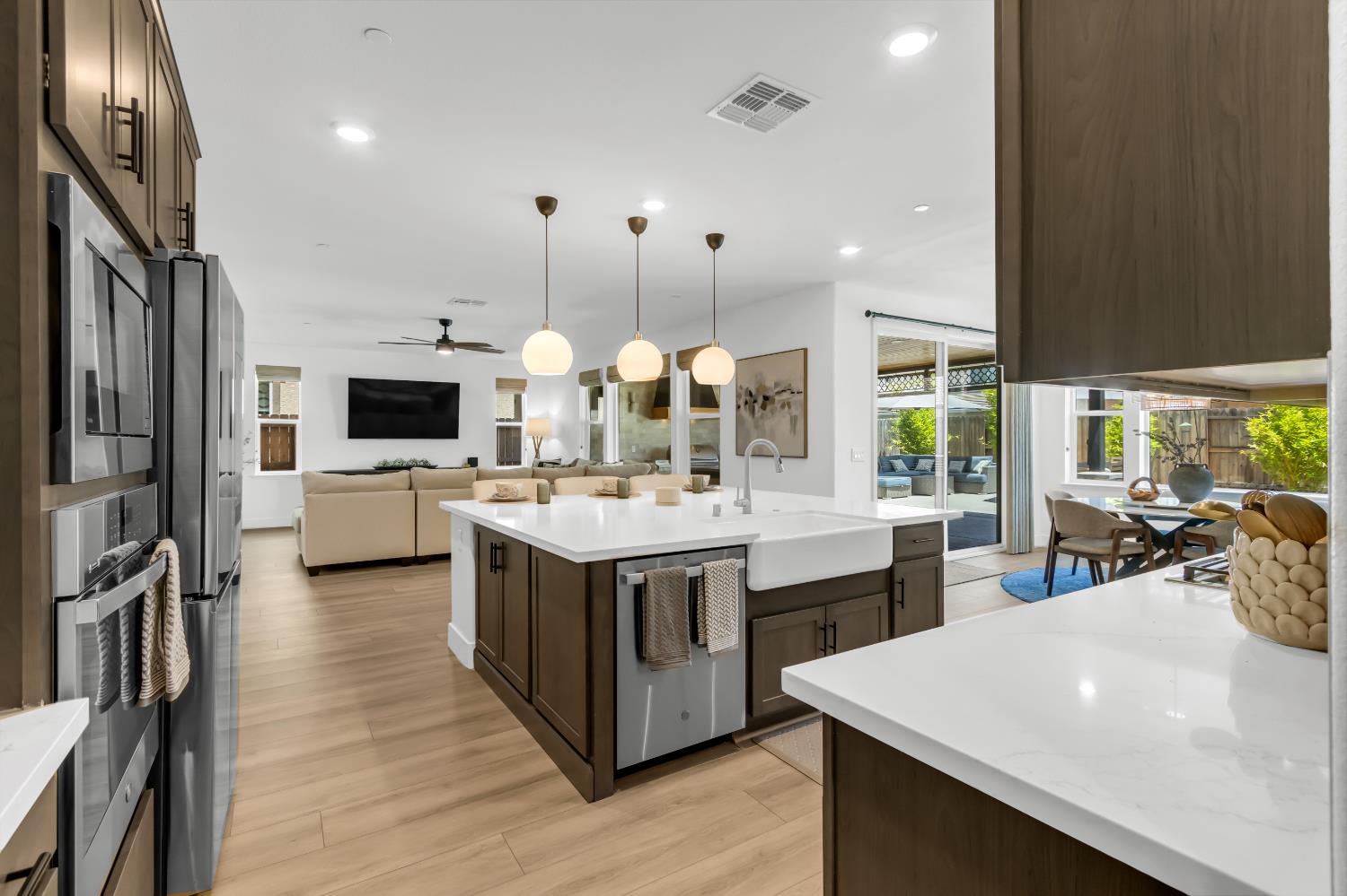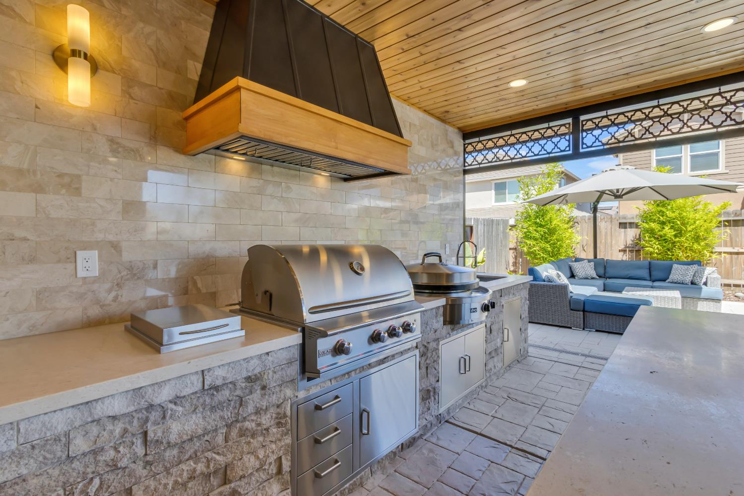 Step into elegance at 5048 Super Moon Wayan expansive 6-bedroom, 5.5-bathroom Taylor Morrison-built home offering over 4,300 sq ft of beautifully designed living space. The sought-after Sylvie floor plan features two en suite bedrooms on the main level, ideal for multi-generational living or guests. The heart of the home is a stunning open-concept kitchen and living room, perfect for entertaining and everyday comfort, enhanced by natural woven shades that add warmth and texture. Upstairs, you'll find a spacious loft, additional bedrooms, and bathroomsall easily accessed by two staircases for added convenience and flow. The massive primary bedroom has room to add built-ins or a seating area. The walk-in closet may be one of the biggest ones you will see in West Roseville! Outside, unwind or host in style with a full outdoor kitchen with an island, low-maintenance turf, and a tranquil fountain feature. The outdoor kitchen includes a 6-burner Blaze professional grill, an EVO flattop griddle, a sink, a single-burner cooktop, an outdoor mini fridge and plenty of storage. This nearly new, two-story stunner is located in one of Roseville's most desirable neighborhoods AND zoned for Roseville Unified school districts. Walking distance to Westbrook Elementary.
