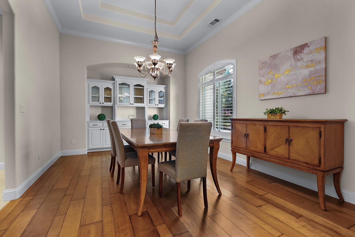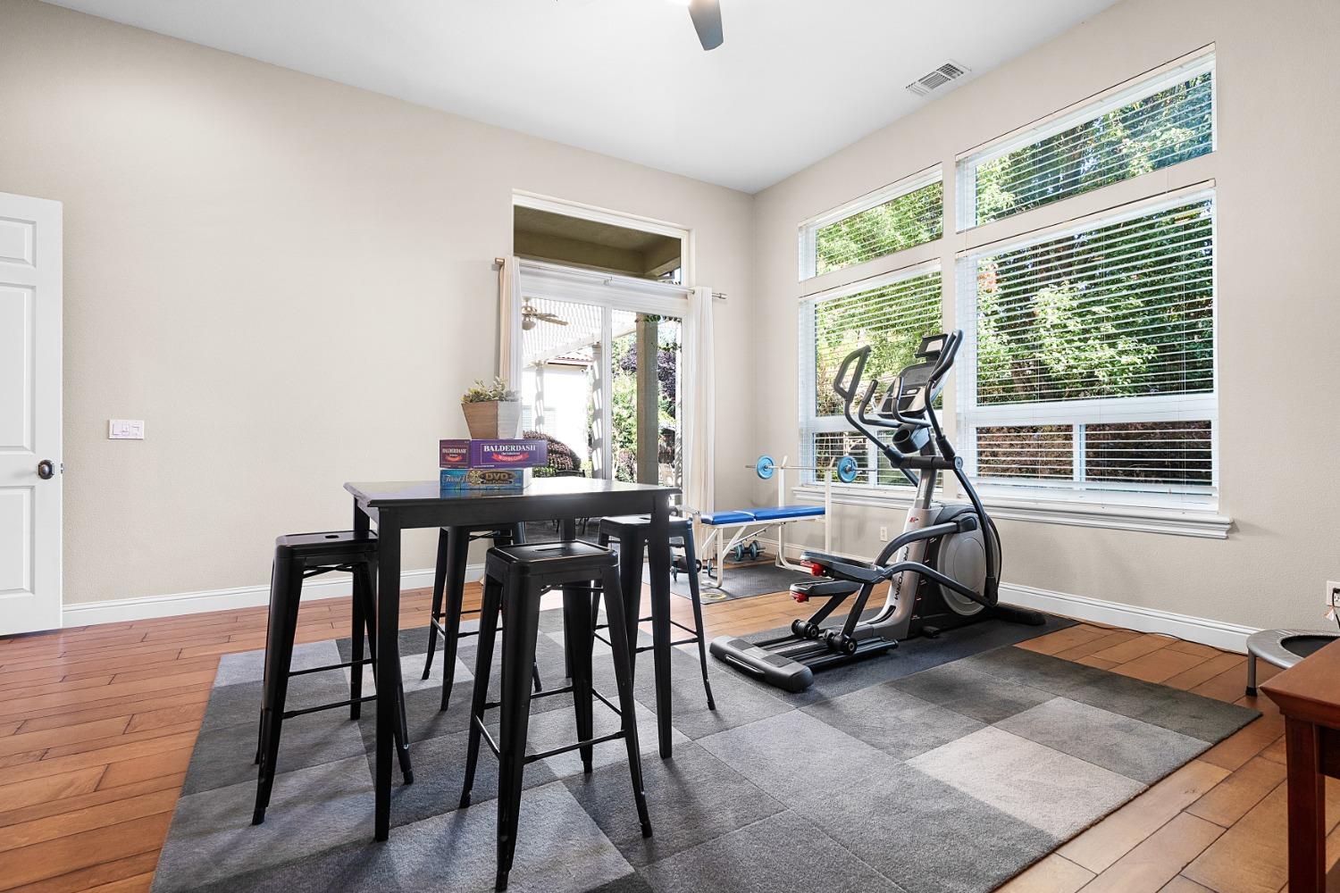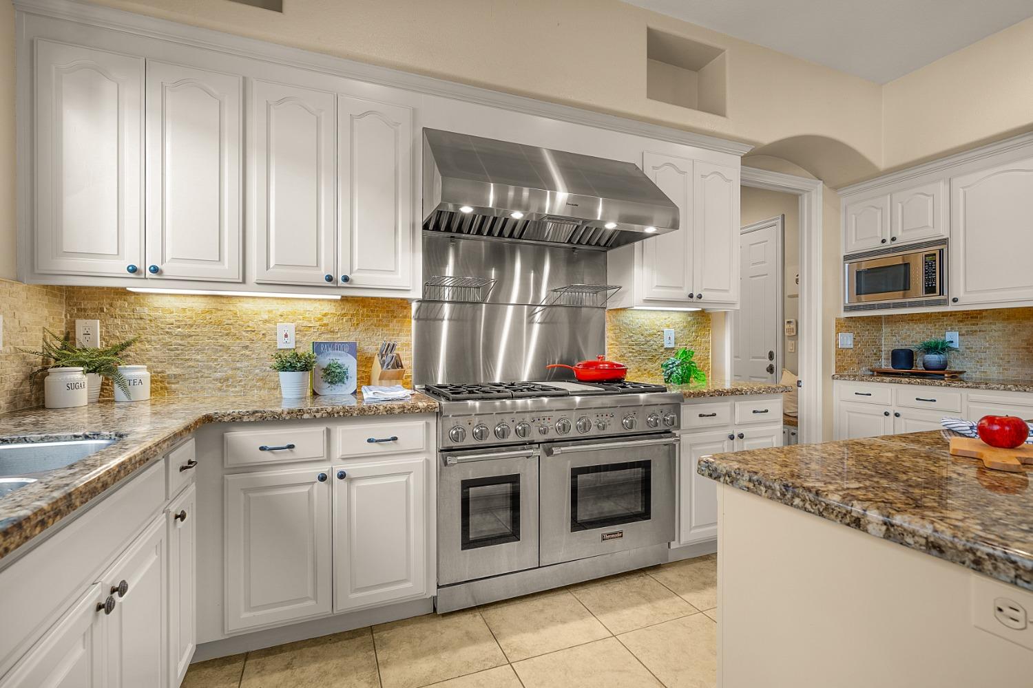 Located in the highly desirable Douglas Ranch community, this stunning single-story home seamlessly blends elegance with modern convenience. Updates throughout include wide plank wood flooring, plantation shutters, and a gourmet kitchen equipped with a professional-grade range, making it a chef's dream. The thoughtfully designed floor plan features in-law quarters for added privacy and an expansive bonus room, perfect for entertaining or as a flexible living space. Retreat to the luxurious primary bedroom, complete with a cozy fireplace, offering a serene escape. The beautifully landscaped, park-like backyard is an entertainer's paradise, ideal for al fresco dining or simply enjoying the tranquil surroundings. Additional features include seller-owned solar, ensuring energy efficiency and peace of mind. This home offers a rare opportunity to experience upscale living in one of Granite Bay's most sought-after neighborhoods!
