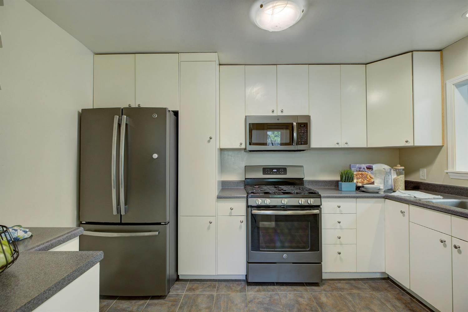Beautiful three bedroom, two full bathroom home in the wonderful neighborhood of Elmhurst. Close proximity to hospitals and UC Davis School of Medicine. This home has a great floorplan adding extra space for those needing separate living room and family room. The family room boasts natural light through the skylight. A dining area as well as a space off the kitchen for a home office or desk space, allowing for options in decorating. The bathrooms both have a shower stall and the guest bathroom has a separate tub. There is an oversized, detached one car garage as well pre-wiring for a car charger in the driveway behind the gate, a beautiful patio area in the fully fenced back yard. Home also has newer dual pane windows and a tankless water heater. as well as pull down storage that leads to a lighted attic space for all the extras that you need out of the way during the year. Many more features that you don't want to pass by.