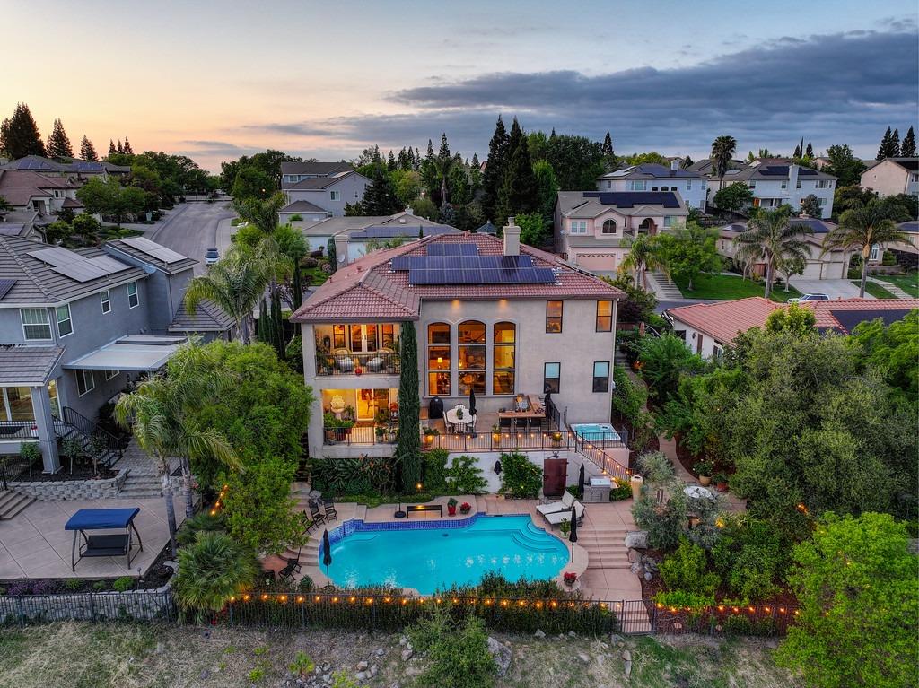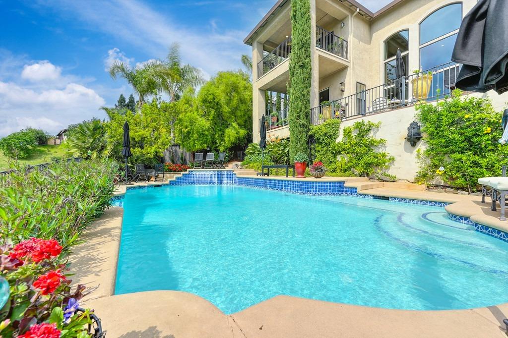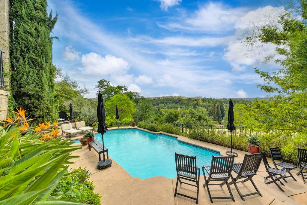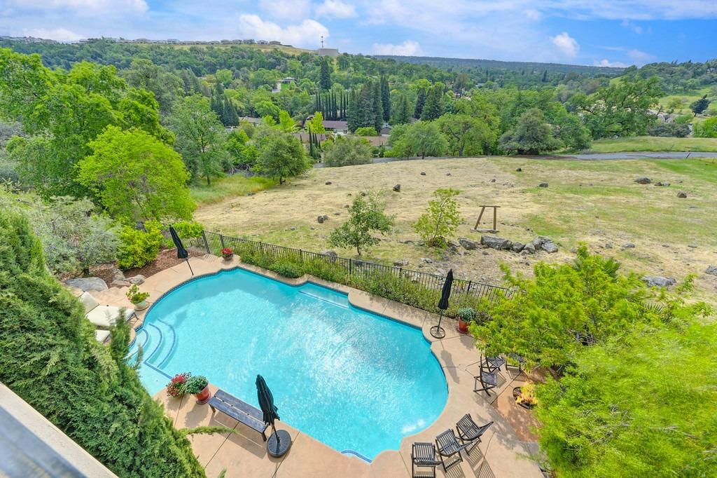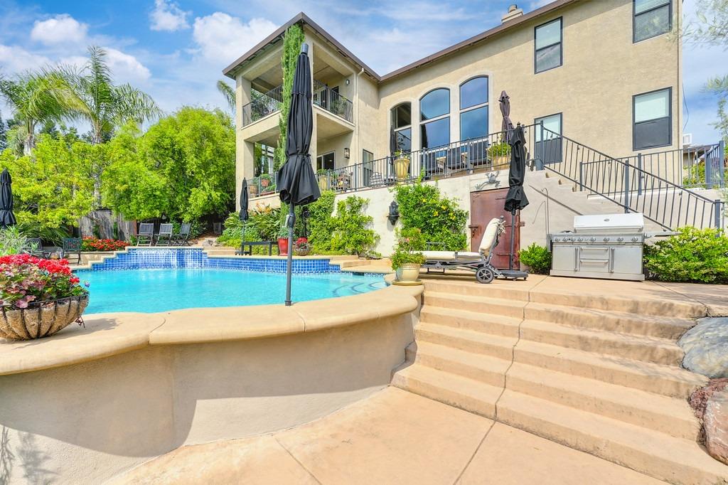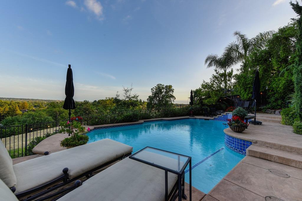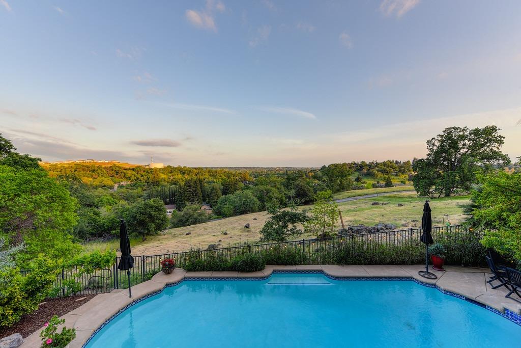 This elegant Whitney Oaks home sits on the edge of the bluff, offering sweeping views of the valley below! The open floor plan is ideal for entertaining. It boasts a large kitchen with upgraded cabinetry and stone counters, a great room concept with huge picture windows, a formal dining area, a formal living room area, and two fireplaces that create a warm and inviting space. The expansive primary suite has a large sitting area, glass french doors with incredible views, a private patio, and two walk in closets. Step outside and you'll find the backyard you've been dreaming of. It comes compete with an outdoor kitchen, built in pool, above ground hot tub, an abundance of fruit trees, and incredible views! To top it off, this home comes with owned solar. Be sure to check out the attached features list and video for more details on this stunning home!