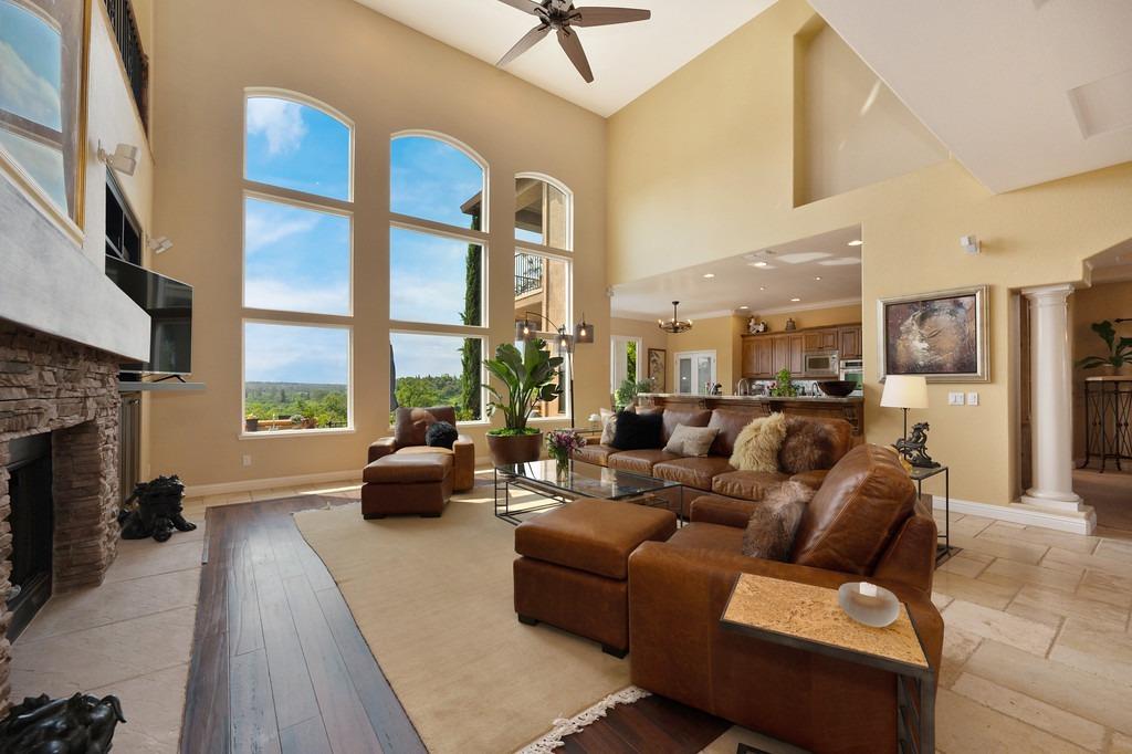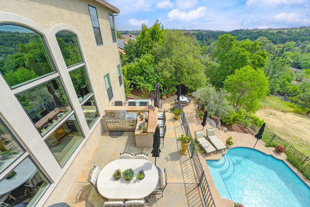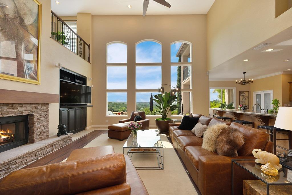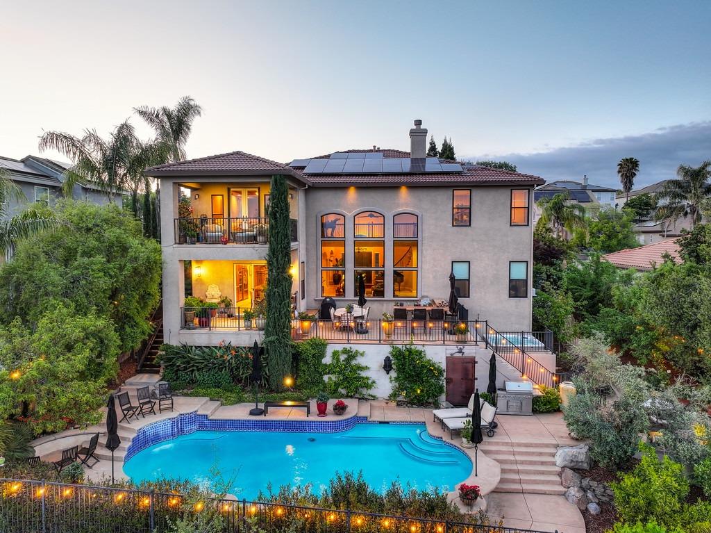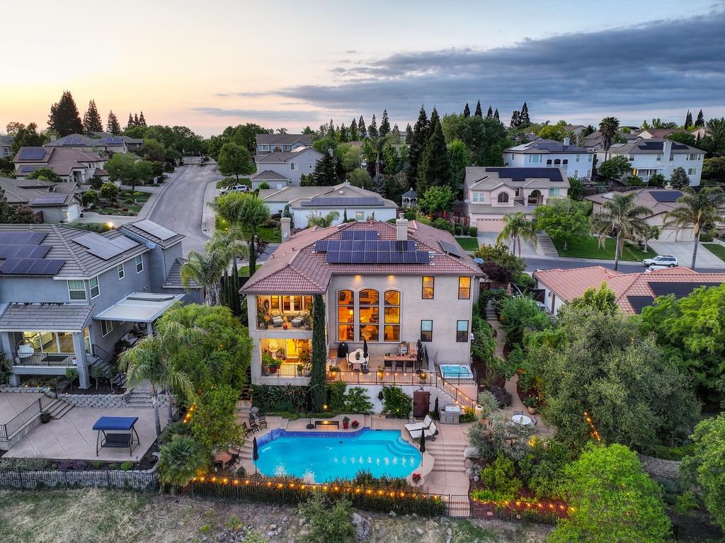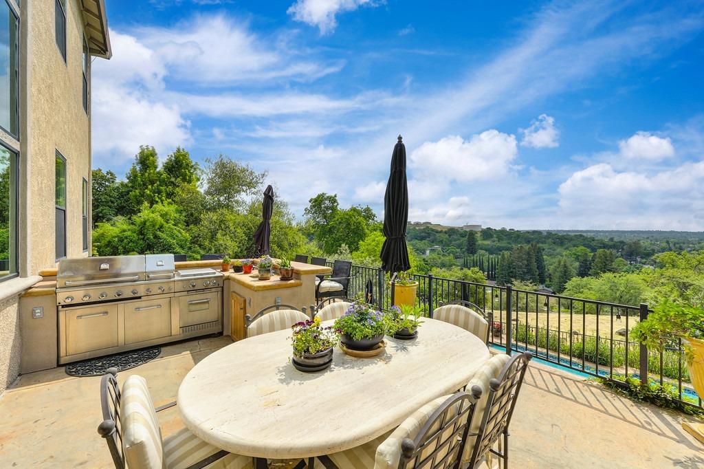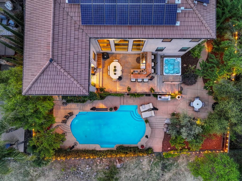 This elegant Whitney Oaks home sits on the edge of the bluff, offering sweeping views of the valley below! The open floor plan is ideal for entertaining. It boasts a large kitchen with upgraded cabinetry and stone counters, a great room concept with huge picture windows, a formal dining area, a formal living room area, and two fireplaces that create a warm and inviting space. The expansive primary suite has a large sitting area, glass french doors with incredible views, a private patio, and two walk in closets. Step outside and you'll find the backyard you've been dreaming of. It comes compete with an outdoor kitchen, built in pool, above ground hot tub, an abundance of fruit trees, and incredible views! To top it off, this home comes with owned solar. Be sure to check out the attached features list and video for more details on this stunning home!