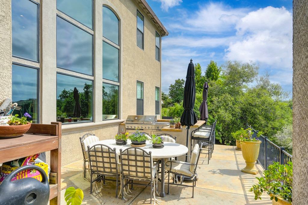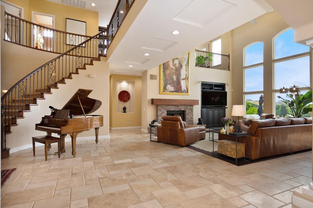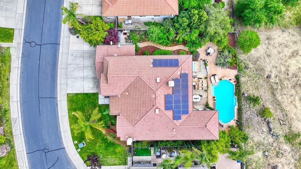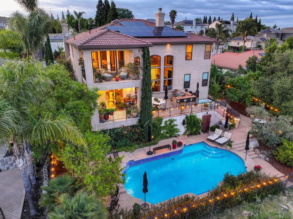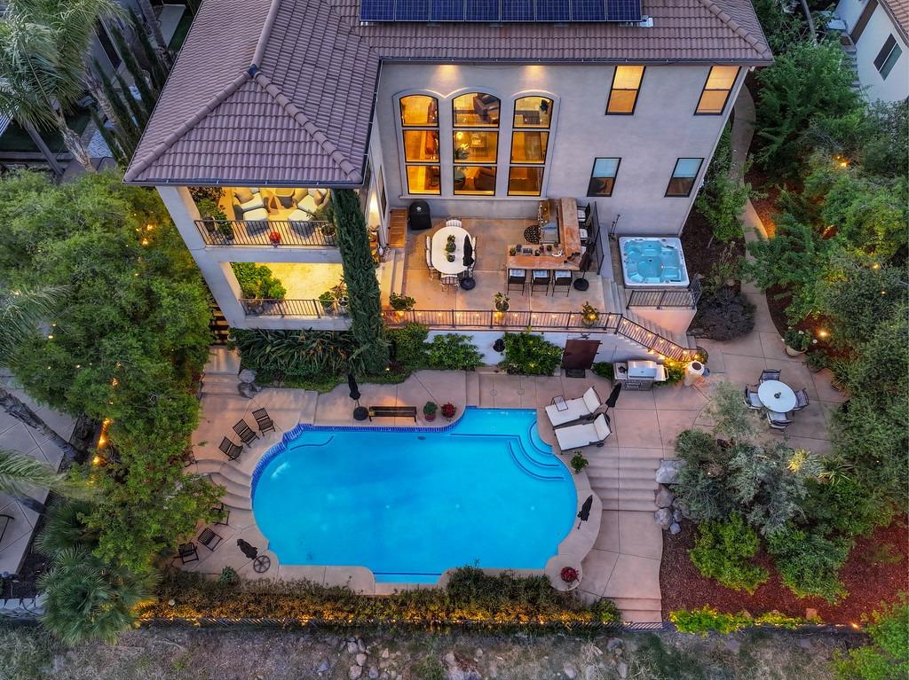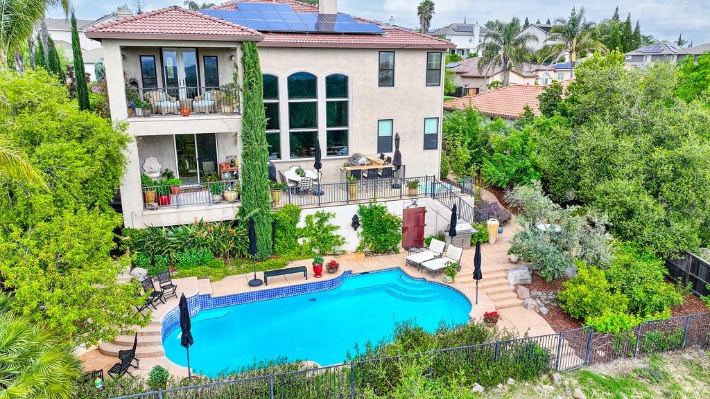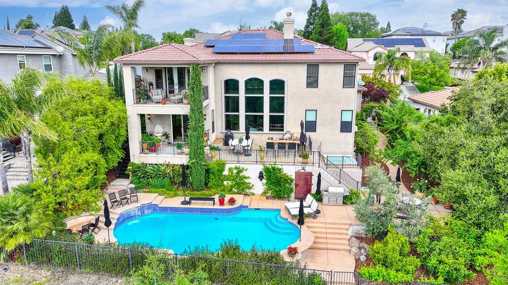 This elegant Whitney Oaks home sits on the edge of the bluff, offering sweeping views of the valley below! The open floor plan is ideal for entertaining. It boasts a large kitchen with upgraded cabinetry and stone counters, a great room concept with huge picture windows, a formal dining area, a formal living room area, and two fireplaces that create a warm and inviting space. The expansive primary suite has a large sitting area, glass french doors with incredible views, a private patio, and two walk in closets. Step outside and you'll find the backyard you've been dreaming of. It comes compete with an outdoor kitchen, built in pool, above ground hot tub, an abundance of fruit trees, and incredible views! To top it off, this home comes with owned solar. Be sure to check out the attached features list and video for more details on this stunning home!