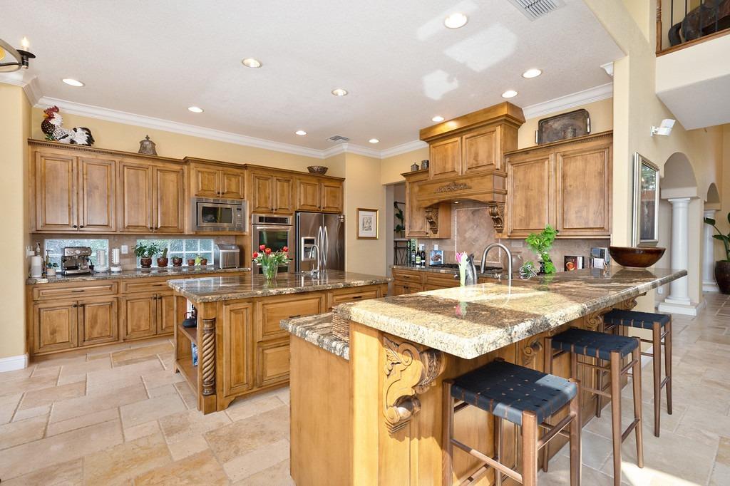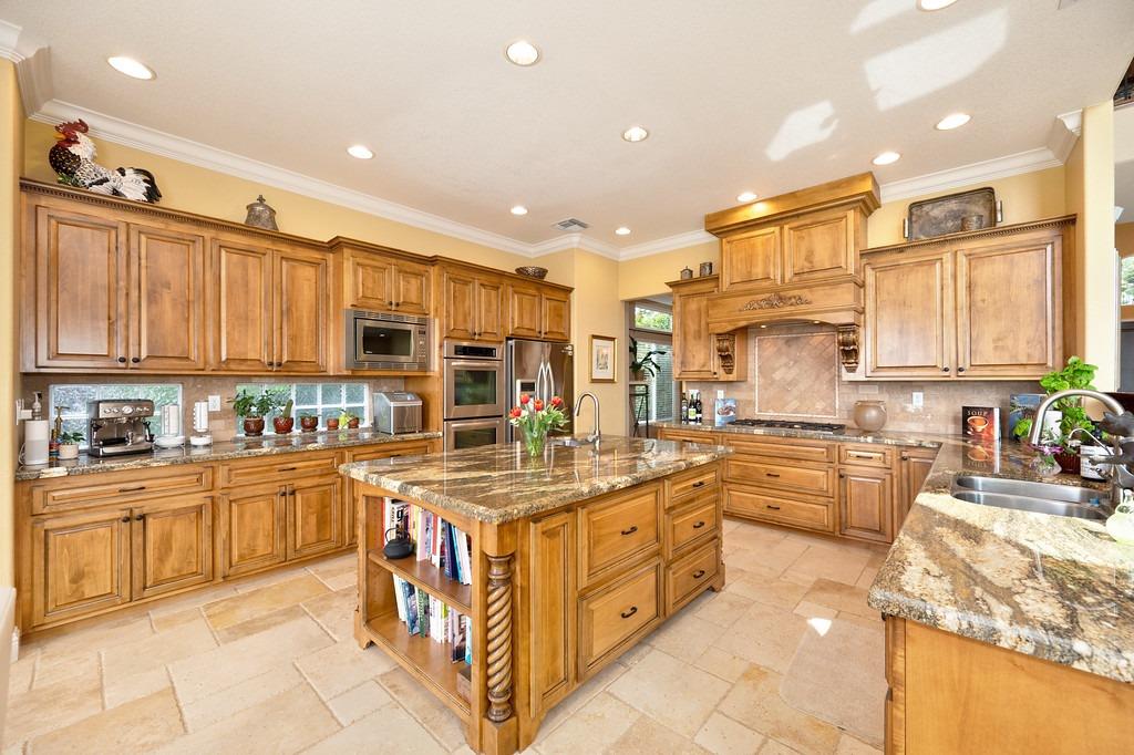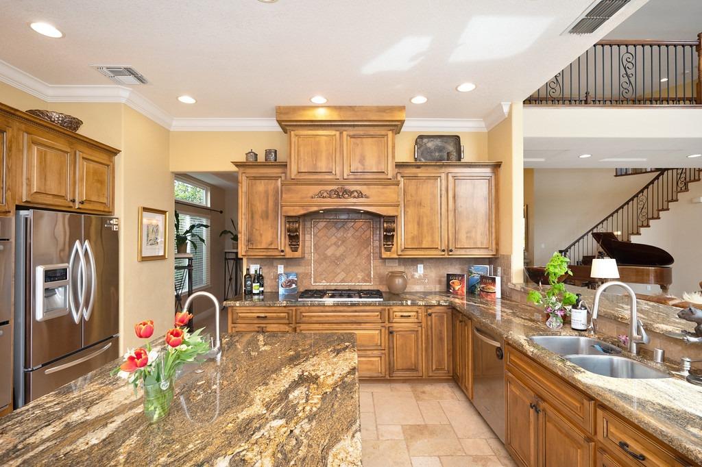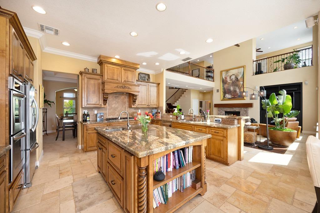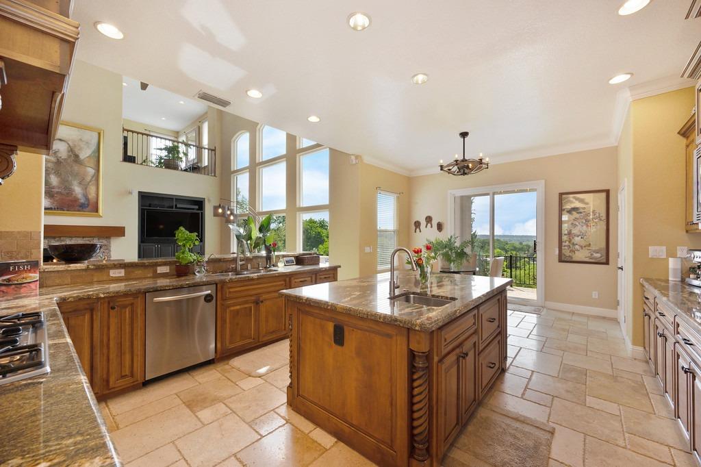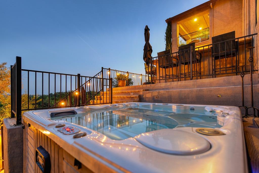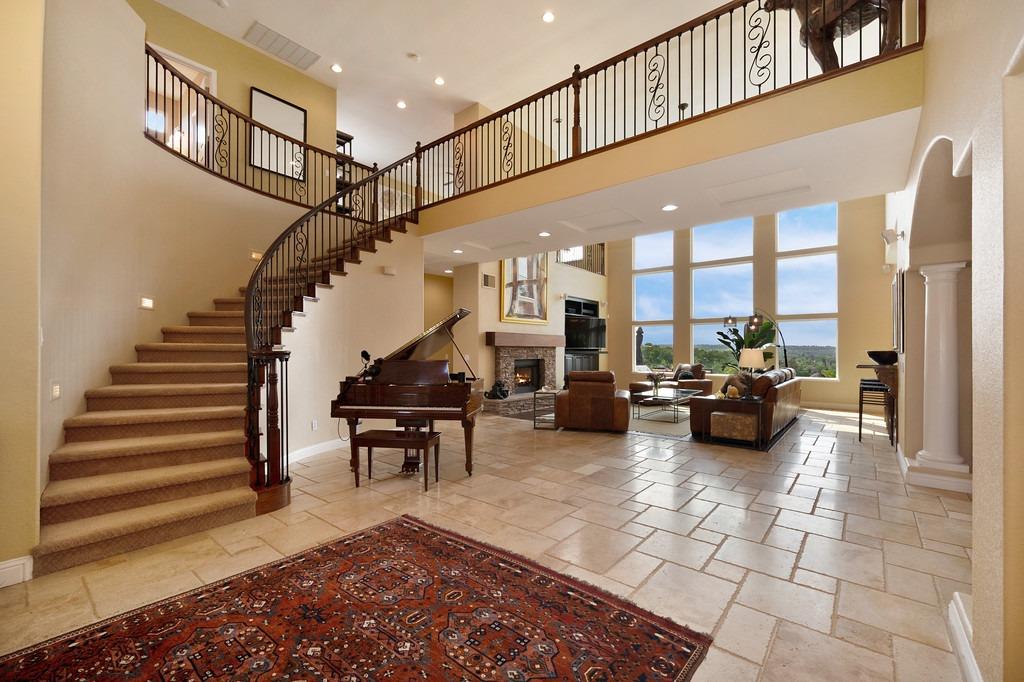 This elegant Whitney Oaks home sits on the edge of the bluff, offering sweeping views of the valley below! The open floor plan is ideal for entertaining. It boasts a large kitchen with upgraded cabinetry and stone counters, a great room concept with huge picture windows, a formal dining area, a formal living room area, and two fireplaces that create a warm and inviting space. The expansive primary suite has a large sitting area, glass french doors with incredible views, a private patio, and two walk in closets. Step outside and you'll find the backyard you've been dreaming of. It comes compete with an outdoor kitchen, built in pool, above ground hot tub, an abundance of fruit trees, and incredible views! To top it off, this home comes with owned solar. Be sure to check out the attached features list and video for more details on this stunning home!