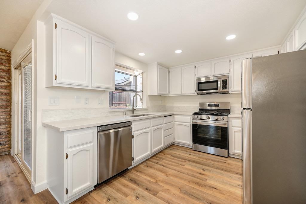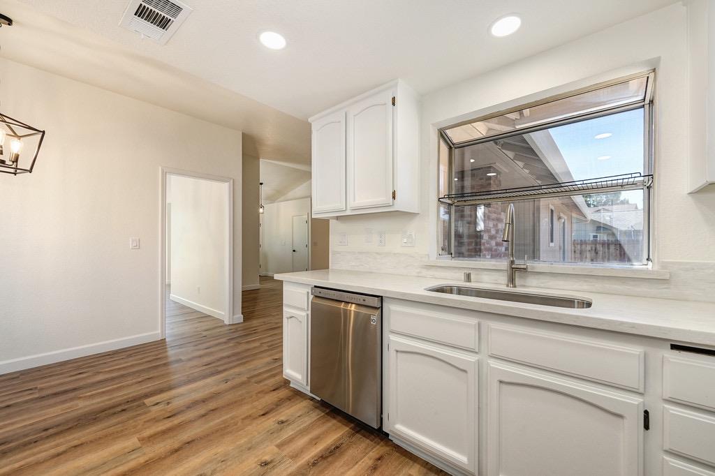 Welcome to 5720 Bluffs Drive, a charming residence situated at the end of a peaceful cul-de-sac in one of Rocklin's most desirable neighborhoods. This single-story home offers 1,686 square feet of living space and features 3 bedrooms and 2 bathrooms, with an open concept that filled with natural light! Step inside to find a formal living and dining area, family room complete with a fireplace, provides a perfect spot for relaxation, and spacious updated kitchen. This tranquil, no-HOA community offers a wonderful blend of privacy and convenience. While nestled in a quiet neighborhood, you are still just minutes away from shopping, Rocklin's top-rated schools, beautiful parks, and walking trails. The home has been recently updated, including fresh exterior paint, modern lighting, new interior paint, luxury vinyl flooring, and an updated kitchen. The newly landscaped yard offers a serene outdoor space to enjoy. Discover the perfect balance of comfort and convenience at 5720 Bluffs Drive. This home is a true standout for anyone looking for their first home!