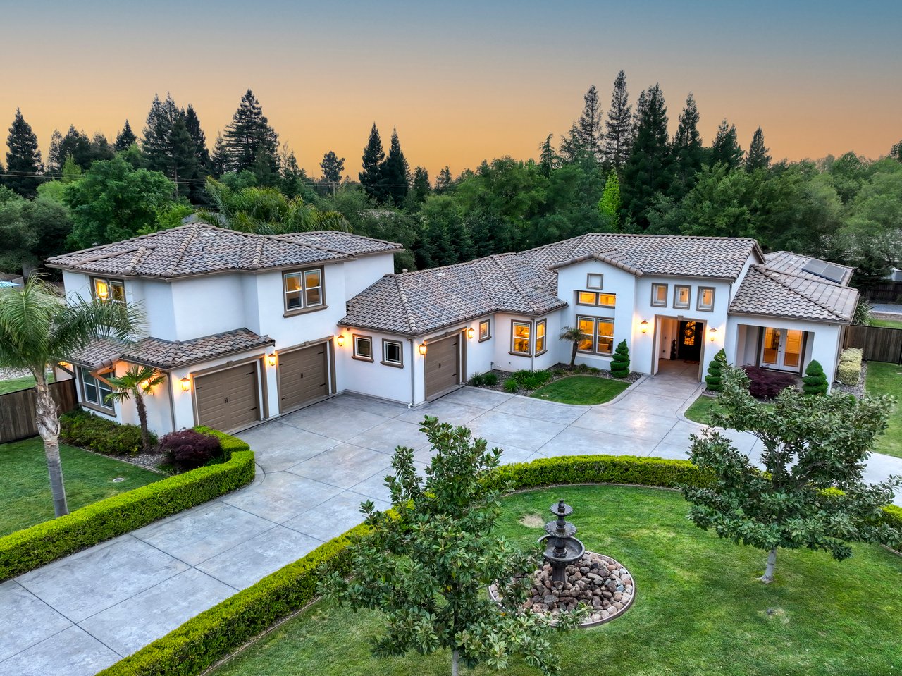 A rare offering! Tucked away on a private, flat 1.5-acre lot, this custom estate blends luxury, function, and versatility. Built in 2014, the home lives like a single story, featuring a thoughtful layout with a spacious primary suite on its own wing, plus three additional bedrooms (one en-suite, two with Jack-and-Jill bath) and a stylish office or 5th bedroom with coffered ceilings and exterior access. Host with ease in the formal dining room and butler's pantry, or gather in the open-concept kitchen and family room. The chef's kitchen includes a GE Monogram induction cooktop, stainless steel appliances, double oven, a beautiful island with bar seating and ample storage. Over the oversized 3-car garage, a flex space with half bath is perfect for a gym, office, game room, or guest suite. Step outside to a resort-style backyard with a pool, spa, waterfall, slide, covered patio and gazebo. A large area behind the pool offers space for an ADU, orchard, or more play area. An extended driveway and side yard offer room for RVs, boats or toys. Massive 22.94kW Tesla solar system powers this all electric home. This is rare Granite Bay living, providing space, privacy and an enhanced lifestyle, all minutes from top schools, dining, shopping, hospitals and Folsom Lake.