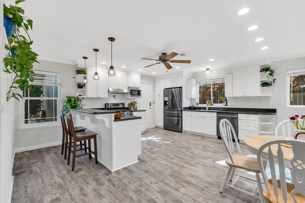 4 bed, 2 bath, 1554 SqFt home in the heart of Rocklin's excellent school district. *NO MELLO ROOS- *NO HOA. Step into a bright and welcoming atmosphere with freshly painted interiors that exude a sense of freshness and cleanliness throughout the home. The open-concept kitchen has ample storage space and a functional layout. Large primary suite with a walk-in closet. 4th bedroom makes for a perfect office space with custom glass doors. The beautifully landscaped multi-level backyard, complete with the covered area, is perfect for relaxing and unwinding in your private oasis, surrounded by lush greenery and tranquility. Don't miss the opportunity to experience the Rocklin lifestyle with the convenience of nearby Roseville's amenities. You will love this home!
