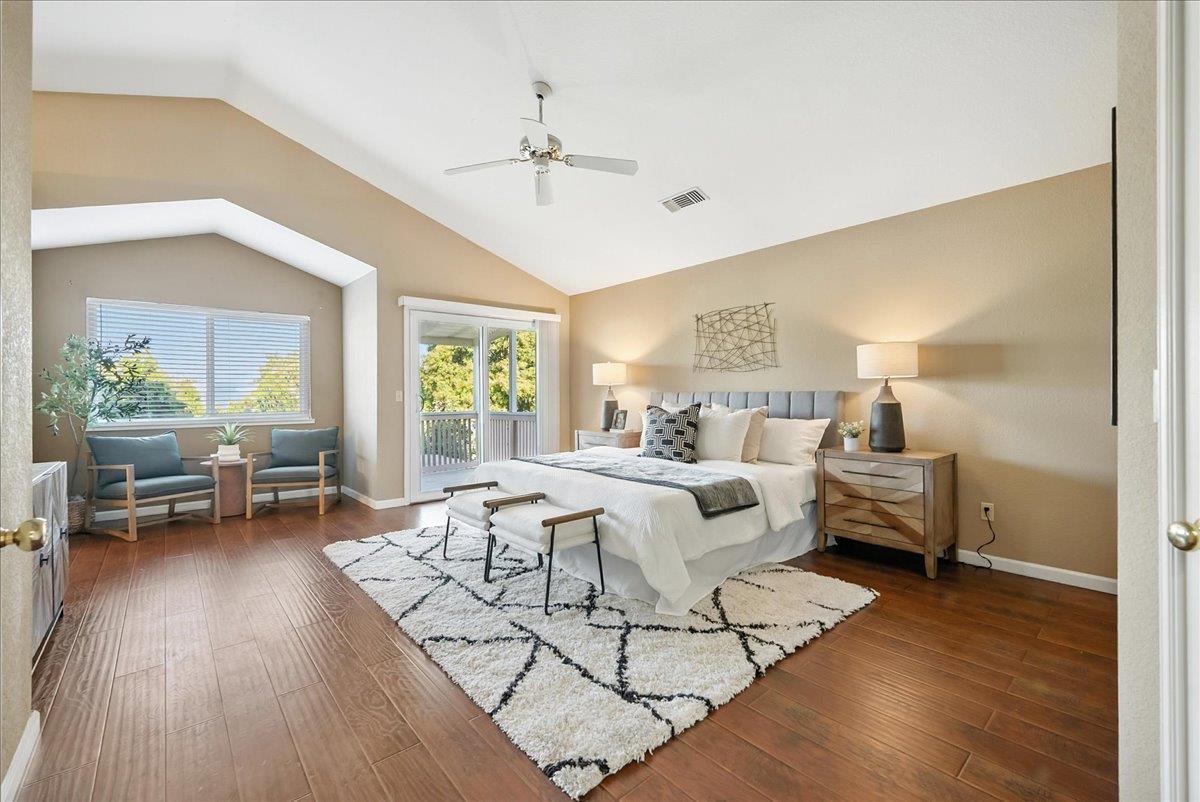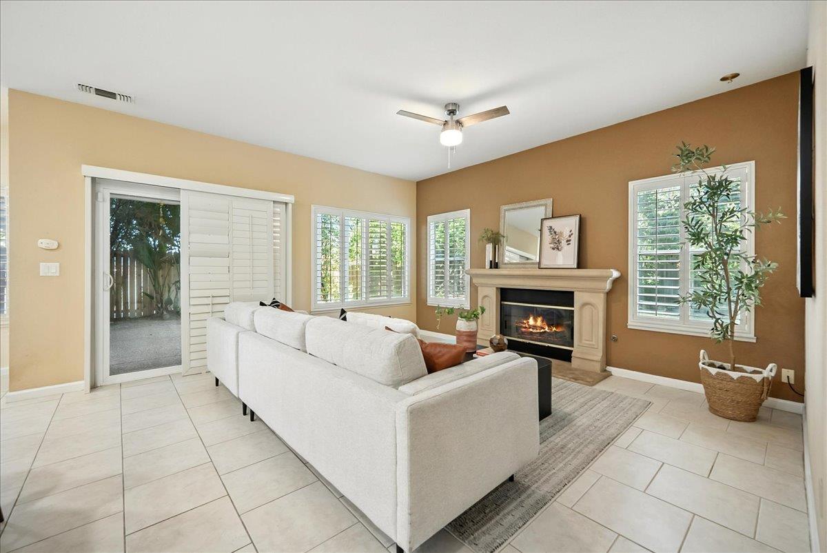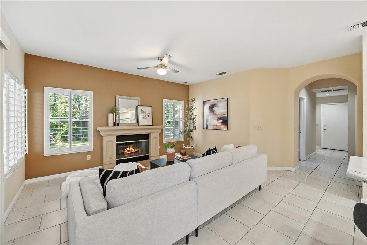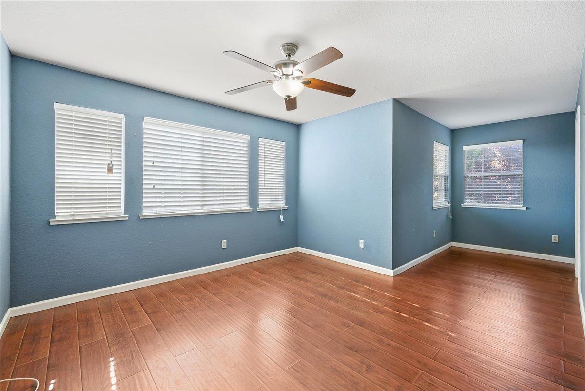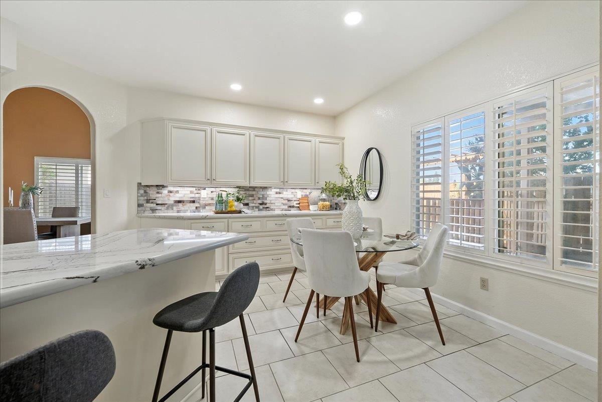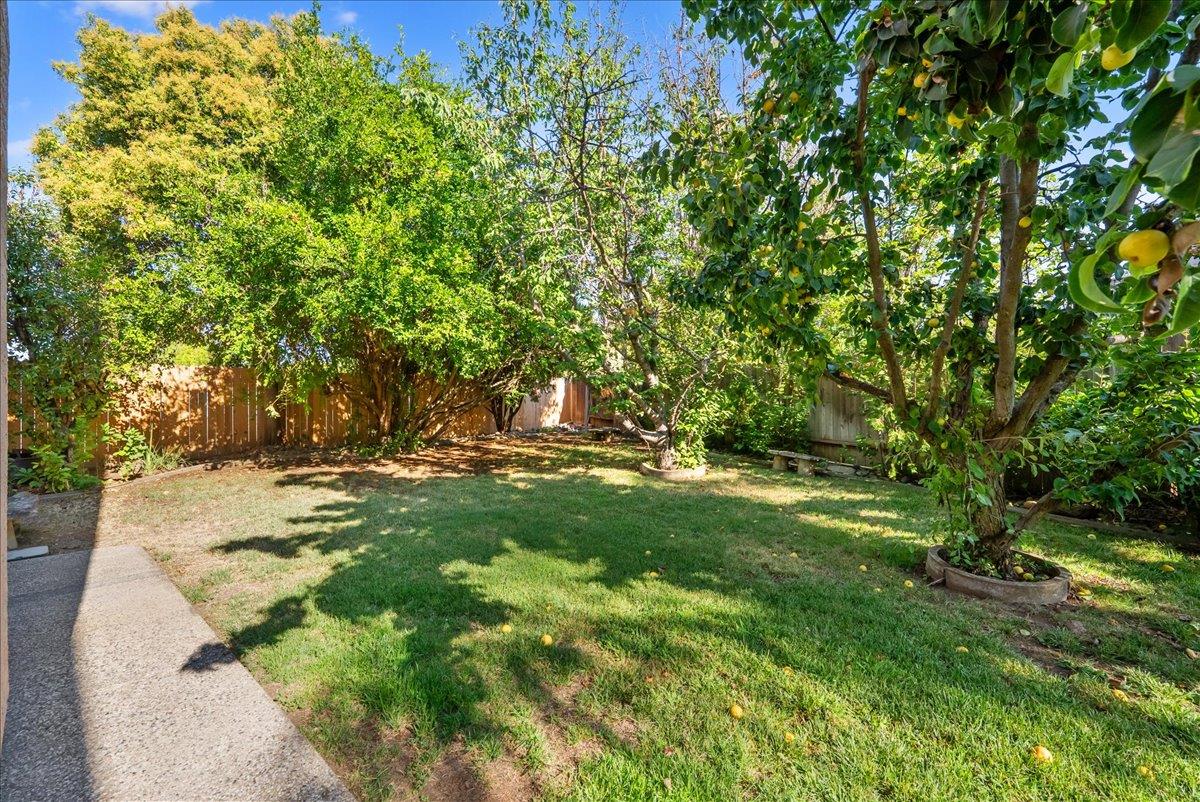 Tucked at the end of a court with no rear neighbor, this home offers the space, updates and location you've been looking for! A welcoming grand entry with soaring ceilings sets the tone, leading to a thoughtful layout with both formal and casual living areas. The great room style kitchen opens to the family room and an eat-in nook, creating an easy flow for daily life and entertaining. Enjoy generous amounts of counter space, SS appliances, updated cabinets and sleek quartz countertops. A bedroom and renovated full bath on the main level offer flexibility for guests or multigenerational living, plus you'll find a versatile flex space off the formal dining area, perfect for a home office, gym, playroom, or creative studio. Upstairs, the spacious primary suite invites you to unwind with raised ceilings, sitting area and great natural light. The tastefully updated ensuite bath offers a stall shower, soaking tub, dual vanities, walk-in closet and skylight. 3 more bedrooms plus a full bath with double sinks and shower over tub round out upstairs. Enjoy the lifestyle provided by the private backyard with a sparkling pool, lawn area, and fruit trees. 3-car garage, central air and a prime location close to amenities too! Come make this one yours!