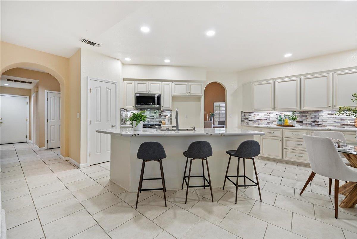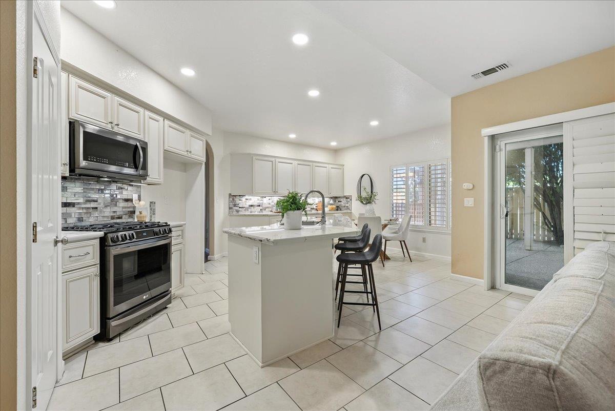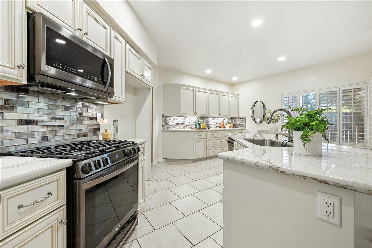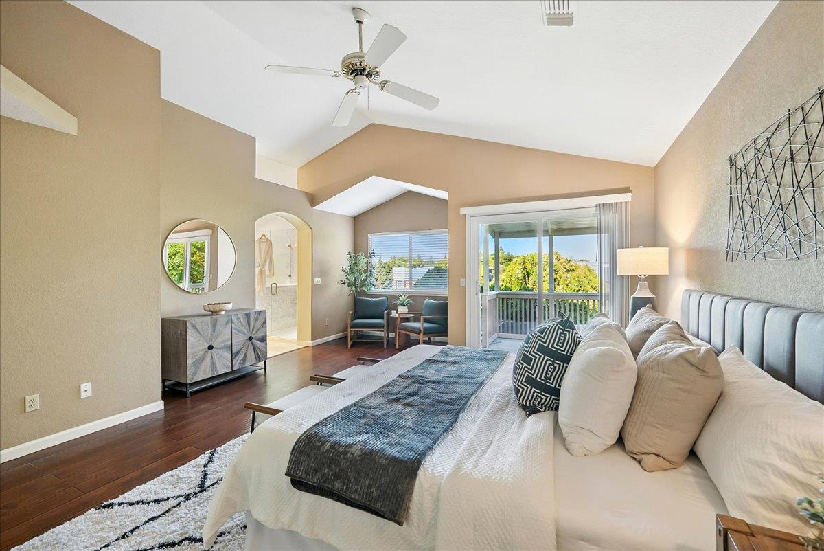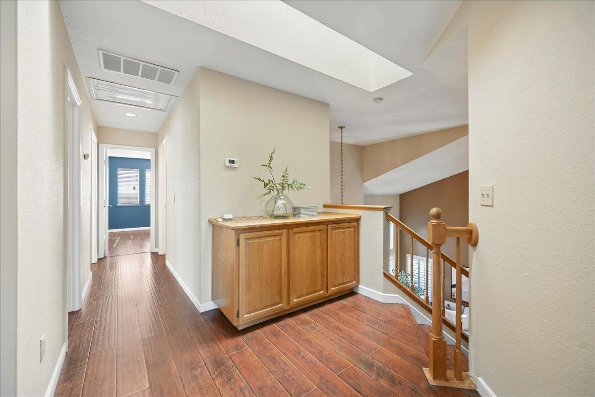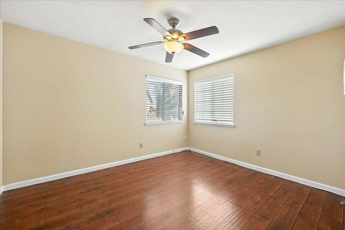Tucked at the end of a court with no rear neighbor, this home offers the space, updates and location you've been looking for! A welcoming grand entry with soaring ceilings sets the tone, leading to a thoughtful layout with both formal and casual living areas. The great room style kitchen opens to the family room and an eat-in nook, creating an easy flow for daily life and entertaining. Enjoy generous amounts of counter space, SS appliances, updated cabinets and sleek quartz countertops. A bedroom and renovated full bath on the main level offer flexibility for guests or multigenerational living, plus you'll find a versatile flex space off the formal dining area, perfect for a home office, gym, playroom, or creative studio. Upstairs, the spacious primary suite invites you to unwind with raised ceilings, sitting area and great natural light. The tastefully updated ensuite bath offers a stall shower, soaking tub, dual vanities, walk-in closet and skylight. 3 more bedrooms plus a full bath with double sinks and shower over tub round out upstairs. Enjoy the lifestyle provided by the private backyard with a sparkling pool, lawn area, and fruit trees. 3-car garage, central air and a prime location close to amenities too! Come make this one yours!