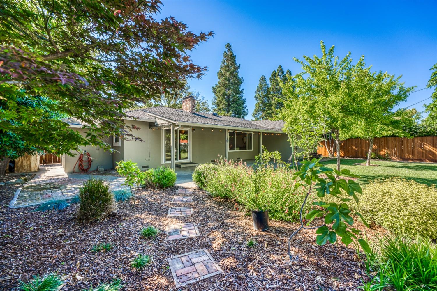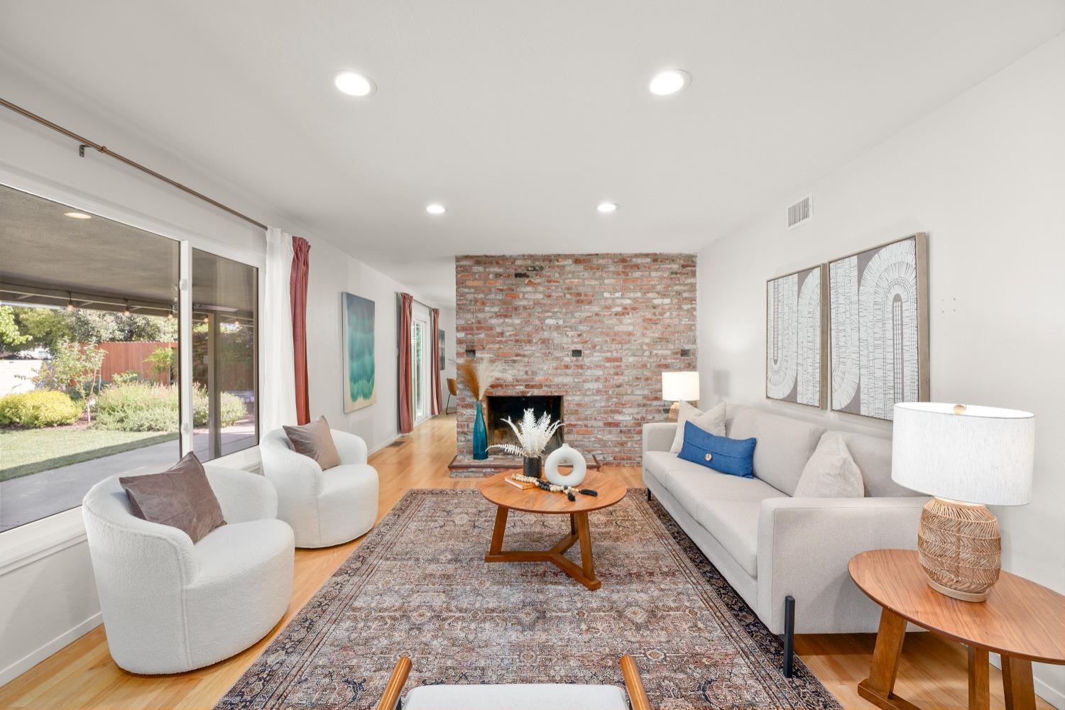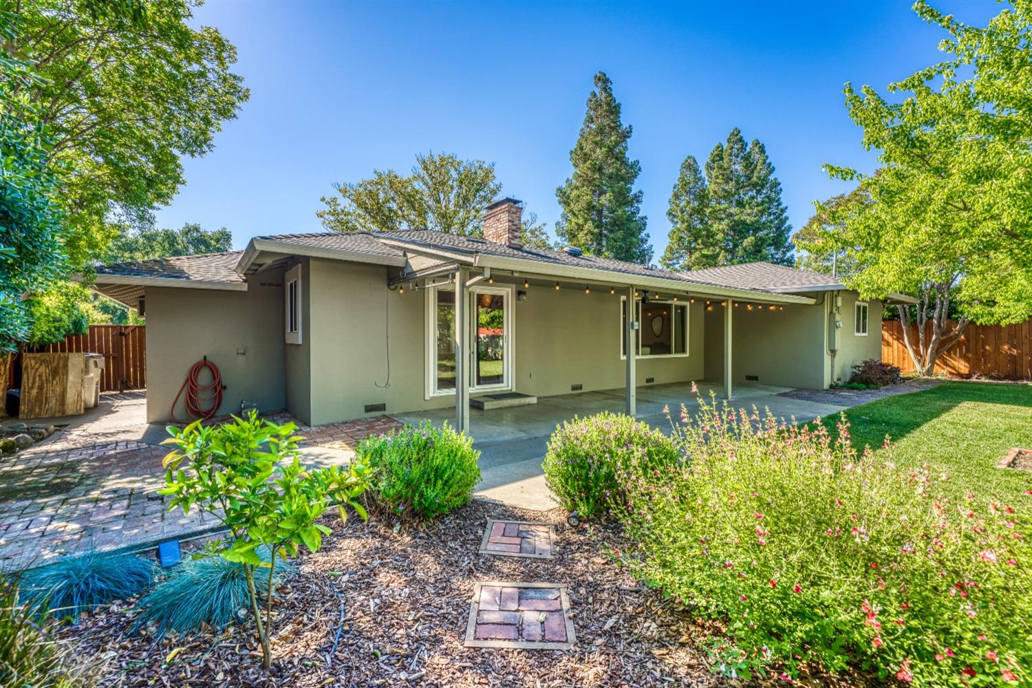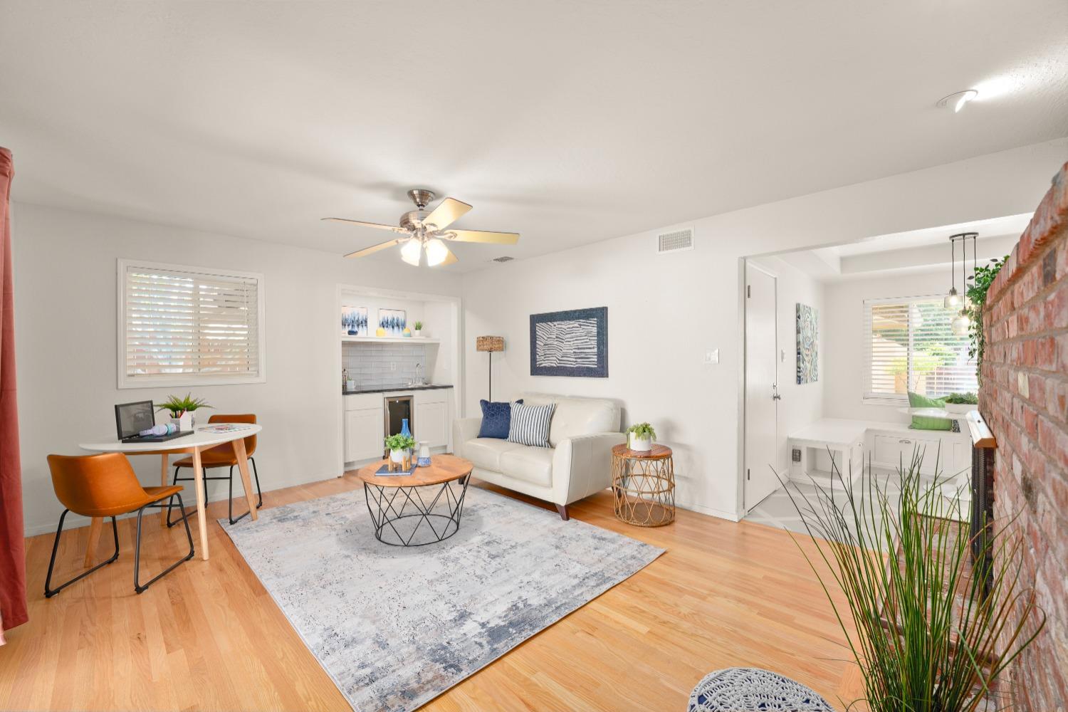 Character, curb appeal, space, and proximity. You'll find it all in this classic South Land Park home that has been modernized to meet today's standards. The home maintains its original charm with beautifully refinished hardwood floors and brick fireplaces, while the newer dual pane windows throughout, newer roof, recessed lights, and newly redone whole house plumbing bring the home's major systems up to date. Thoughtful finishes throughout the home, including the custom ProVia front door, coffee bar with beverage fridge, painted tile floors, and built in bench seating in the dining area seamlessly blend time periods. The kitchen offers ample space to prep meals and host, while the natural light from an abundance of windows makes the space feel airy and bright. Two living spaces provide the opportunity to gather or quiet places to unwind. The primary bedroom offers a full wall closet and remodeled ensuite bath with a moody tiled shower and glass enclosure. The hall bath features a cloe tile surround with shower over tub. An oversized and private landscaped backyard welcomes you with a covered patio and ceiling fan, fruit trees, grass for play, newer fences, and a chicken coop! Close proximity to Land Park, Waldorf School, Del Rio Trail, grocery stores, local cafes, and more!