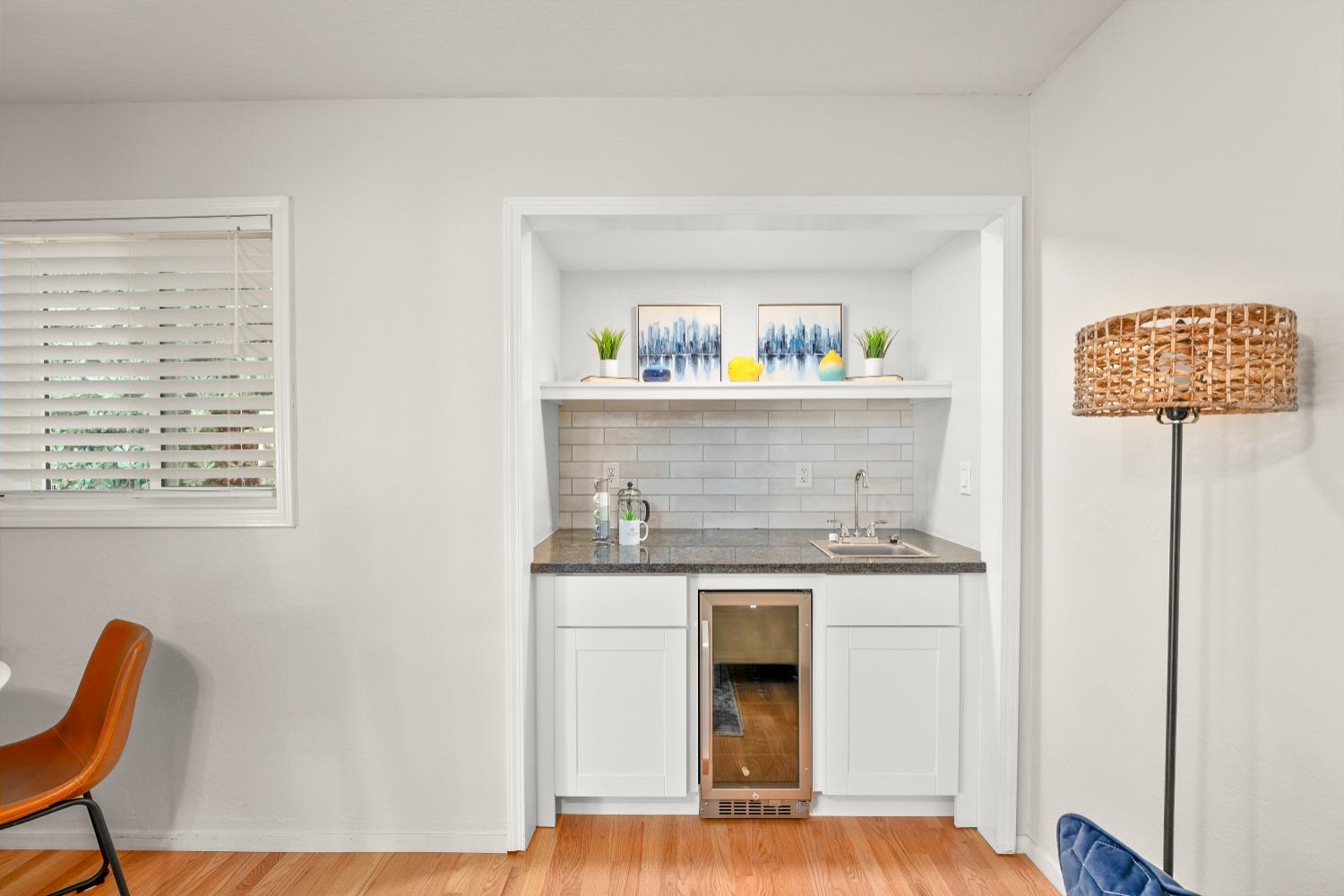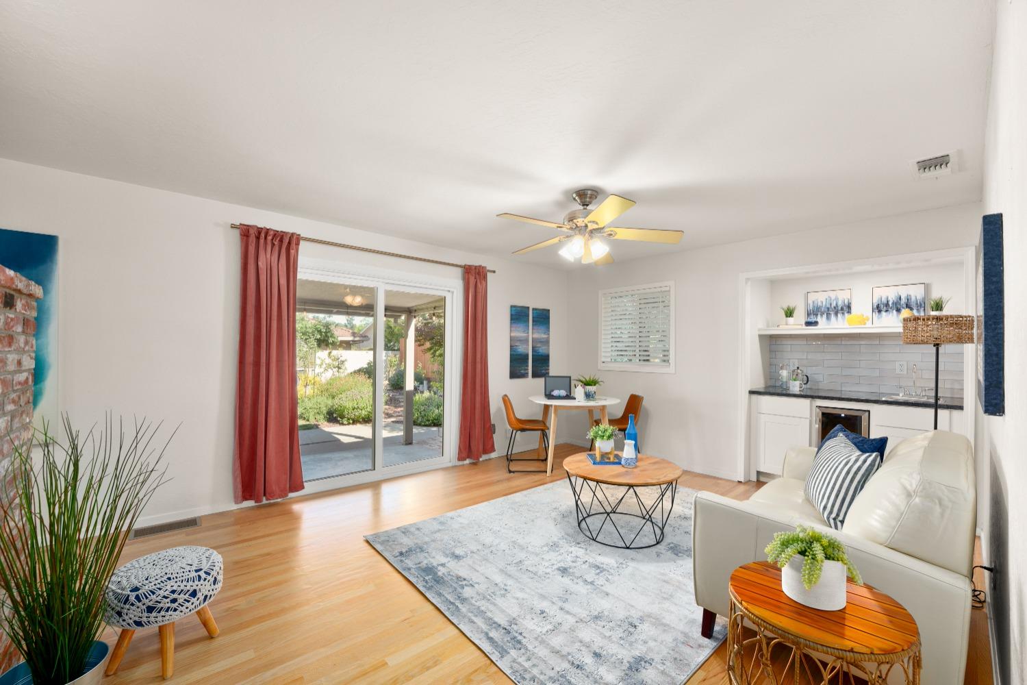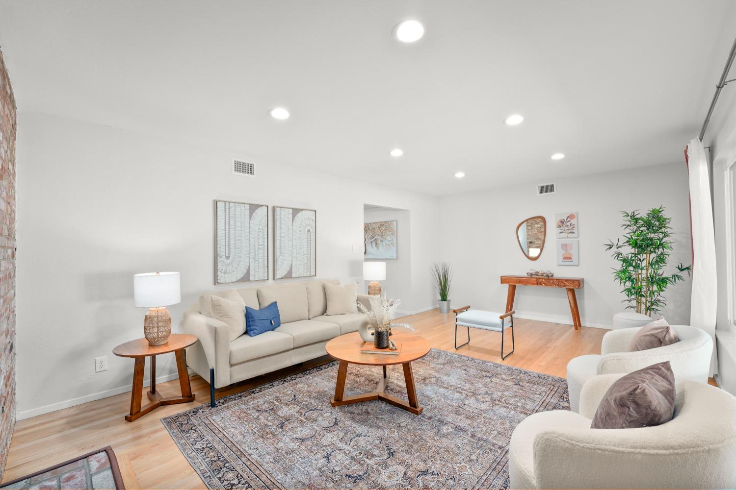 Character, curb appeal, space, and proximity. You'll find it all in this classic South Land Park home that has been modernized to meet today's standards. The home maintains its original charm with beautifully refinished hardwood floors and brick fireplaces, while the newer dual pane windows throughout, newer roof, recessed lights, and newly redone whole house plumbing bring the home's major systems up to date. Thoughtful finishes throughout the home, including the custom ProVia front door, coffee bar with beverage fridge, painted tile floors, and built in bench seating in the dining area seamlessly blend time periods. The kitchen offers ample space to prep meals and host, while the natural light from an abundance of windows makes the space feel airy and bright. Two living spaces provide the opportunity to gather or quiet places to unwind. The primary bedroom offers a full wall closet and remodeled ensuite bath with a moody tiled shower and glass enclosure. The hall bath features a cloe tile surround with shower over tub. An oversized and private landscaped backyard welcomes you with a covered patio and ceiling fan, fruit trees, grass for play, newer fences, and a chicken coop! Close proximity to Land Park, Waldorf School, Del Rio Trail, grocery stores, local cafes, and more!