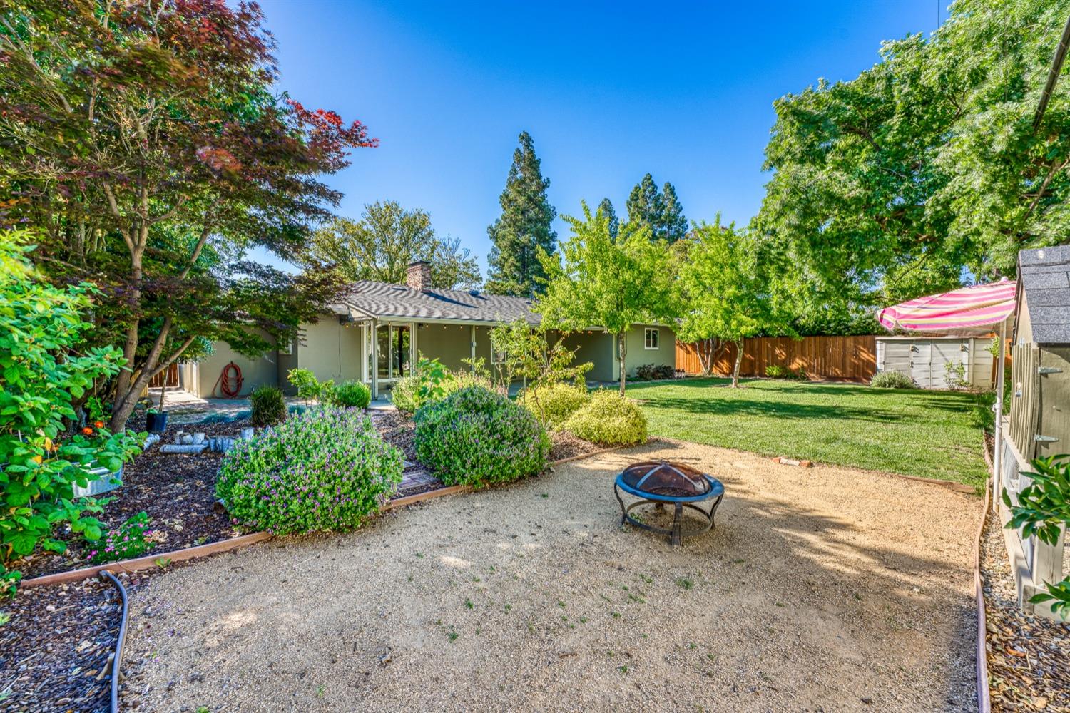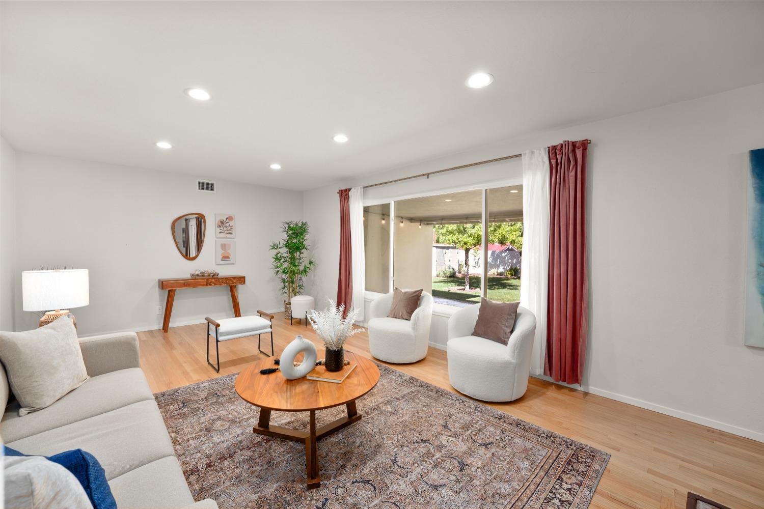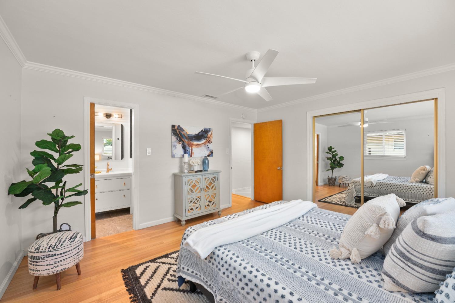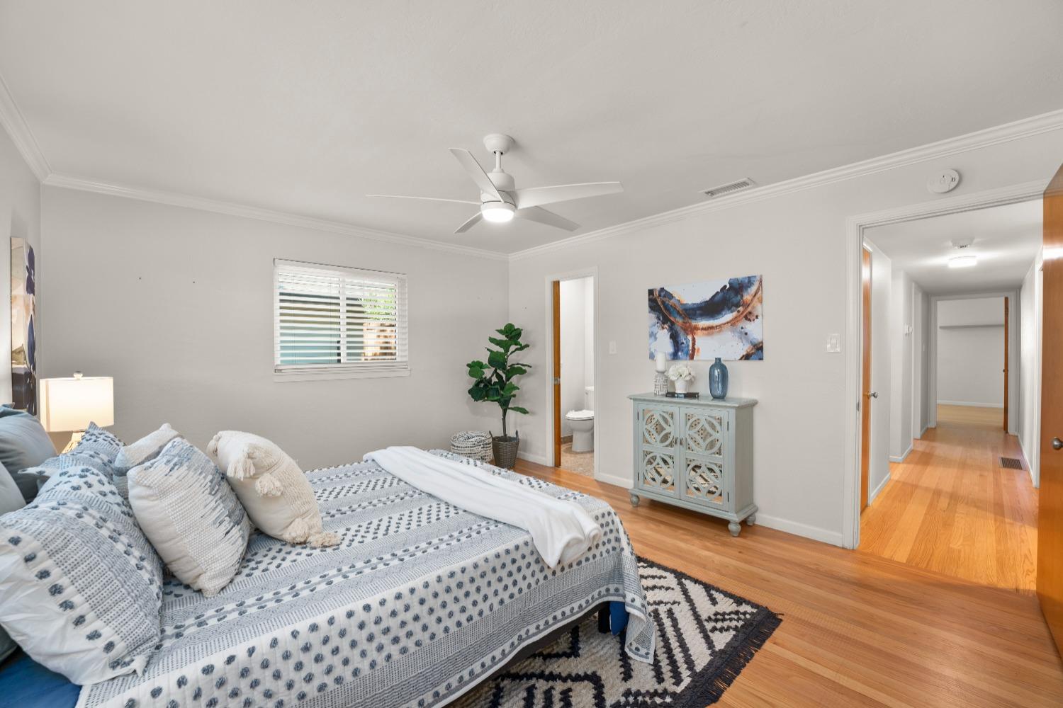 Character, curb appeal, space, and proximity. You'll find it all in this classic South Land Park home that has been modernized to meet today's standards. The home maintains its original charm with beautifully refinished hardwood floors and brick fireplaces, while the newer dual pane windows throughout, newer roof, recessed lights, and newly redone whole house plumbing bring the home's major systems up to date. Thoughtful finishes throughout the home, including the custom ProVia front door, coffee bar with beverage fridge, painted tile floors, and built in bench seating in the dining area seamlessly blend time periods. The kitchen offers ample space to prep meals and host, while the natural light from an abundance of windows makes the space feel airy and bright. Two living spaces provide the opportunity to gather or quiet places to unwind. The primary bedroom offers a full wall closet and remodeled ensuite bath with a moody tiled shower and glass enclosure. The hall bath features a cloe tile surround with shower over tub. An oversized and private landscaped backyard welcomes you with a covered patio and ceiling fan, fruit trees, grass for play, newer fences, and a chicken coop! Close proximity to Land Park, Waldorf School, Del Rio Trail, grocery stores, local cafes, and more!