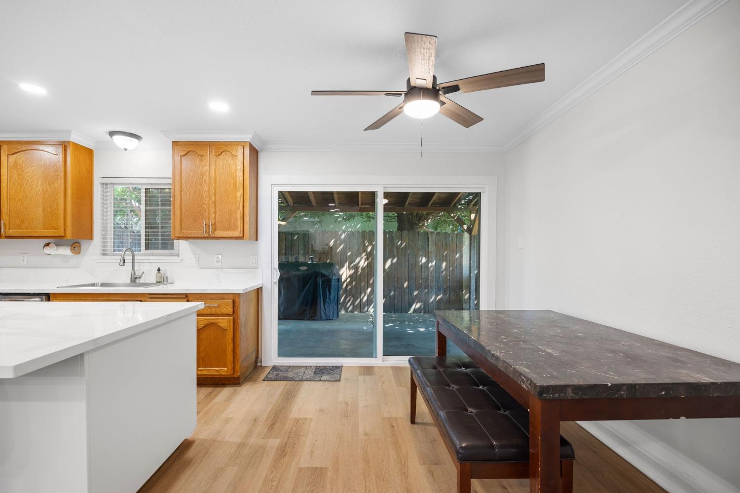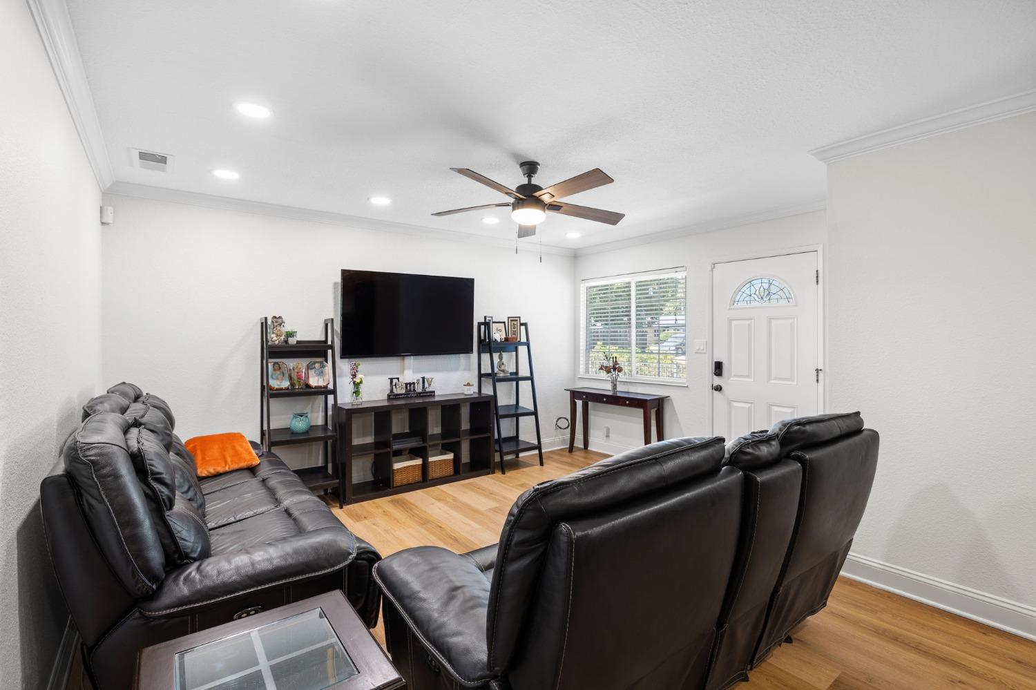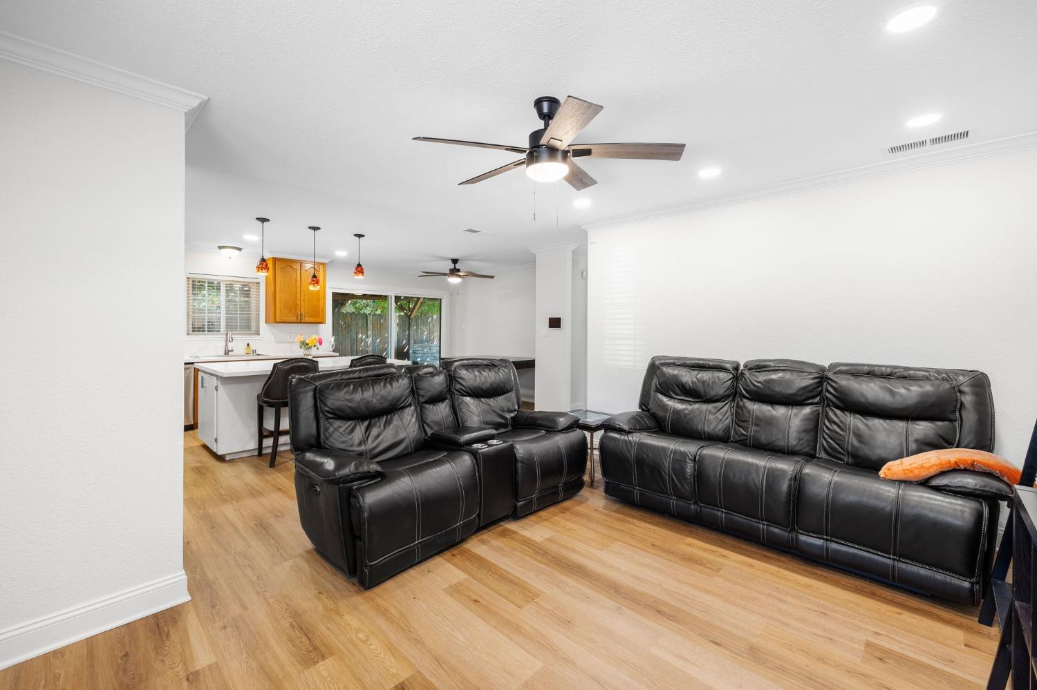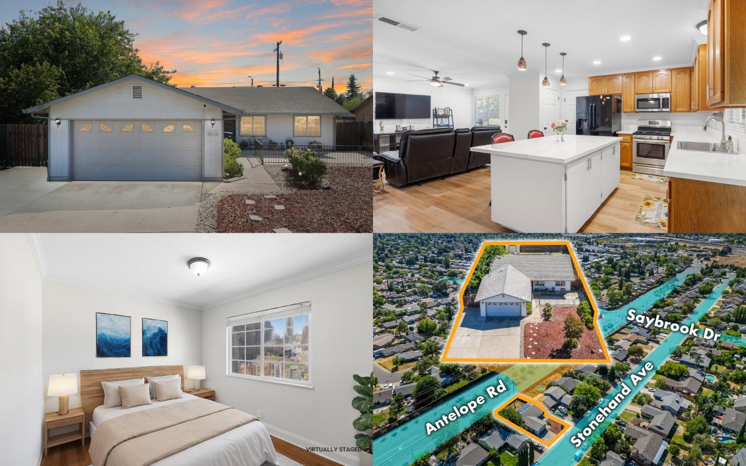 Remodeled & Move-in Ready! This single-story 4-bedroom, 2-bathroom home in central Citrus Heights offers exceptional value and space. It's rare to find a home w/ 4 bedrooms and such a stunning open-concept layout in this area. Nestled in a quiet neighborhood, this gem boasts a large driveway w/ room for an RV, boat, or multiple cars, along w/ a 2-car direct-access garage. The beautifully updated interior features wood plank flooring, quartz countertops, refinished cabinets, a kitchen island, gas range, fully remodeled bathrooms w/ custom tile, neutral paint, crown molding, Tesla solar, & more! The open-concept kitchen, dining, & living areas are perfect for entertaining, highlighted by the large island, stainless steel appliances, a spacious pantry, & a massive sliding glass door leading to a patio. The fully fenced backyard is spacious & level, w/ room for a small ADU, pool, or play area for kids & pets. Centrally located, this home is walking distance to schools & shopping, w/ quick access to I-80 for easy commutes or weekend trips to Tahoe!