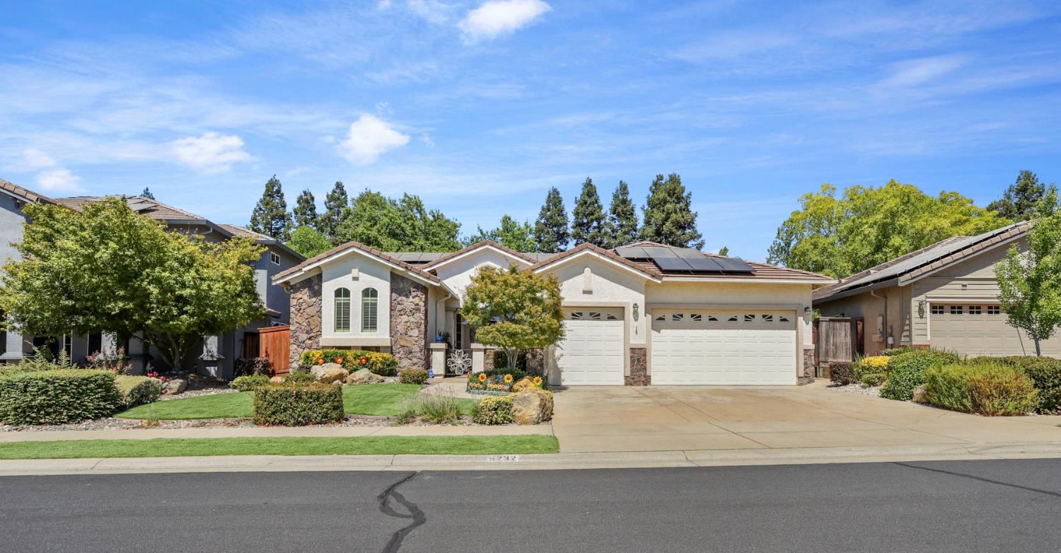 BACK ON MARKET Sept. 17th, at no fault to property. * Welcome to this stunning single-story residence in the HIGHLY sought-after Highland Reserve! * You will be impressed by its charm. 3-4 bdrms, 3 full baths & 3 car grg. 2,707 sq ft of living space on shy of a 1/4 acre, this home offers ample room for everyone. Interior boasts a fantastic floor plan, featuring a bright living room, formal dining area, a sunny breakfast nook & family room. 2 cozy fireplaces add warmth & ambiance - 1 in the family room & another in the luxurious primary bedroom suite. The ample kitchen is a chef's dream, equipped with double ovens, a built-in gas cooktop, an island, & plenty of cabinetry. The primary suite is a serene retreat, complete with dual-sided fireplace, to bedroom & adjoining sitting room, wet bar, a spacious bathroom featuring dual sinks, vanity counter, toilet room, soaking tub, & separate shower stall. TWO walk-in closets & access to the courtyard/backyard make it the perfect haven. The beautifully landscaped backyard features a serene pond water feature & multiple seating areas, perfect for relaxation. TOP-RATED school district, elementary school is walking distance, blocks away to freeway, plenty of shopping, dining, & entertainment options and let's not forget; PAID SOLAR PANELS!