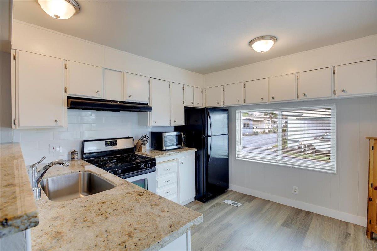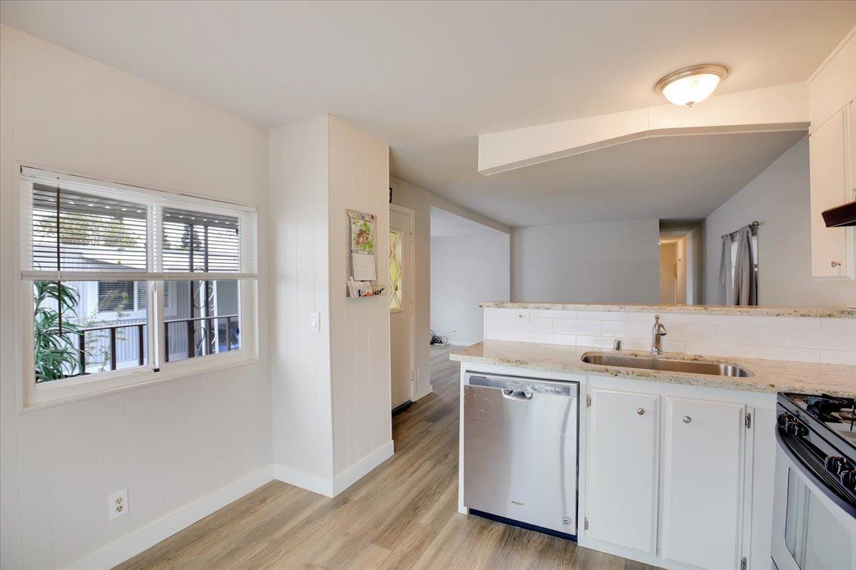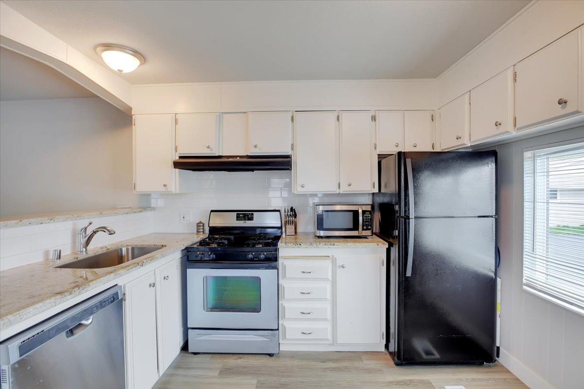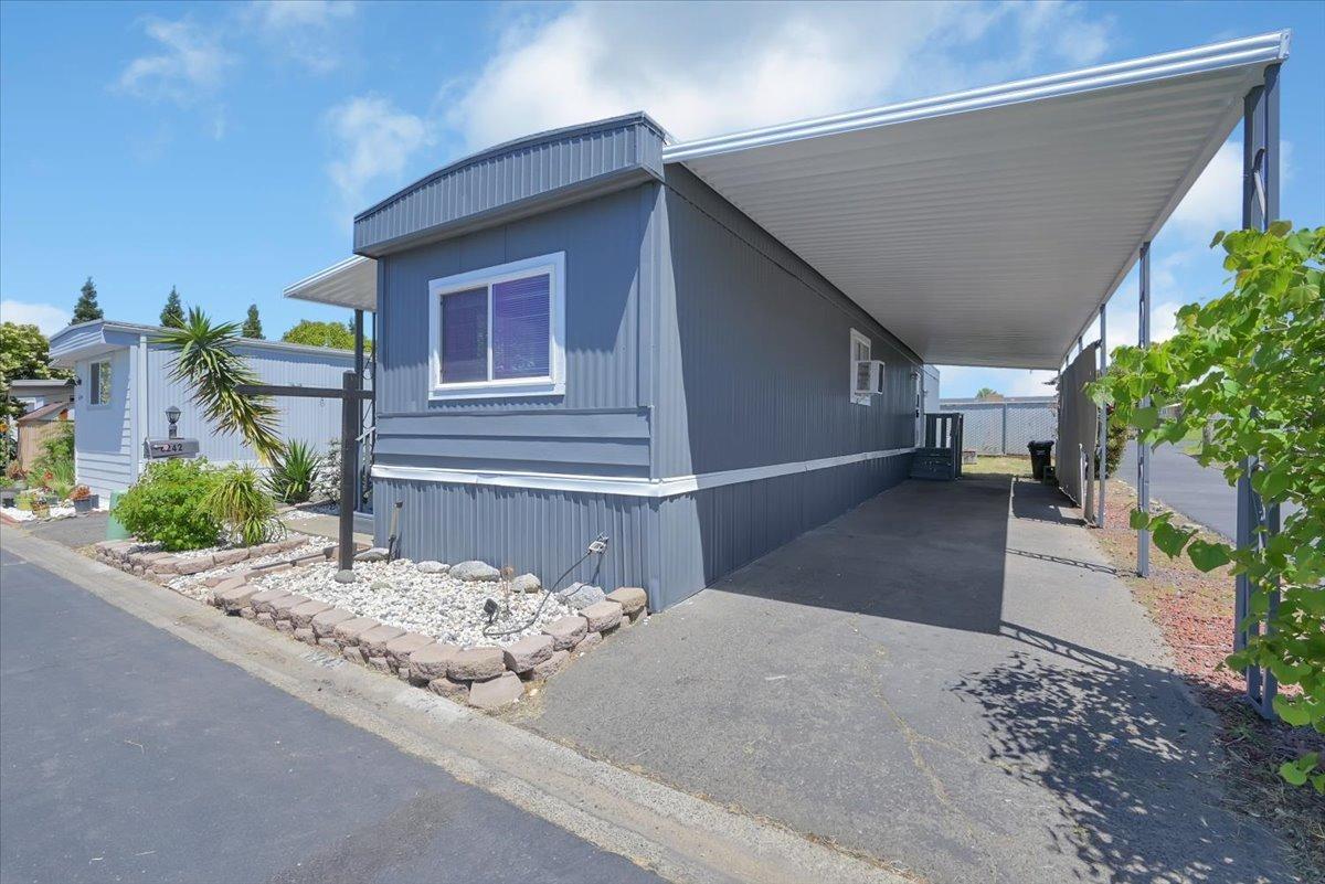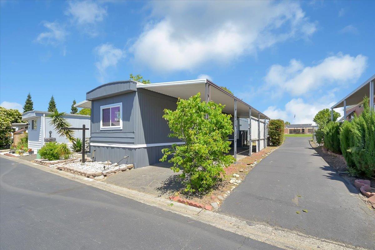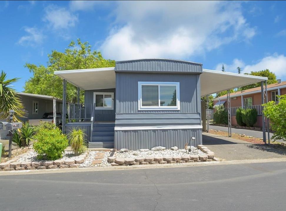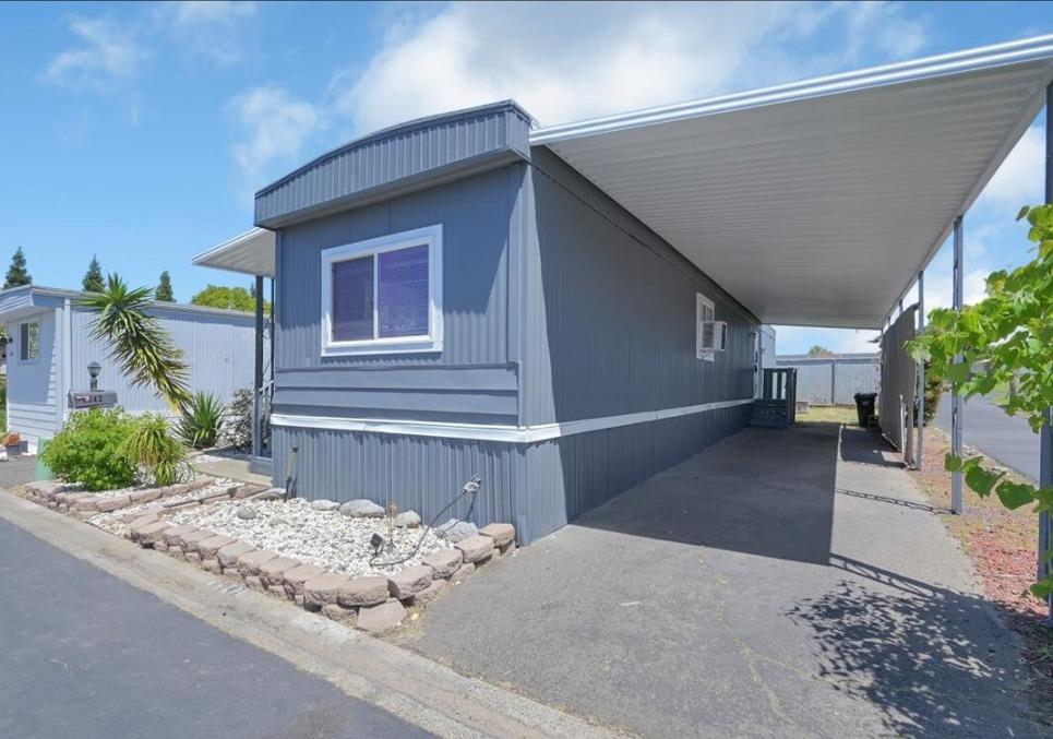 Welcome to this beautiful mobile home in a wonderful 55+ gated community. The new roof, skirt and freshly painted exterior give this home the best curb appeal in the park. Step inside to a modern kitchen with gas stove, granite counters, subway tile backsplash, and an oversized SS sink. Enjoy vinyl plank flooring, finished drywall, contemporary baseboards, & modern/bright paint throughout. The expando dining room area offers additional living space, and this home's prime location in the park is just steps from the community clubhouse and pool- just in time for summer!