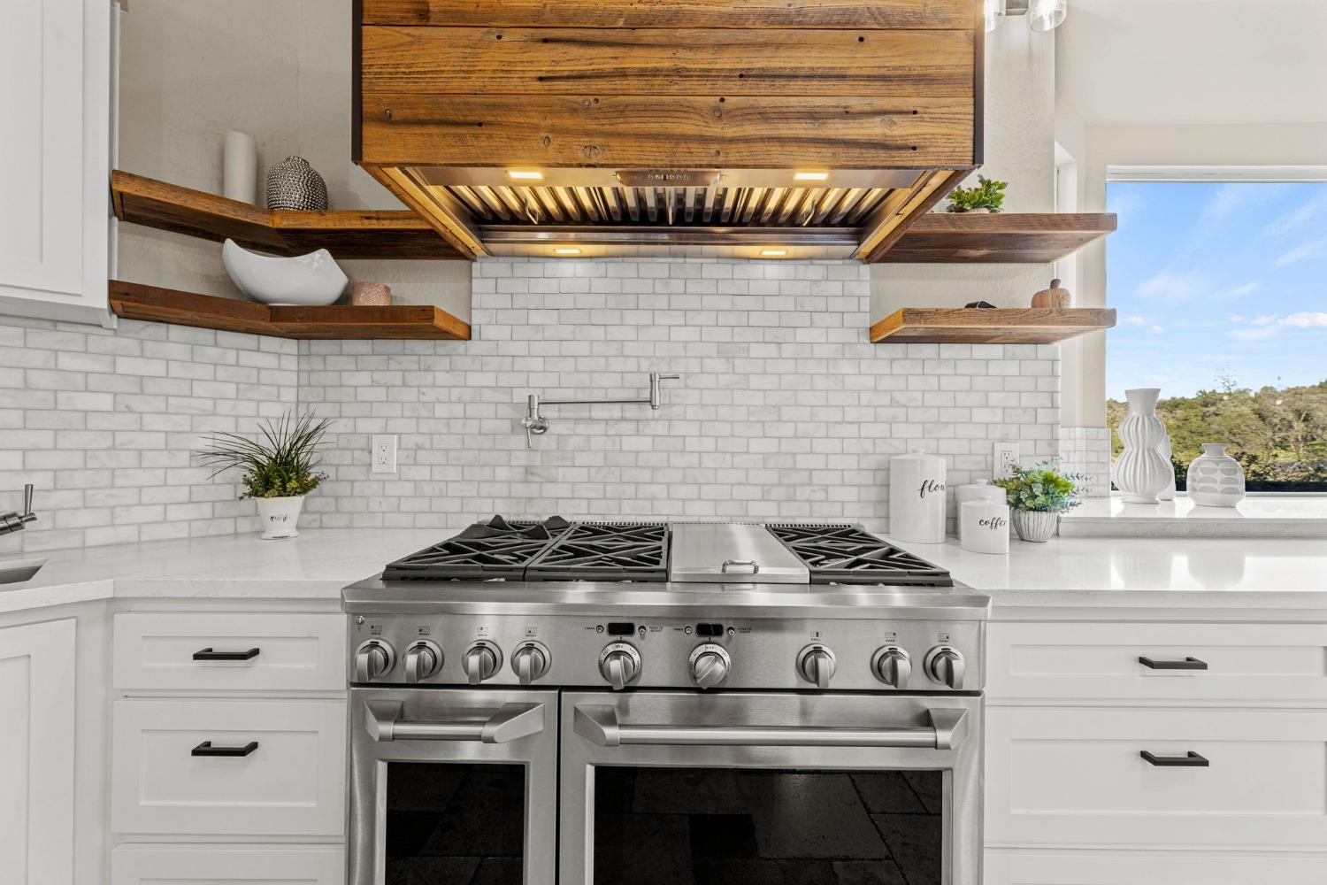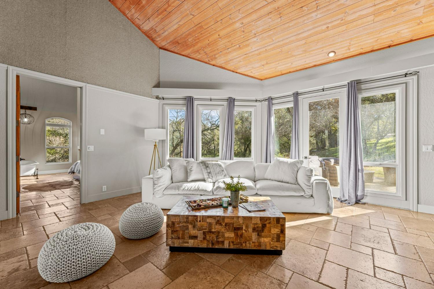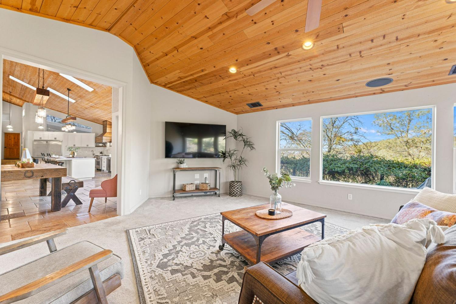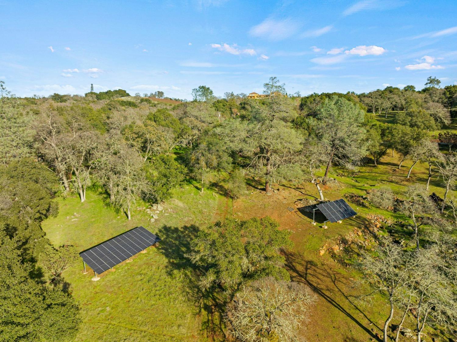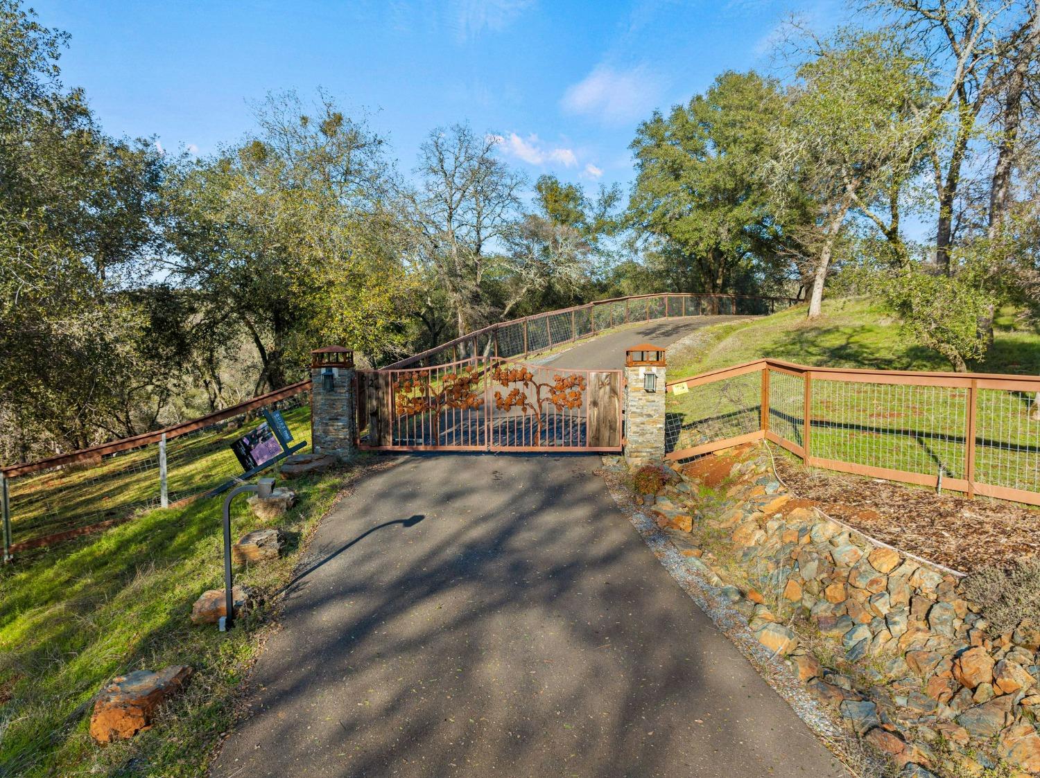 Welcome to this Stunning 5-bedroom, 3-bath Luxury Home situated on 10 acres in the coveted Cothrin Ranch of Shingle Springs. Breathtaking Foothill Views. Be captivated by the impressive chef's kitchen, complete with soaring pine ceilings, a Monogram 8-burner professional range, a 60 built-in fridge and gorgeous white quartz countertops. The main level features a spacious primary suite with a marble walk-in shower, dual vanities, and an abundance of natural light. Step outside to a multi-tiered patio overlooking a sparkling pool. Patio features a full outdoor kitchen, covered dining and lounge areas, outdoor shower with a separate pool bath, and a sunny lounge area. The property also includes a detached 2-car garage with a carport and full utilities. Fully fenced acreage and pasture, a deer-fenced garden, kids play area, and owned solar for energy efficiency. Several location options to build a second home on this expansive property. Don't miss this rare opportunity to own a truly exceptional estate in the heart of Shingle Springs.
