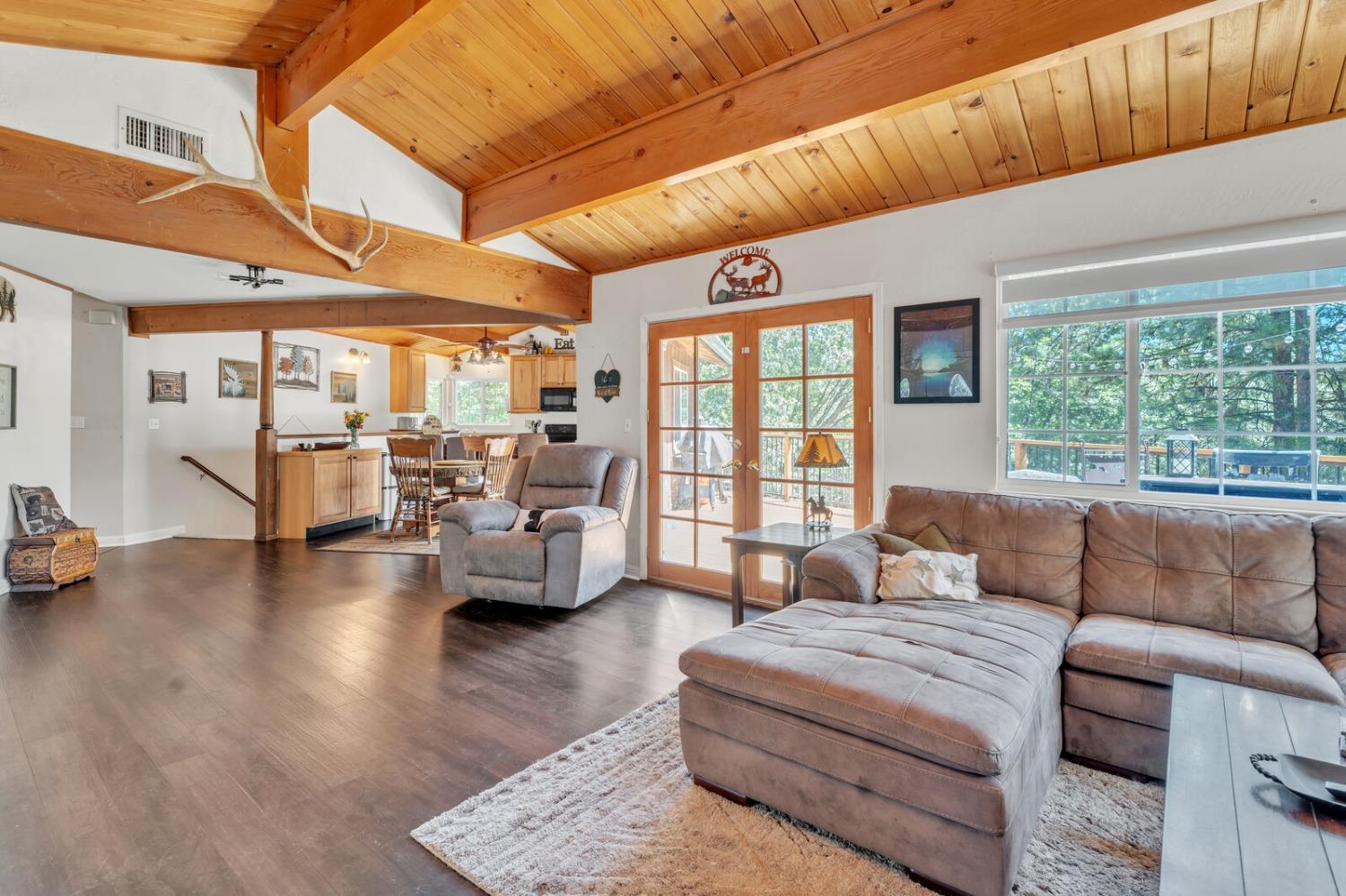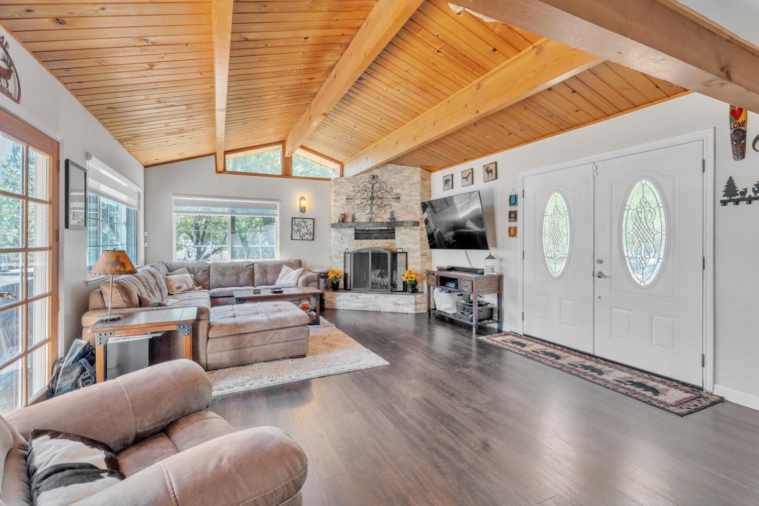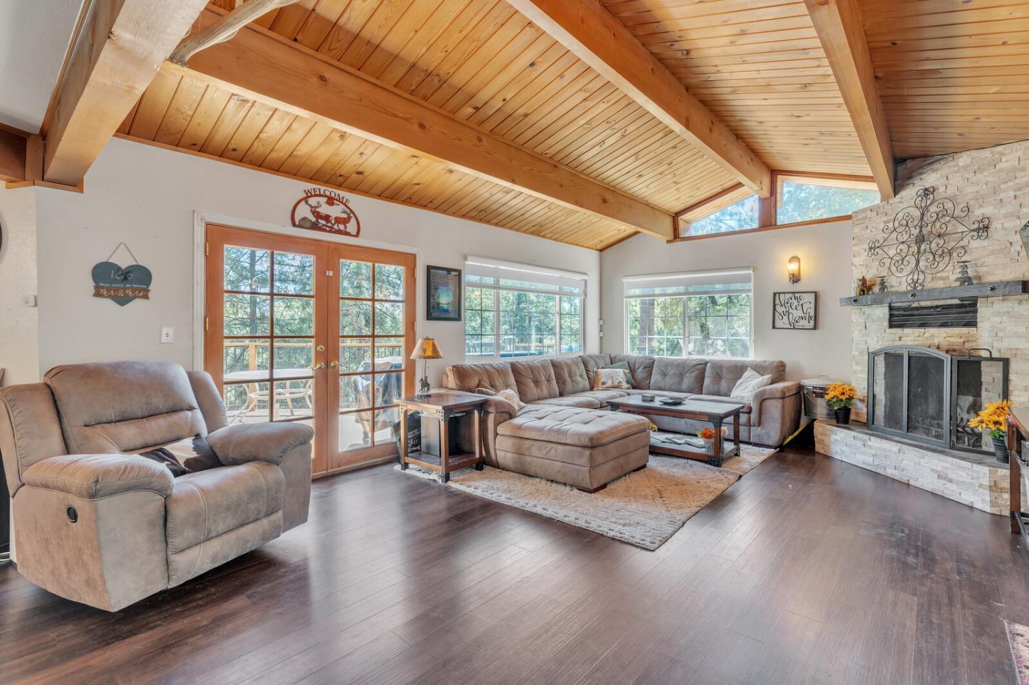 Discover your dream home in the heart of the charming Foresthill community! This beautifully updated four-bedroom, two-bathroom residence combines comfort, style, and the serenity of nature, offering the ideal retreat for families or those who love to entertain. As you arrive, you'll be embraced by the tranquil forest setting, perfectly complemented by the home's rustic yet inviting exterior. Step inside to an open-concept design seamlessly connecting the living, dining, and kitchen areas, creating a warm and welcoming space. The kitchen features stunning granite countertops, blending elegance with practicality in the heart of the home. The main level includes two versatile bedrooms and a full bathroom, perfect for guest rooms, home offices, or hobby spaces. Downstairs, you'll find two additional bedrooms, including a spacious primary with a cozy fireplace and direct access to the deck, where a private hot tub awaits your relaxation. With fresh paint and new carpeting throughout, this home is move-in ready. Don't miss your chance to own this delightful retreat, where natural beauty meets modern comfort in the picturesque Foresthill community!
