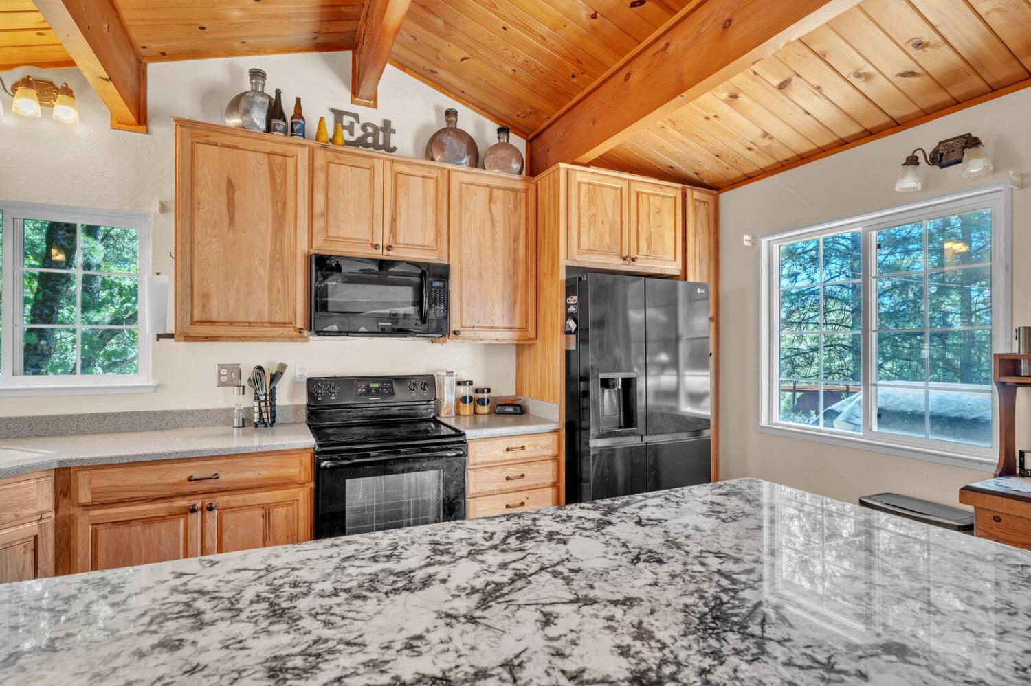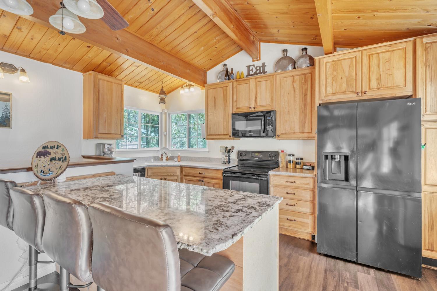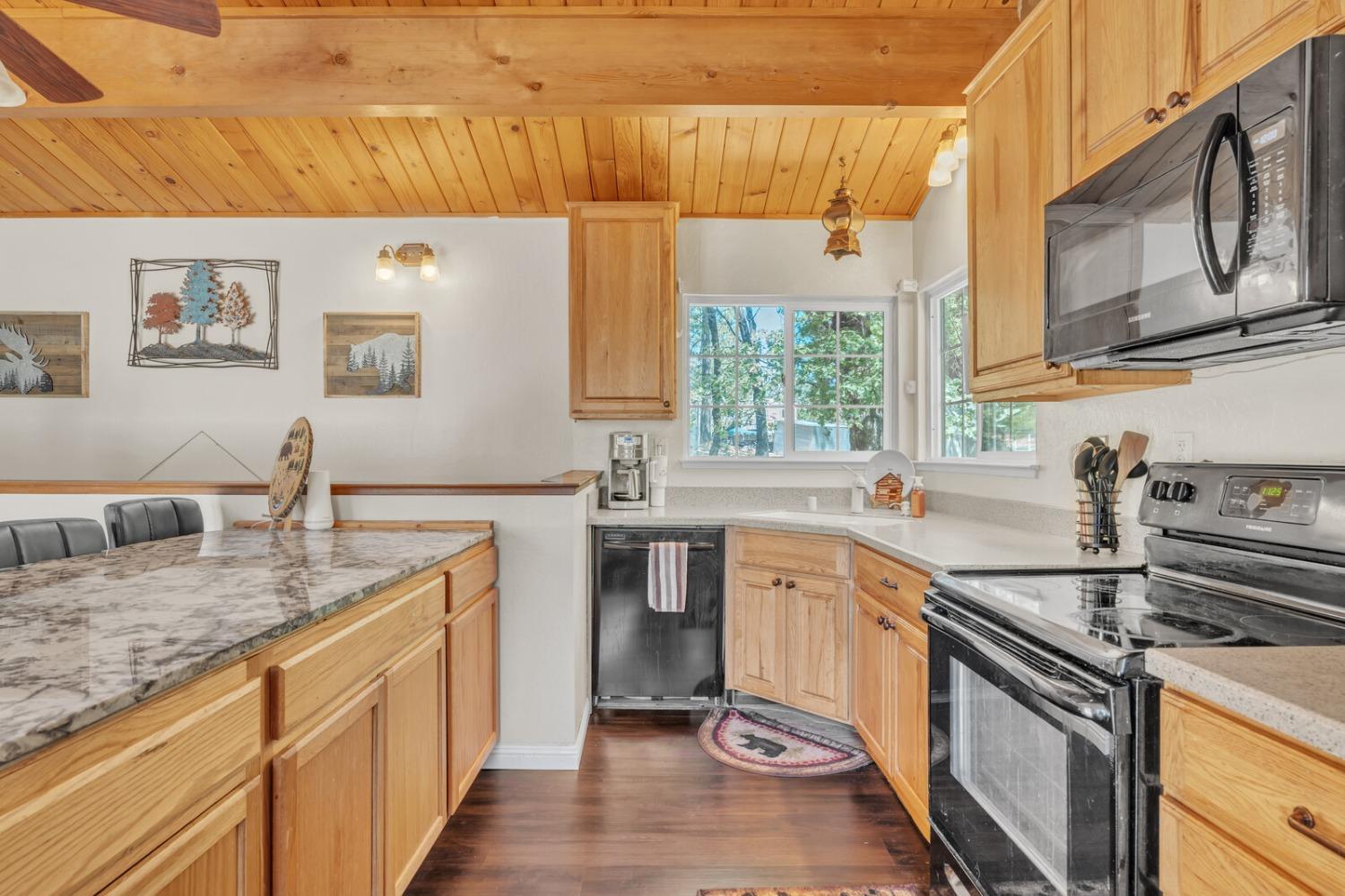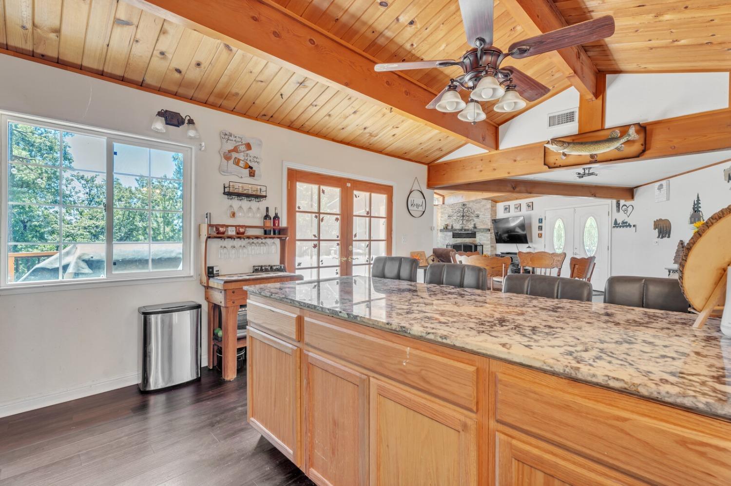 Discover your dream home in the heart of the charming Foresthill community! This beautifully updated four-bedroom, two-bathroom residence combines comfort, style, and the serenity of nature, offering the ideal retreat for families or those who love to entertain. As you arrive, you'll be embraced by the tranquil forest setting, perfectly complemented by the home's rustic yet inviting exterior. Step inside to an open-concept design seamlessly connecting the living, dining, and kitchen areas, creating a warm and welcoming space. The kitchen features stunning granite countertops, blending elegance with practicality in the heart of the home. The main level includes two versatile bedrooms and a full bathroom, perfect for guest rooms, home offices, or hobby spaces. Downstairs, you'll find two additional bedrooms, including a spacious primary with a cozy fireplace and direct access to the deck, where a private hot tub awaits your relaxation. With fresh paint and new carpeting throughout, this home is move-in ready. Don't miss your chance to own this delightful retreat, where natural beauty meets modern comfort in the picturesque Foresthill community!