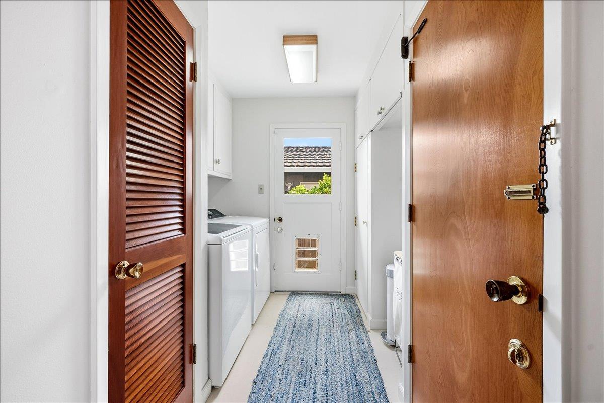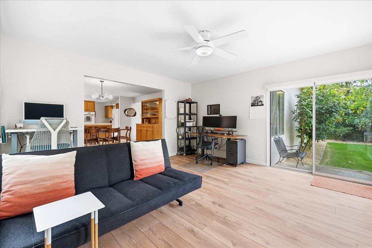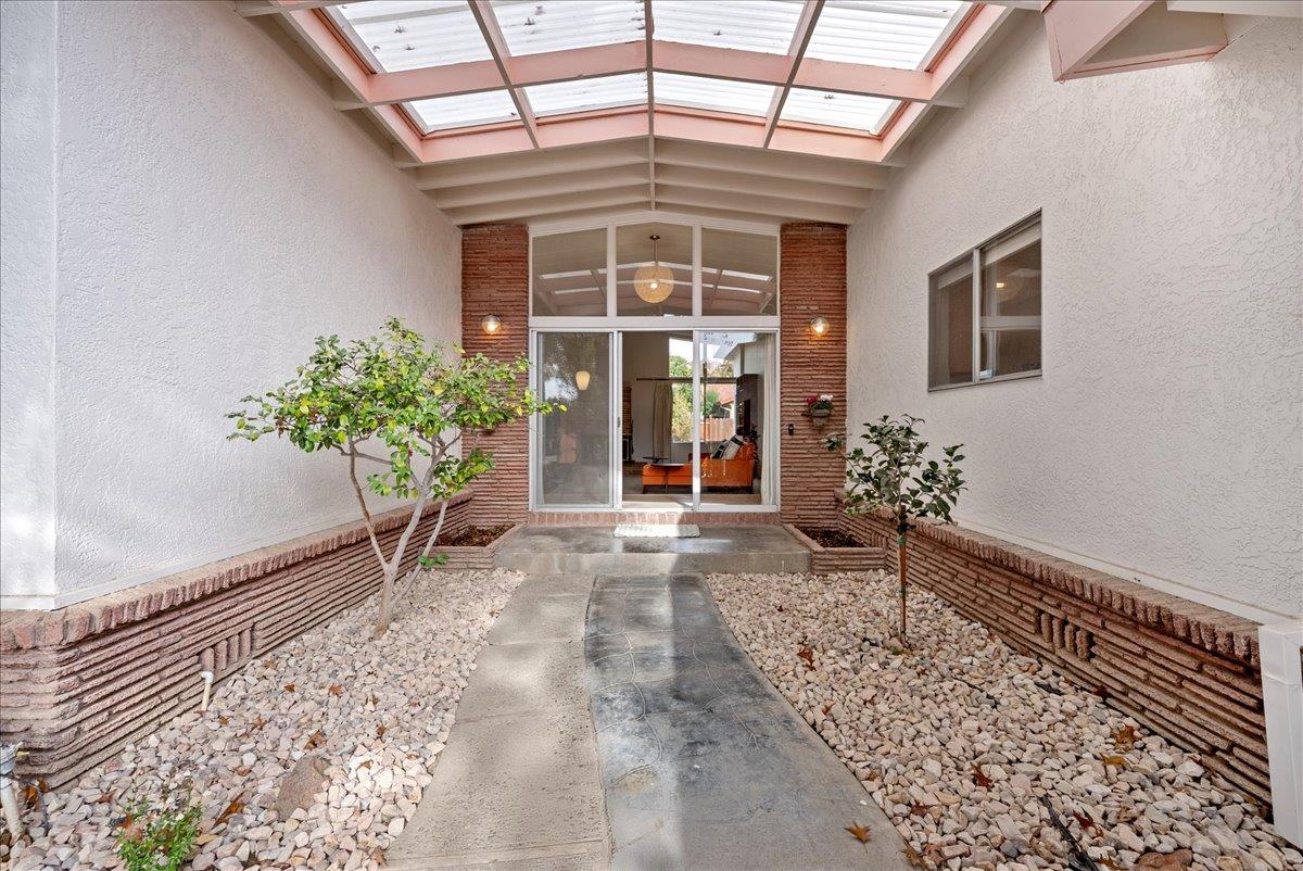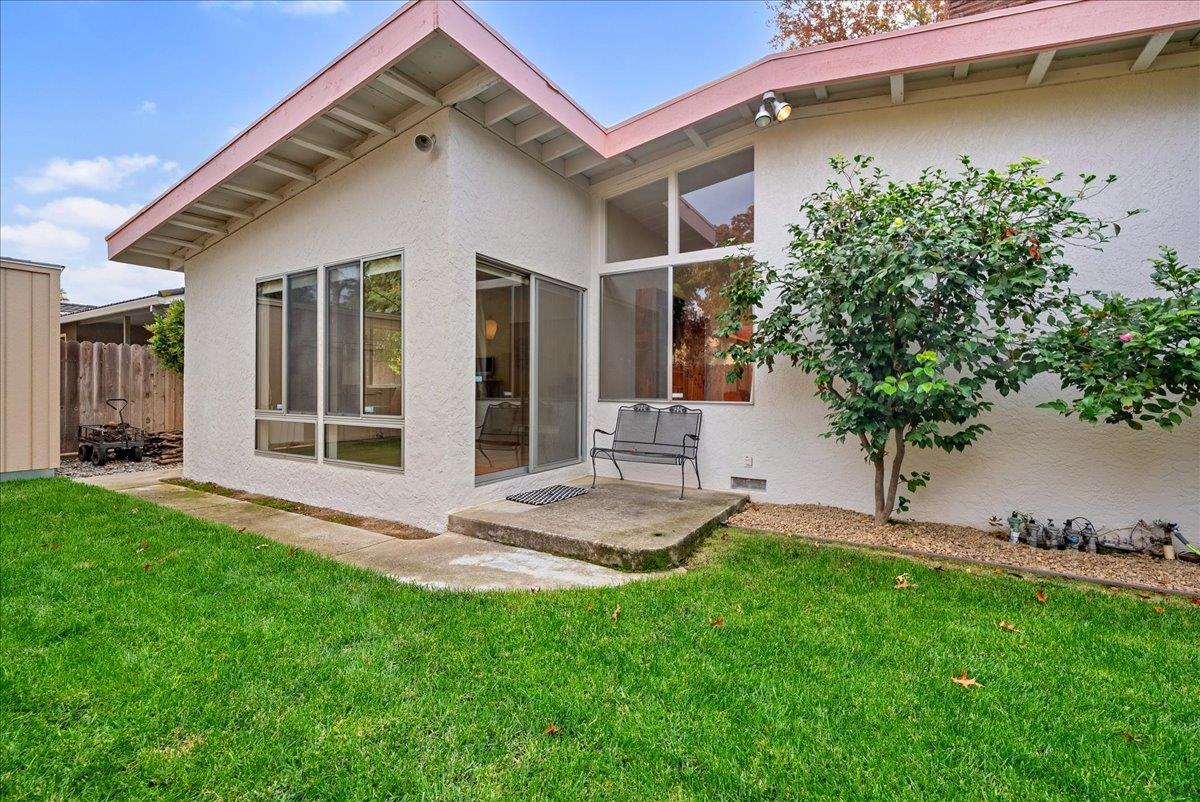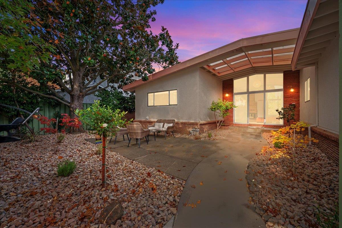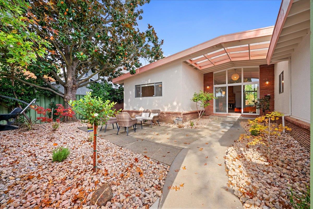 Designed by renowned mid-century modern architects R.L. Spore and M.F. White, this Greenhaven home embodies a treasured chapter of Sacramento's architectural story and the enduring desirability of true mid-century modern living. Thoughtfully updated to preserve its original character, the home showcases purposeful design choices from iconic light fixtures and switches to its clean, timeless lines. A private, shaded front courtyard with a magnolia tree sets the tone, leading to a dramatic entry framed by floor-to-ceiling windows that seamlessly blur the boundary between indoors and out. Inside, soaring ceilings and a classic brick fireplace define the living room, filled with natural light and lush backyard views. The den, or secondary living space, offers a cozy space to take in the outdoors. The primary suite provides a wall of closet space, hardwood floors, and leads to a tasteful ensuite bath kept true to its era. Updates include new TPO roof (2025), fresh exterior paint (2025), front fencing restored to preserve authenticity, and refreshed landscaping. Additional highlights include an updated hall shower, a large storage shed and yard spaces designed for year-round enjoyment. Parks, trails, the river, and downtown Sacramento are just minutes away! Come make this one yours!