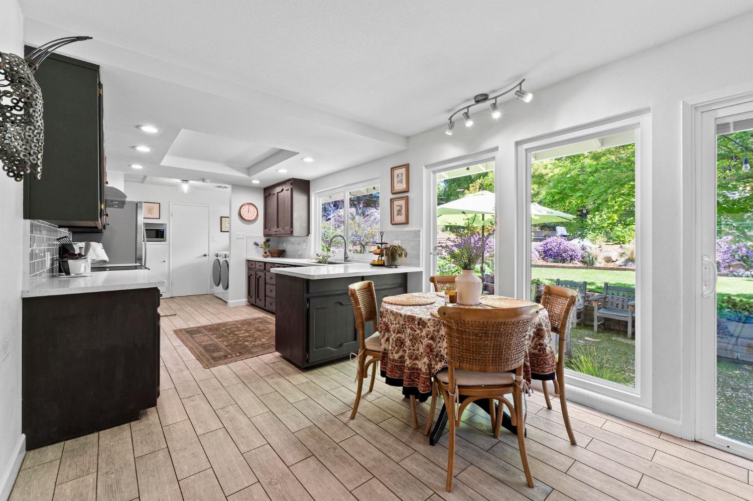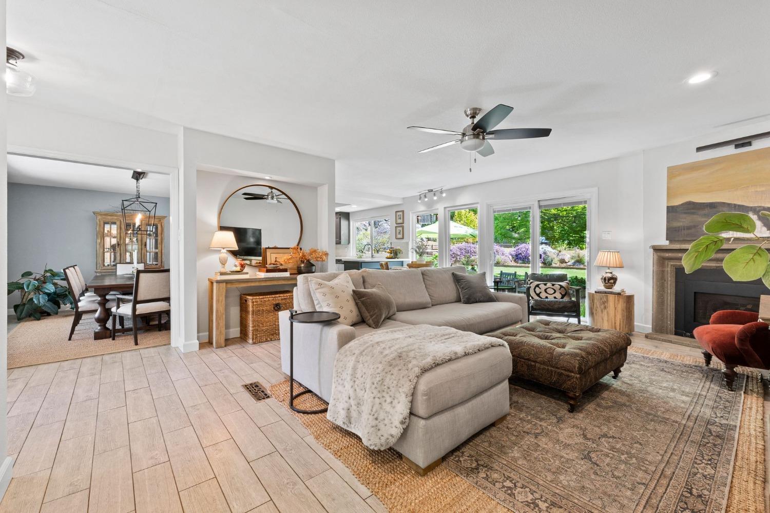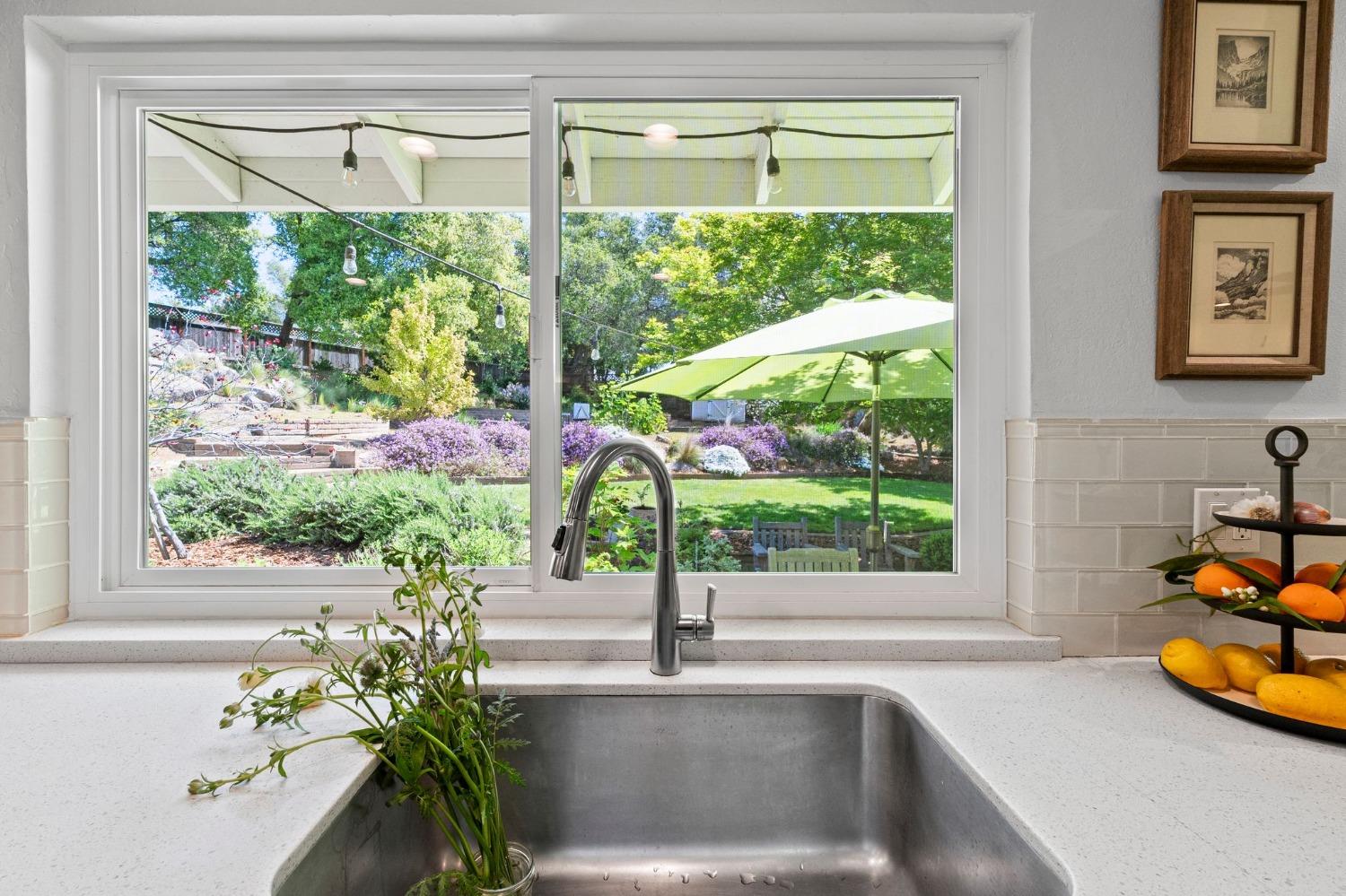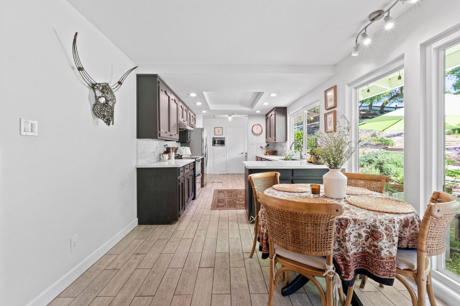 This single-story Granite Bay gem in the beloved Lakeview Hills neighborhood brings sophisticated ease and warm character to everyday living. Step into a home that feels like a scene from a Nancy Meyers movie where every morning starts with a French press of fresh coffee, bathed in soft, golden light. The open-concept kitchen and living room create a welcoming hub for daily life, with an eat-in kitchen space perfect for casual meals and gathering. Just off the main living area is a formal dining room that can also serve as an additional office, playroom, or creative space. A walk-in pantry and separate laundry room are tucked conveniently past the kitchen. Down the hallway, you'll find all three bedrooms and two full bathrooms. The spacious primary suite features French doors that open to a private office. The nearly 0.8-acre lot feels like a private park with mature trees, granite outcroppings, citrus, blooming flowers, and a lovely back patio. Additional features include a whole house fan, solar, new windows, and a large garage with ample storage. Residents of Lakeview Hills enjoy access to a clubhouse, lake, playground, hiking trails, and direct access to Folsom Lake.
