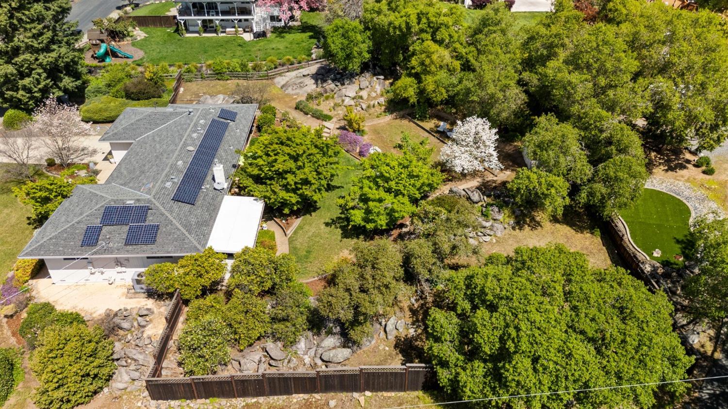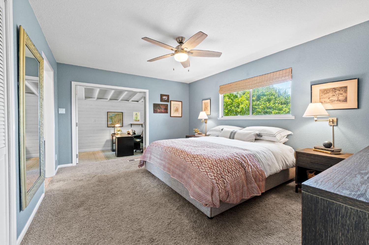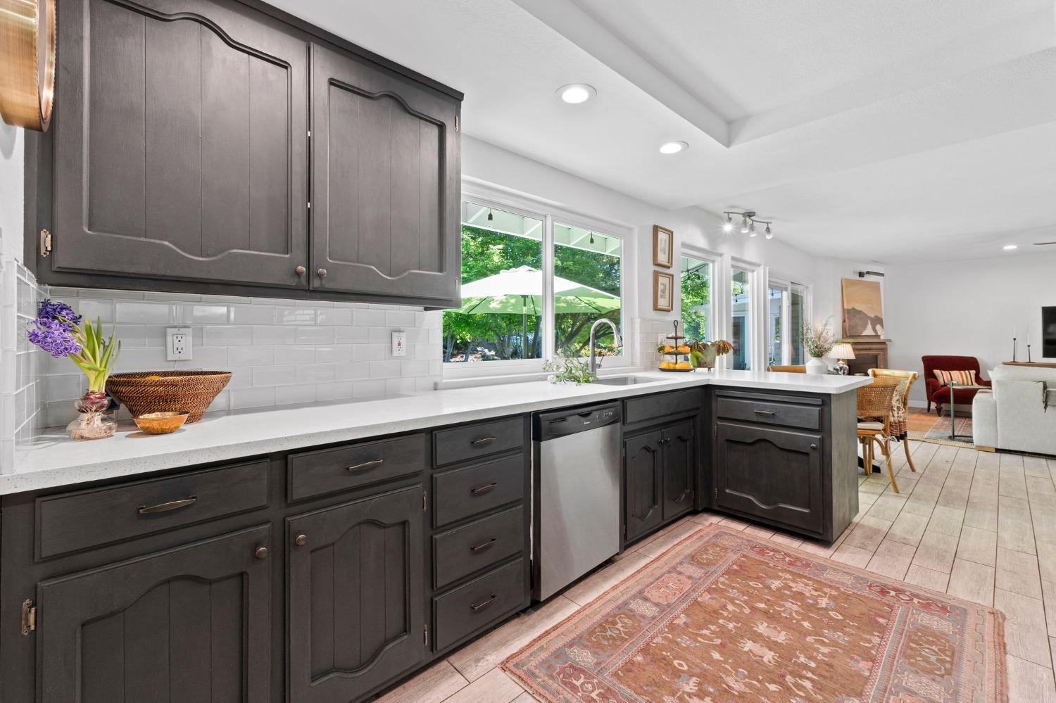This single-story Granite Bay gem in the beloved Lakeview Hills neighborhood brings sophisticated ease and warm character to everyday living. Step into a home that feels like a scene from a Nancy Meyers movie where every morning starts with a French press of fresh coffee, bathed in soft, golden light. The open-concept kitchen and living room create a welcoming hub for daily life, with an eat-in kitchen space perfect for casual meals and gathering. Just off the main living area is a formal dining room that can also serve as an additional office, playroom, or creative space. A walk-in pantry and separate laundry room are tucked conveniently past the kitchen. Down the hallway, you'll find all three bedrooms and two full bathrooms. The spacious primary suite features French doors that open to a private office. The nearly 0.8-acre lot feels like a private park with mature trees, granite outcroppings, citrus, blooming flowers, and a lovely back patio. Additional features include a whole house fan, solar, new windows, and a large garage with ample storage. Residents of Lakeview Hills enjoy access to a clubhouse, lake, playground, hiking trails, and direct access to Folsom Lake.
