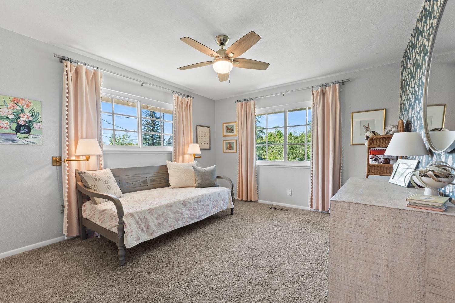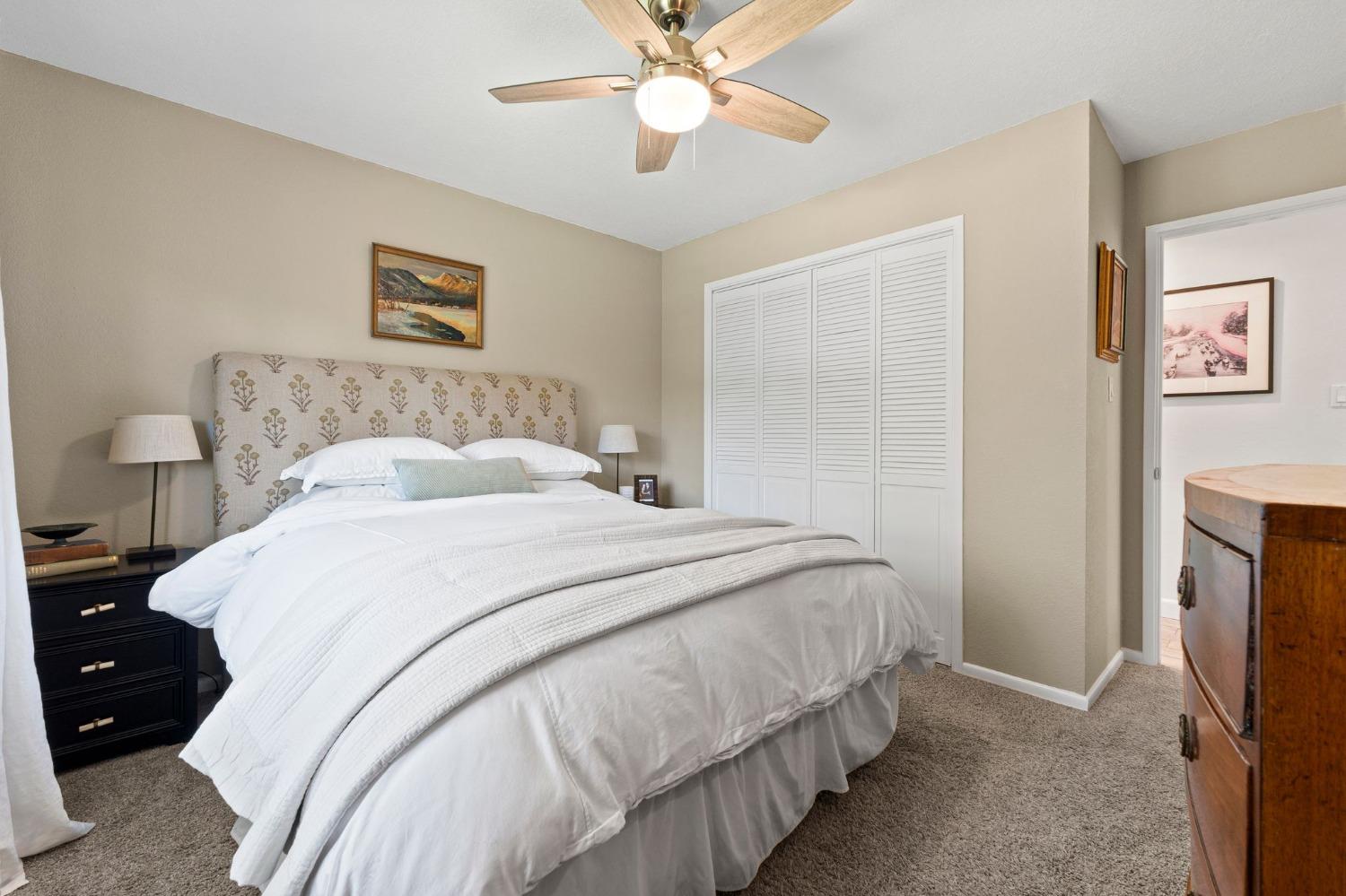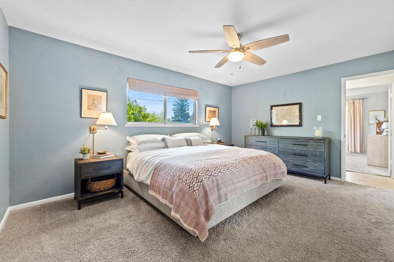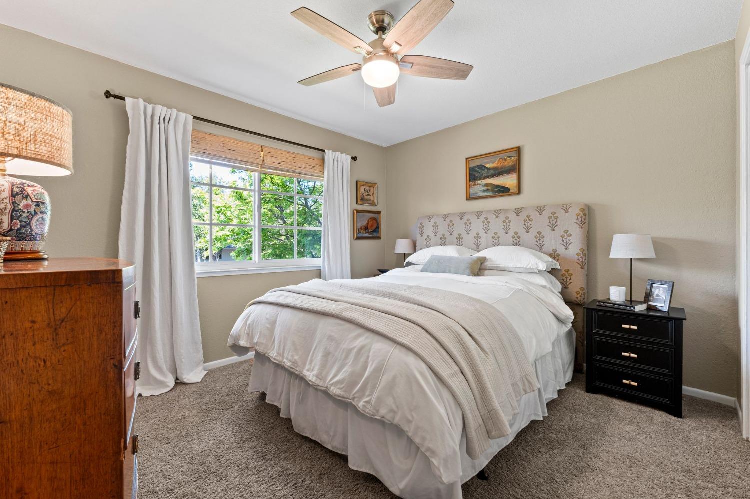 This single-story Granite Bay gem in the beloved Lakeview Hills neighborhood brings sophisticated ease and warm character to everyday living. Step into a home that feels like a scene from a Nancy Meyers movie where every morning starts with a French press of fresh coffee, bathed in soft, golden light. The open-concept kitchen and living room create a welcoming hub for daily life, with an eat-in kitchen space perfect for casual meals and gathering. Just off the main living area is a formal dining room that can also serve as an additional office, playroom, or creative space. A walk-in pantry and separate laundry room are tucked conveniently past the kitchen. Down the hallway, you'll find all three bedrooms and two full bathrooms. The spacious primary suite features French doors that open to a private office. The nearly 0.8-acre lot feels like a private park with mature trees, granite outcroppings, citrus, blooming flowers, and a lovely back patio. Additional features include a whole house fan, solar, new windows, and a large garage with ample storage. Residents of Lakeview Hills enjoy access to a clubhouse, lake, playground, hiking trails, and direct access to Folsom Lake.