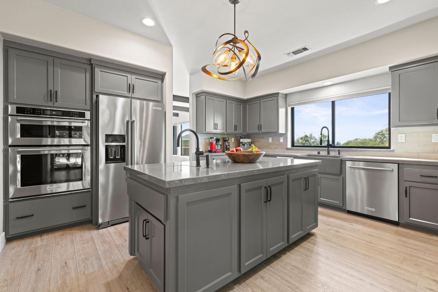 Think you don't need acreage but still crave privacy & views? Think again. This beautifully remodeled 4-bedroom, 3.5-bath Newcastle retreat offers the best of both worldsnearly 7 acres of land, with about 2 acres of landscaped, usable space surrounding the home & the rest left natural. Designed for entertaining and everyday living, the living room features a wood-burning fireplace & built-in bar, flowing seamlessly into the family room, formal dining, & chef's kitchen. The kitchen is complete with stainless steel appliances, large prep island, walk-in pantry, wine fridge, & adjacent laundry room. The private bedroom wing includes 3 guest rooms (one en-suite) & a luxurious primary suite with its own fireplace, spa-like bath with heated floors, view-framing walk-in shower, & a custom closet. Step outside to your own landscaped oasis with an infinity pool, modern cabana, & year-round comfort via a heater/chiller system. Raised garden beds, lawn, & additional amenities like a 3-car insulated garage with epoxy floors & mini-split, 2 storage sheds, a dog kennel, & RV parking offer the ultimate in functionality. Located in the Del Oro School District. Smart home features include WiFi-controlled pool equipment, automated lighting, dual water sources (NID & well), & generator readiness.