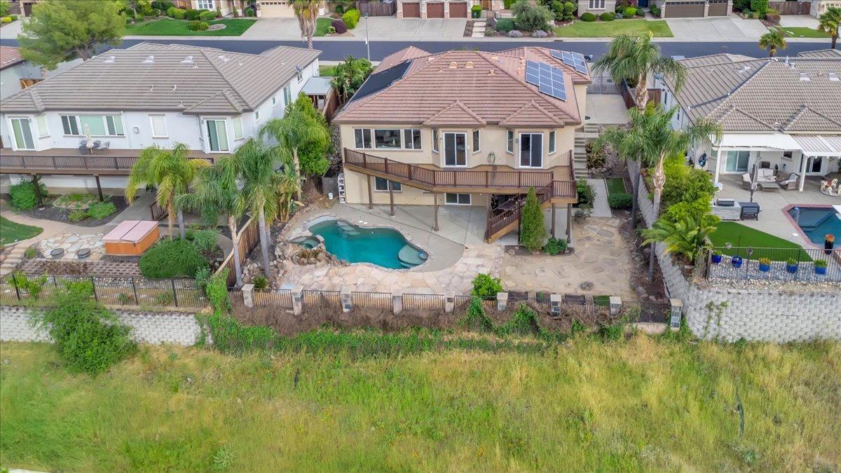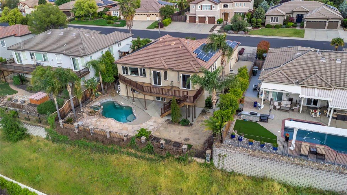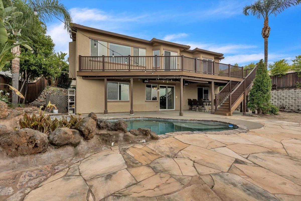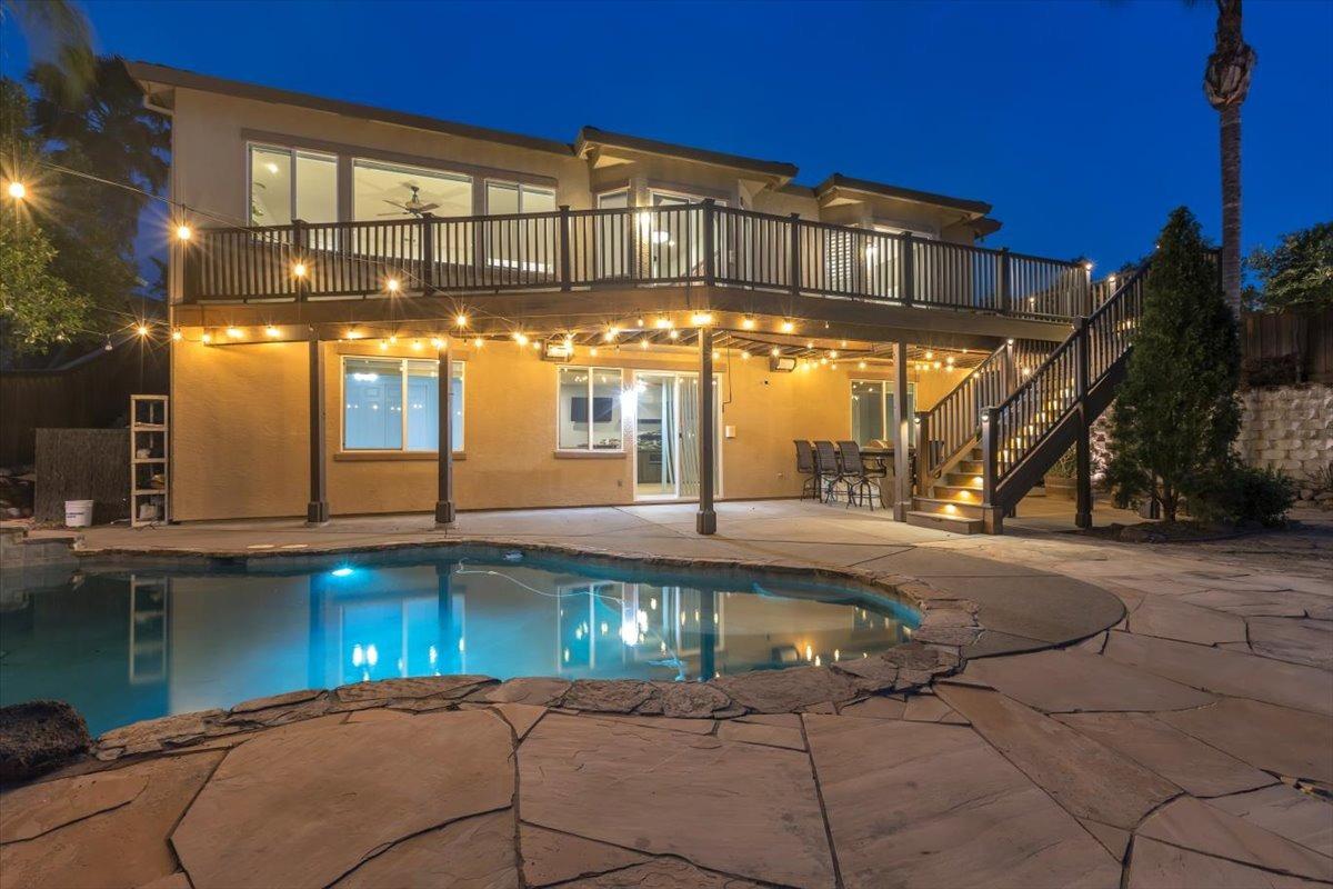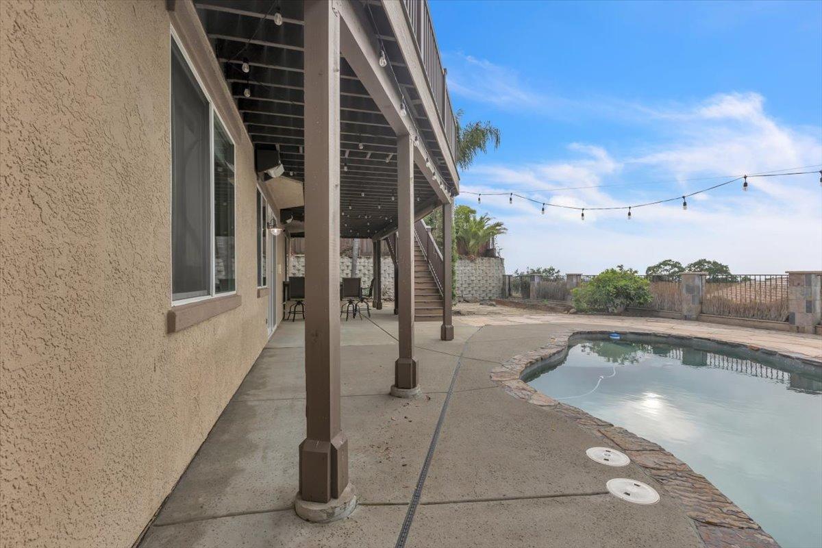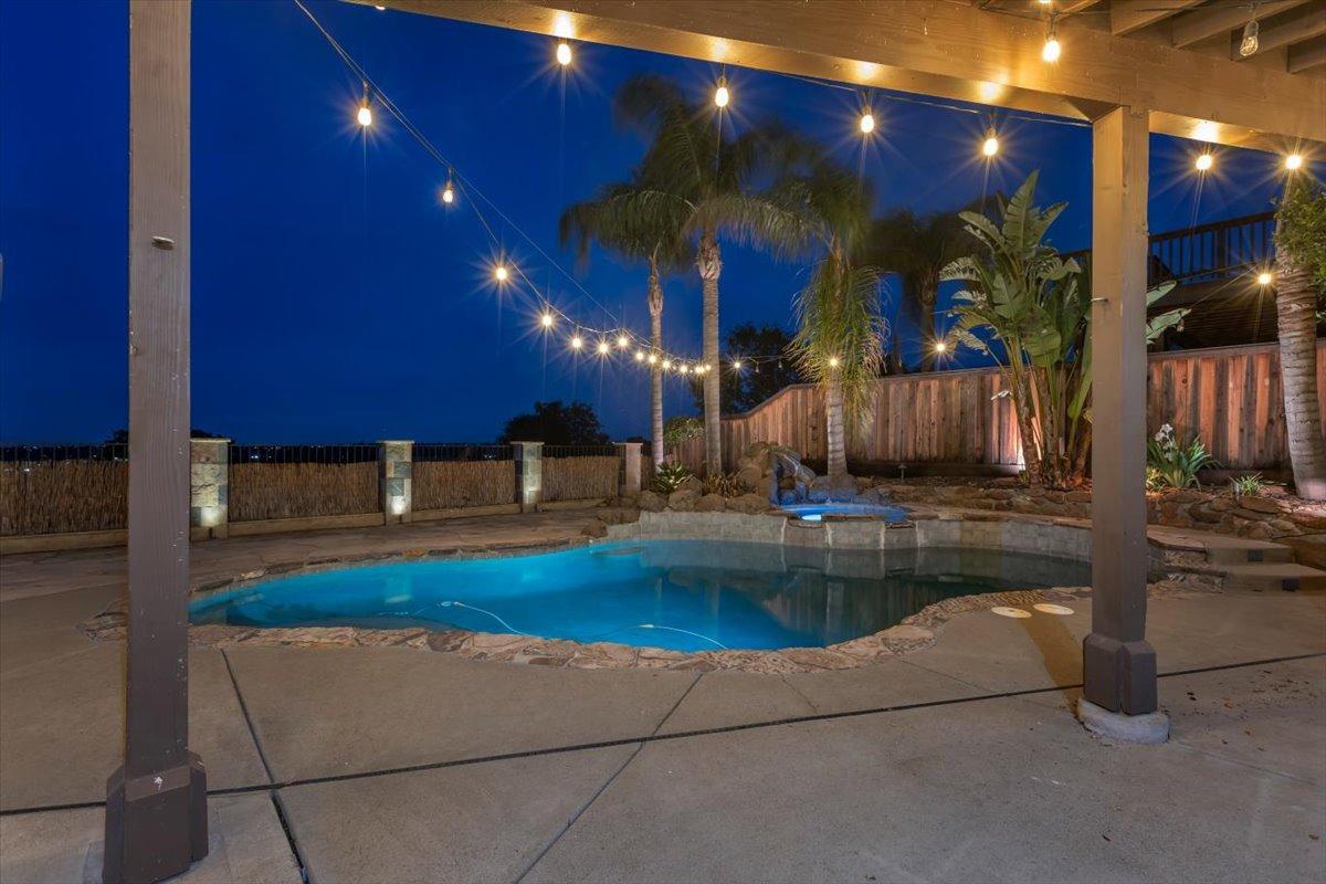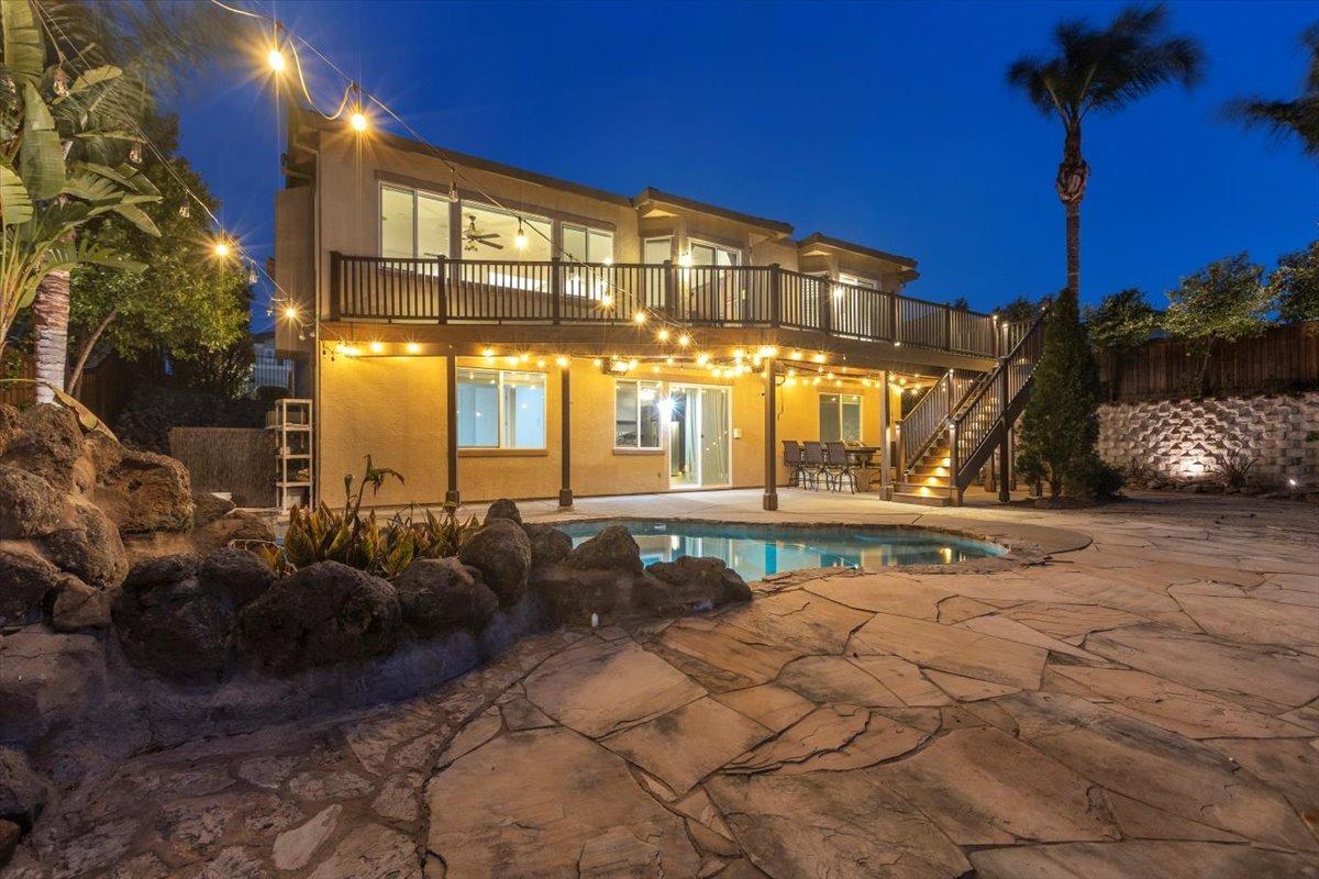 Welcome to your own private retreat! This 5-bedroom, 3-bath home sits atop a hill, offering beautiful sunset views and an indoor-outdoor lifestyle perfect for entertaining with owned solar. The main level features a spacious kitchen with granite countertops, large kitchen island, and additional prep area. Here you will also three bedrooms, including the luxurious primary suite with private deck access and radiant bathroom floors. Downstairs, you'll find two additional guest bedrooms, a full bath, and a game room with bar-style finishescomplete with a second fridge and dishwasher for easy entertaining with poolside access. Step outside to your backyard oasis featuring a sparkling pool and spa combo, built-in BBQ with outdoor fridge, and plenty of space to relax and unwind. Whether you're hosting or just enjoying a quiet evening, this home offers the ideal blend of comfort, style, and elevated living with a view you have to see for yourself!