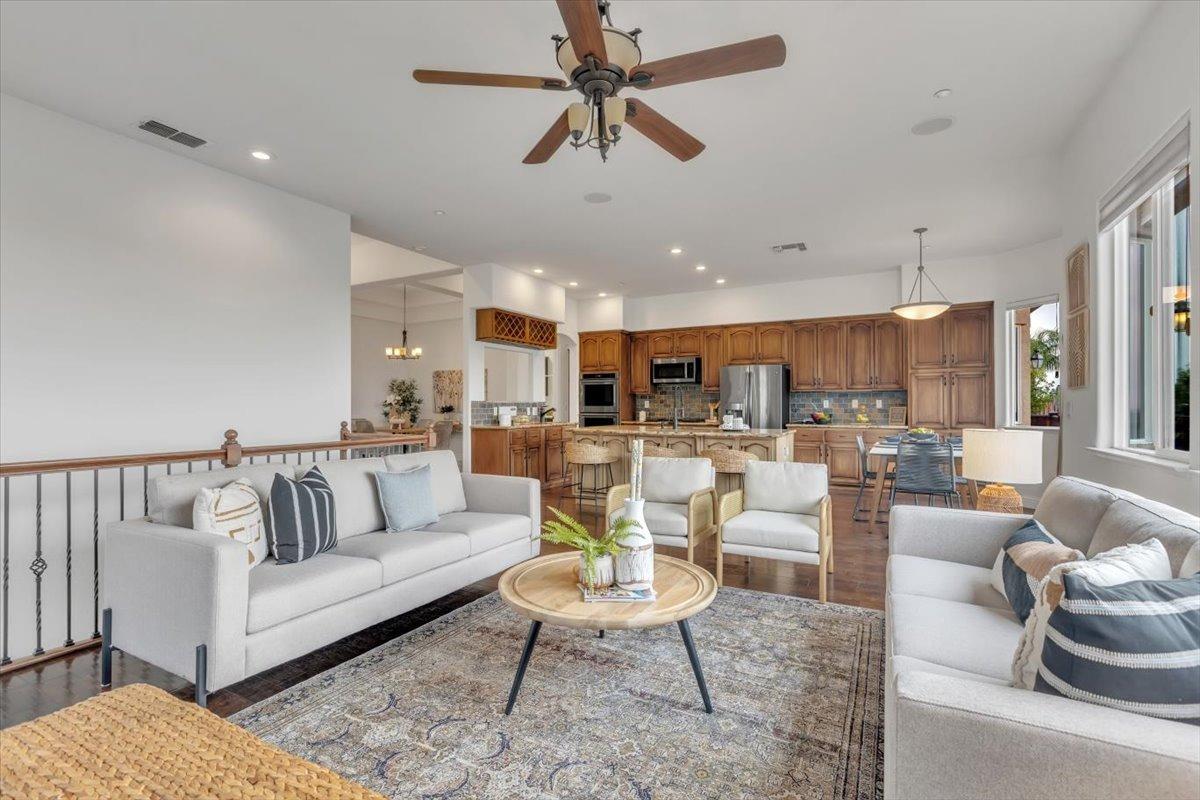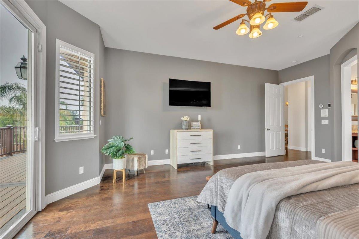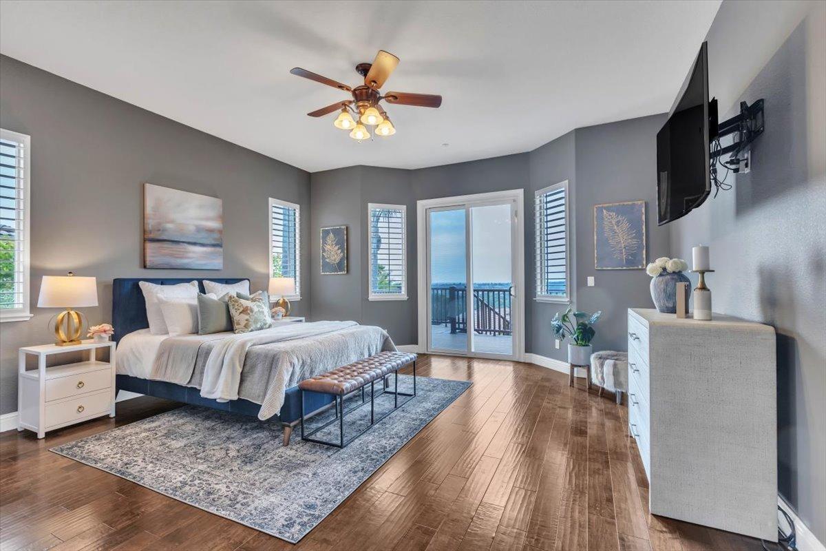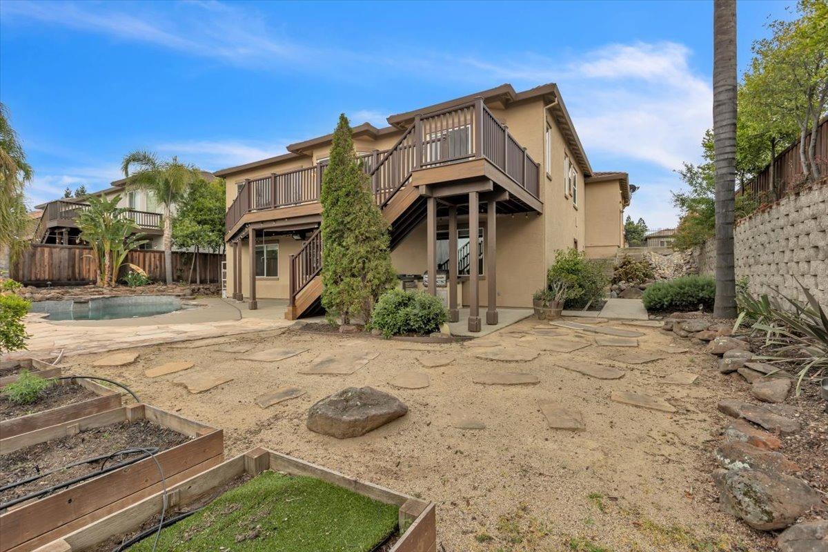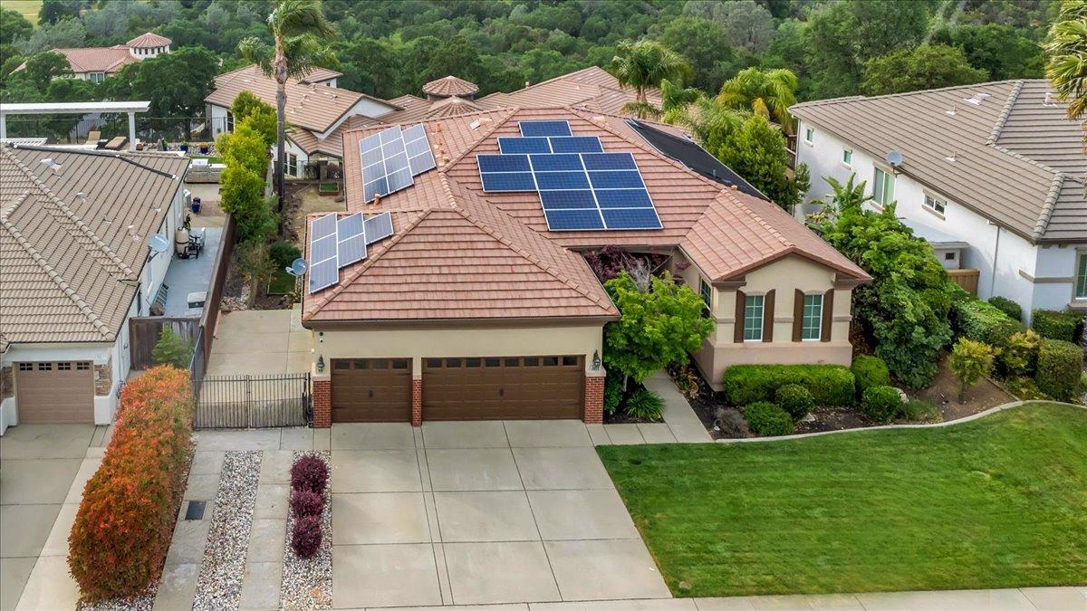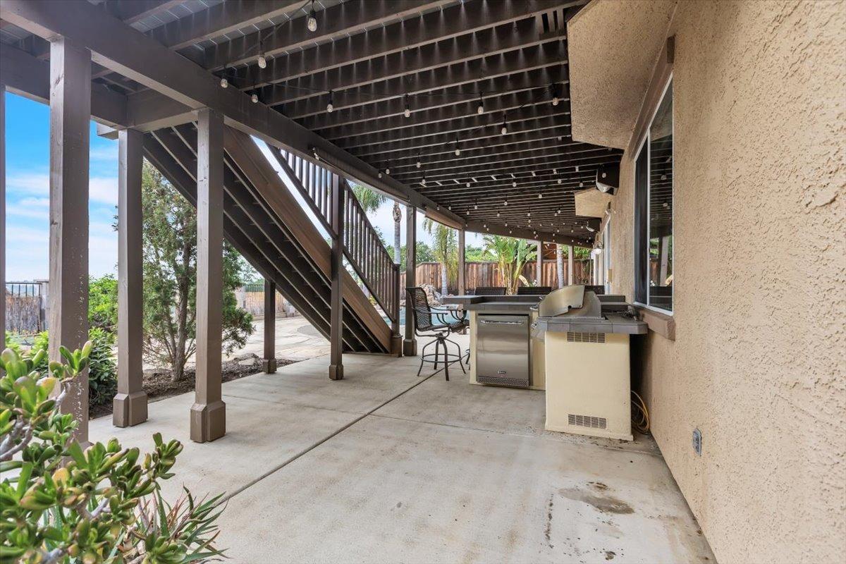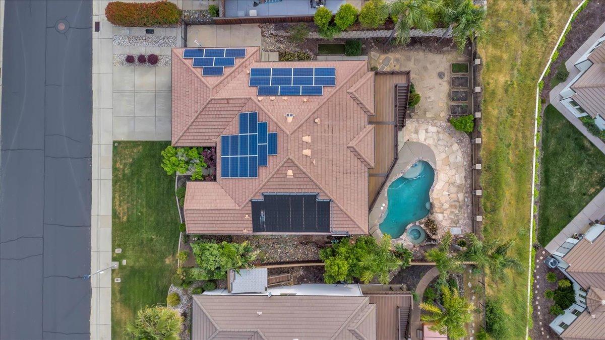 Welcome to your own private retreat! This 5-bedroom, 3-bath home sits atop a hill, offering beautiful sunset views and an indoor-outdoor lifestyle perfect for entertaining with owned solar. The main level features a spacious kitchen with granite countertops, large kitchen island, and additional prep area. Here you will also three bedrooms, including the luxurious primary suite with private deck access and radiant bathroom floors. Downstairs, you'll find two additional guest bedrooms, a full bath, and a game room with bar-style finishescomplete with a second fridge and dishwasher for easy entertaining with poolside access. Step outside to your backyard oasis featuring a sparkling pool and spa combo, built-in BBQ with outdoor fridge, and plenty of space to relax and unwind. Whether you're hosting or just enjoying a quiet evening, this home offers the ideal blend of comfort, style, and elevated living with a view you have to see for yourself!