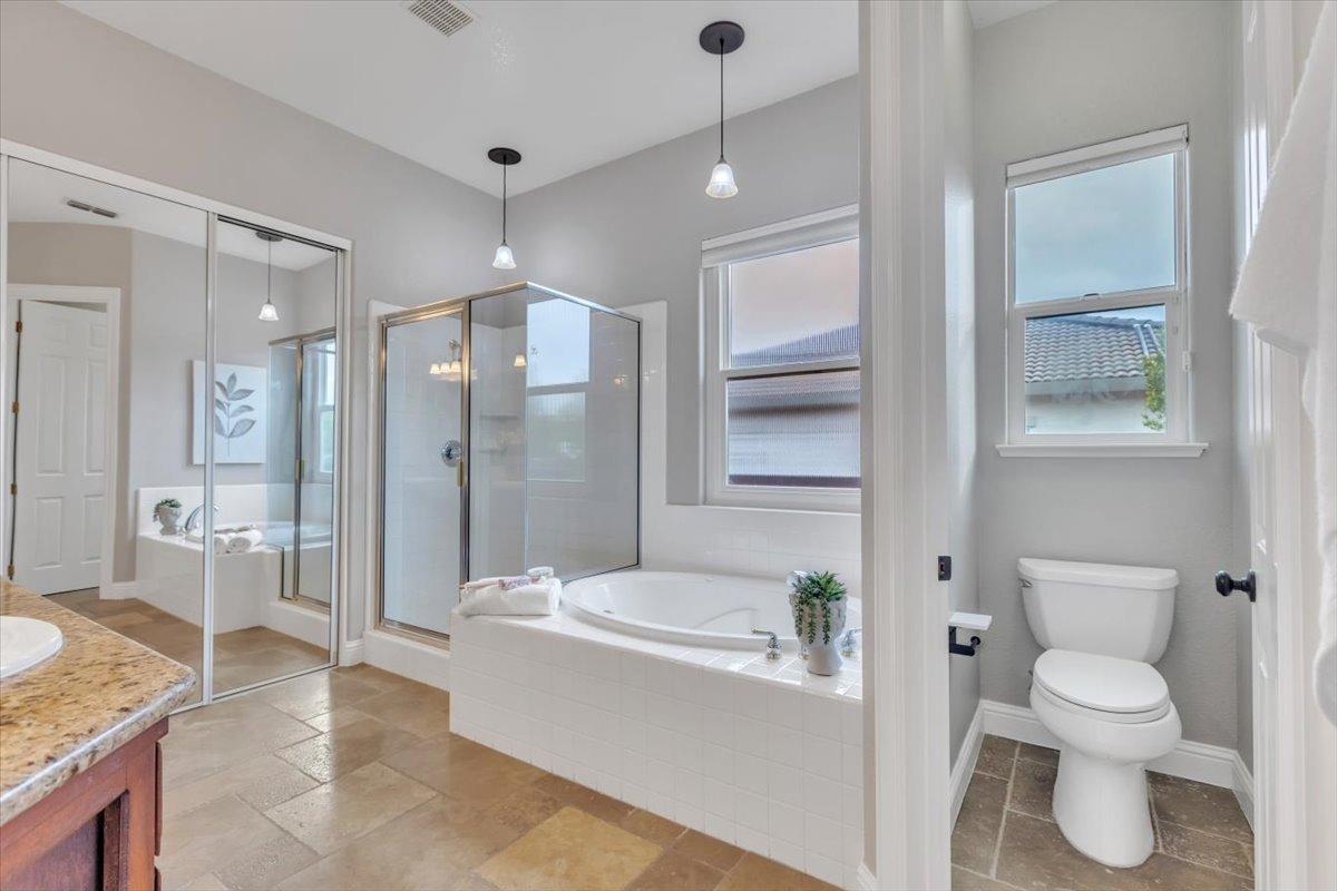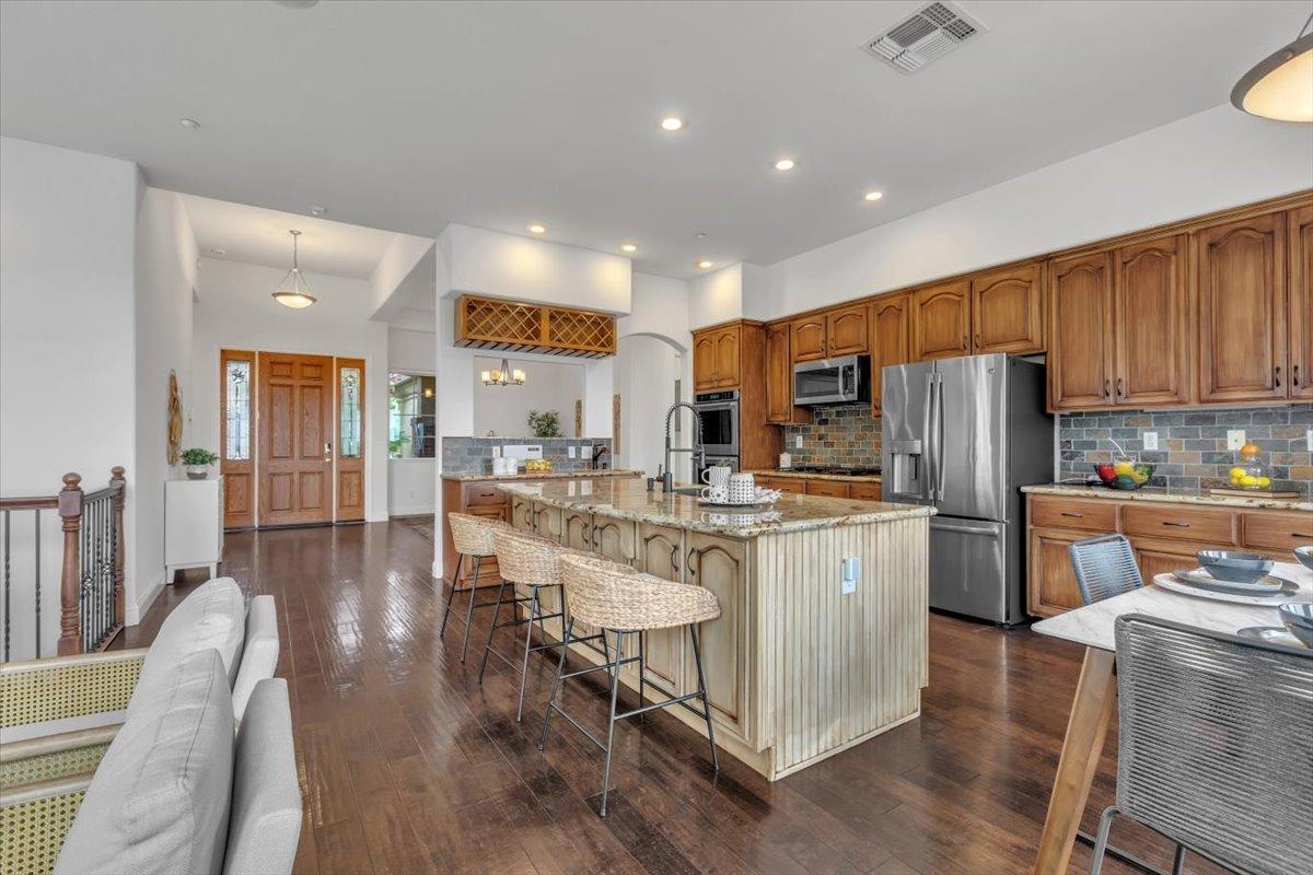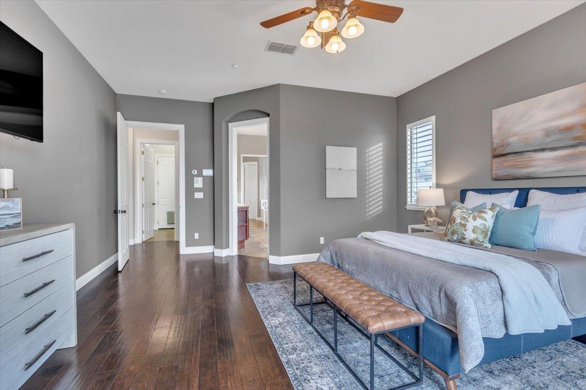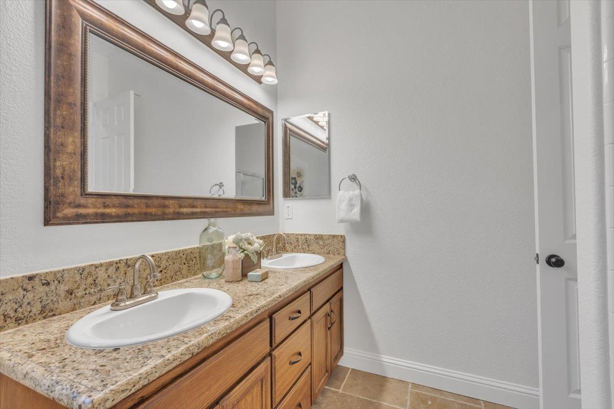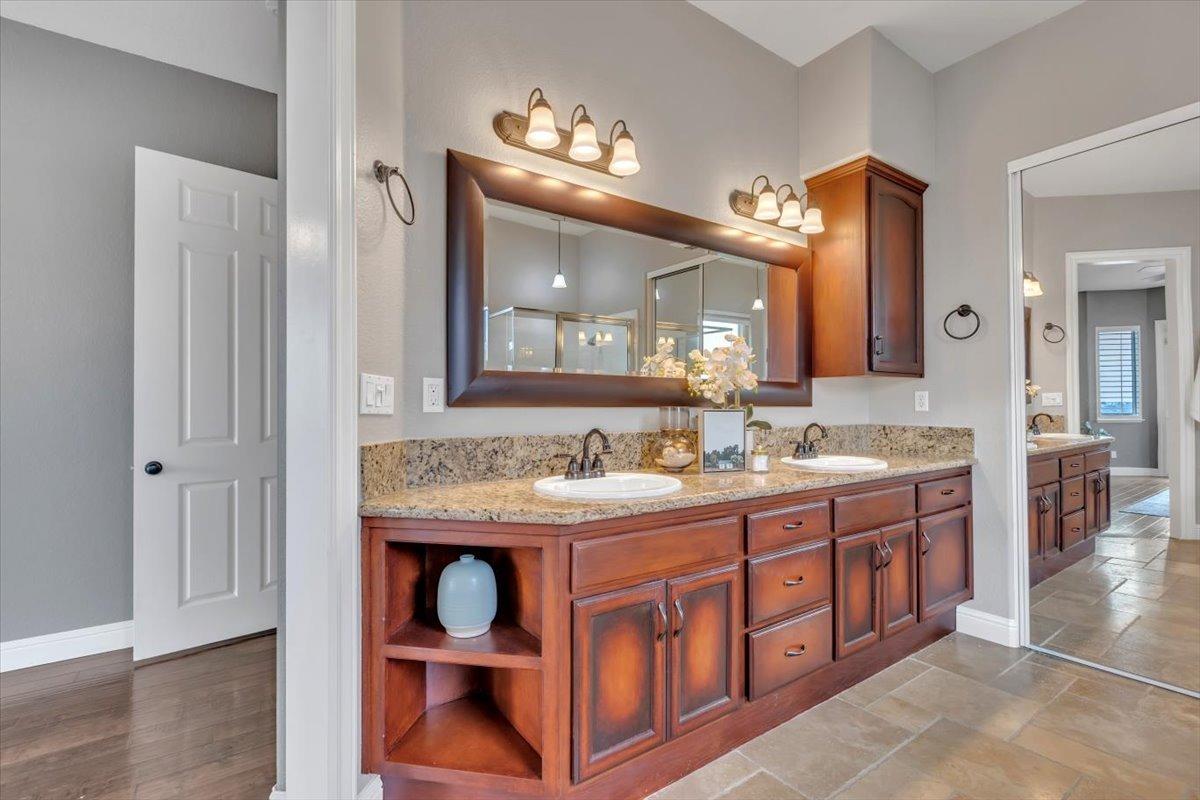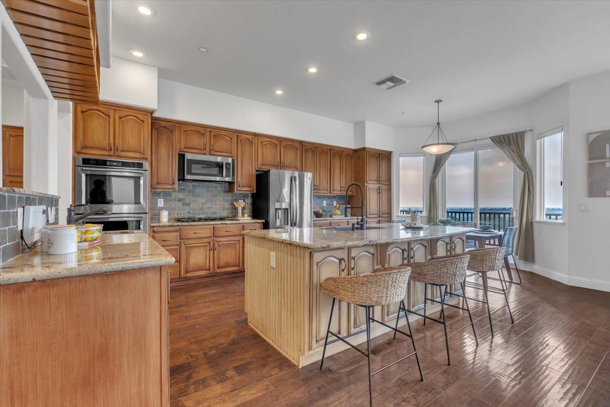 Welcome to your own private retreat! This 5-bedroom, 3-bath home sits atop a hill, offering beautiful sunset views and an indoor-outdoor lifestyle perfect for entertaining with owned solar. The main level features a spacious kitchen with granite countertops, large kitchen island, and additional prep area. Here you will also three bedrooms, including the luxurious primary suite with private deck access and radiant bathroom floors. Downstairs, you'll find two additional guest bedrooms, a full bath, and a game room with bar-style finishescomplete with a second fridge and dishwasher for easy entertaining with poolside access. Step outside to your backyard oasis featuring a sparkling pool and spa combo, built-in BBQ with outdoor fridge, and plenty of space to relax and unwind. Whether you're hosting or just enjoying a quiet evening, this home offers the ideal blend of comfort, style, and elevated living with a view you have to see for yourself!
