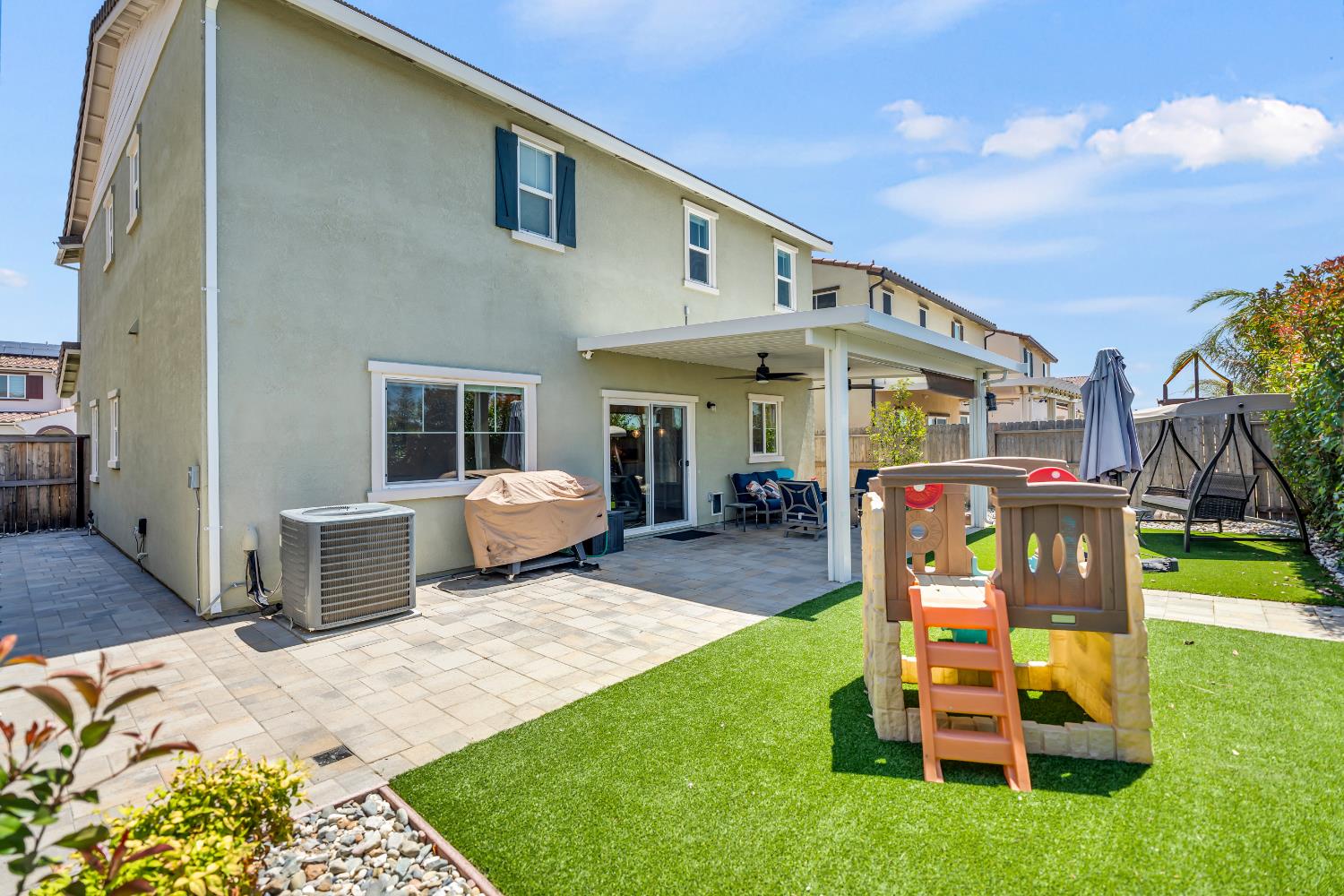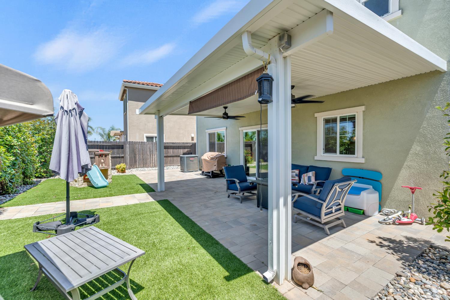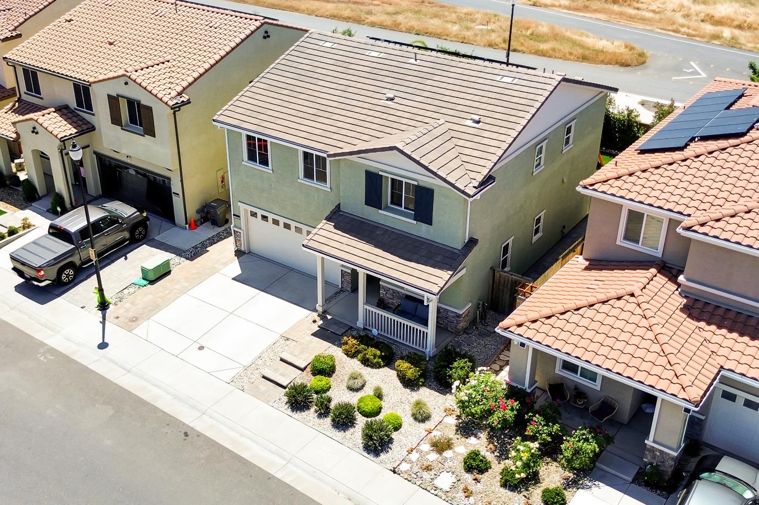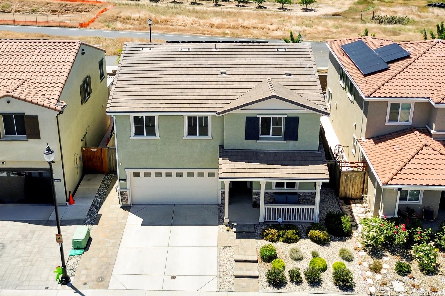 Welcome to this beautifully maintained Charles model by K. Hovnanian, located in the highly desirable Solaire community of West Roseville. Backing to open farmland, this home offers a peaceful backyard retreat with added privacy perfect for quiet evenings or entertaining. Inside, you'll find a bright and open floor plan that flows effortlessly from the spacious living area to the stunning kitchen. Enjoy cooking and gathering around the large island, complete with elegant quartz countertops, and appreciate the stylish grey-toned interior paint and luxury vinyl plank flooring throughout. The professionally installed pavers in both the front walkway and backyard add a polished touch, while the covered patio with ceiling fans creates a great space for outdoor living. A downstairs bedroom and full bath provide comfort and flexibilityideal for guests or multi-generational living. Energy efficiency is a plus with solar panels and utilities powered by Roseville Electric, helping keep monthly costs low. Conveniently located near local favorites like Kitchen 747 and MoJoe's Coffee, plus the newest Safeway in the area and the upcoming Costco shopping center, you'll have everything you need just minutes away.
