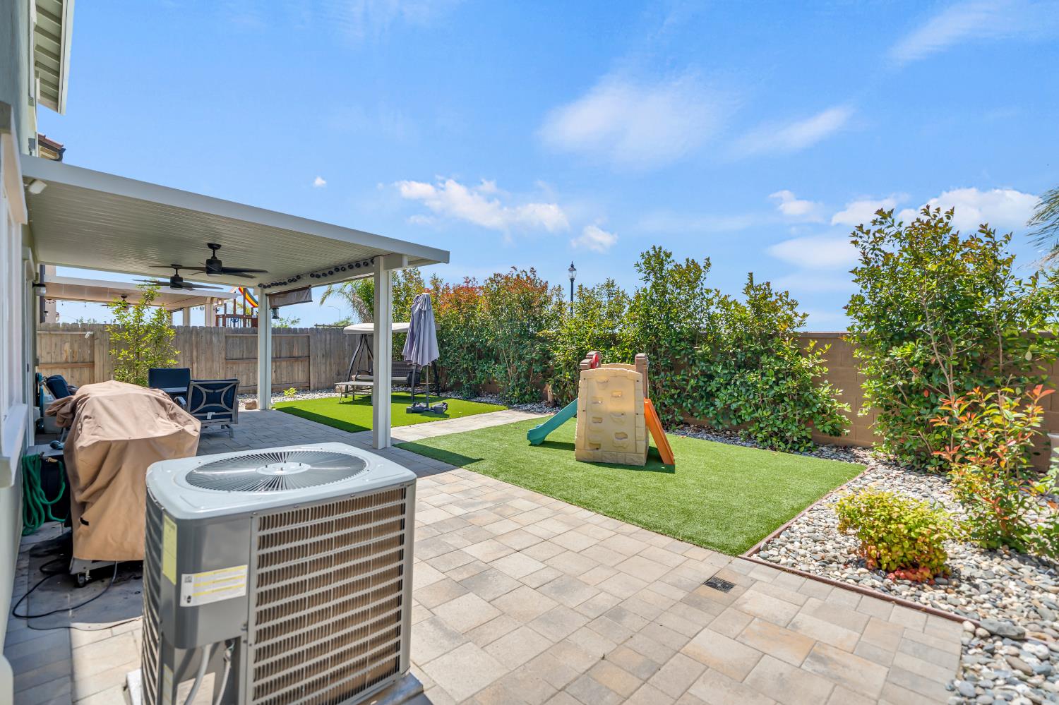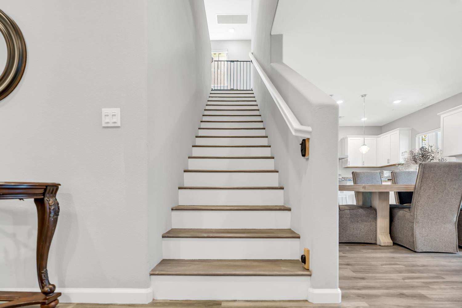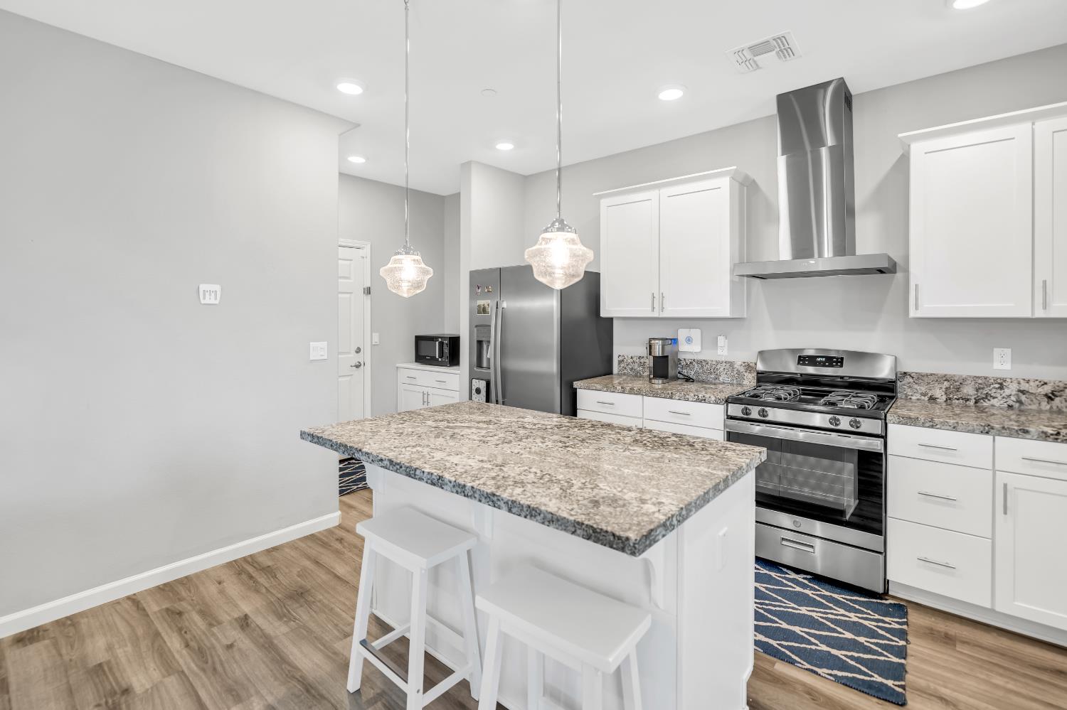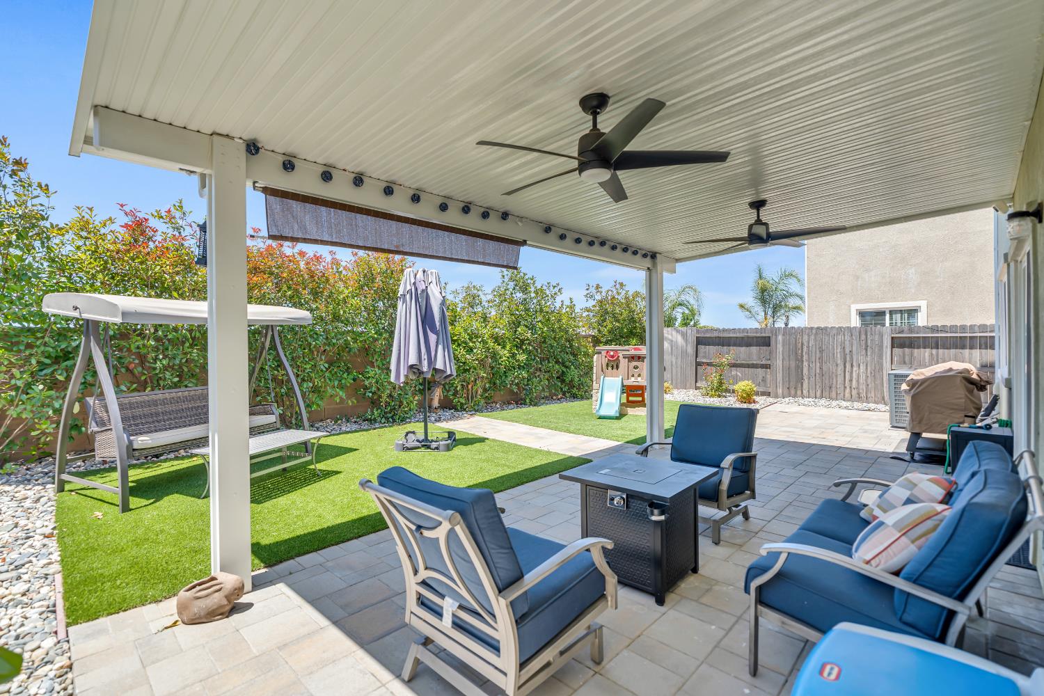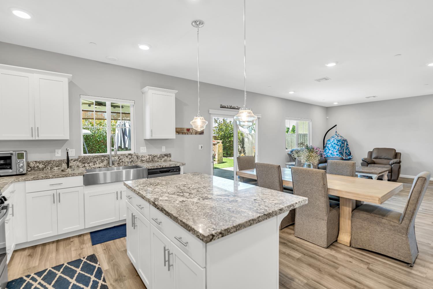 Welcome to this beautifully maintained Charles model by K. Hovnanian, located in the highly desirable Solaire community of West Roseville. Backing to open farmland, this home offers a peaceful backyard retreat with added privacy perfect for quiet evenings or entertaining. Inside, you'll find a bright and open floor plan that flows effortlessly from the spacious living area to the stunning kitchen. Enjoy cooking and gathering around the large island, complete with elegant quartz countertops, and appreciate the stylish grey-toned interior paint and luxury vinyl plank flooring throughout. The professionally installed pavers in both the front walkway and backyard add a polished touch, while the covered patio with ceiling fans creates a great space for outdoor living. A downstairs bedroom and full bath provide comfort and flexibilityideal for guests or multi-generational living. Energy efficiency is a plus with solar panels and utilities powered by Roseville Electric, helping keep monthly costs low. Conveniently located near local favorites like Kitchen 747 and MoJoe's Coffee, plus the newest Safeway in the area and the upcoming Costco shopping center, you'll have everything you need just minutes away.