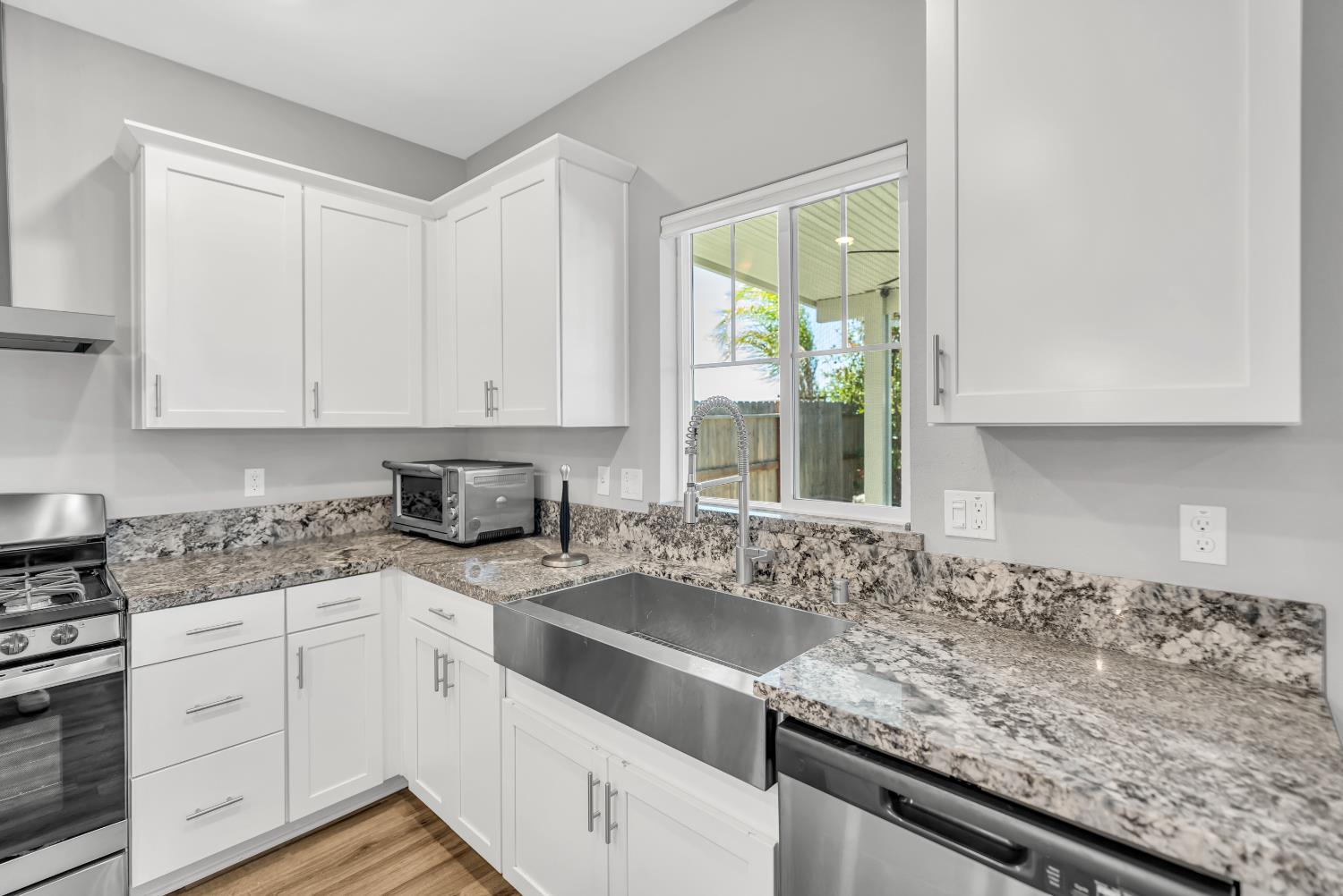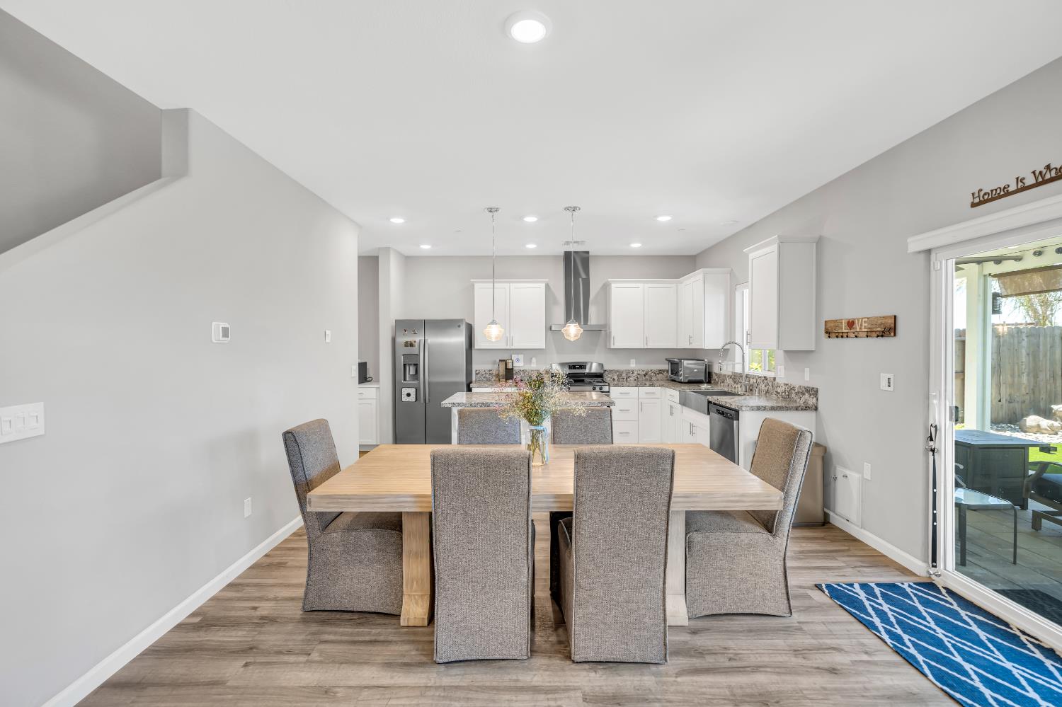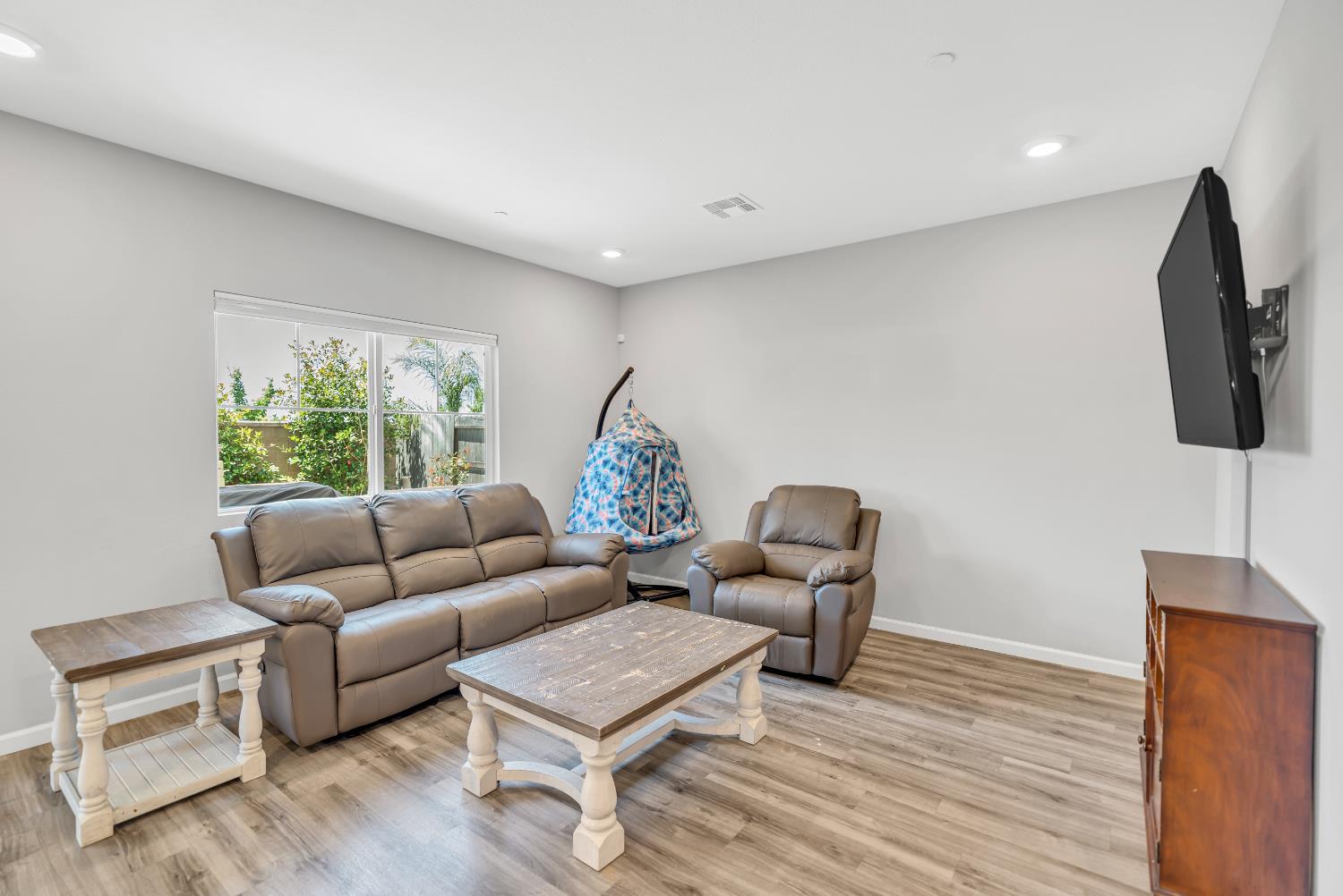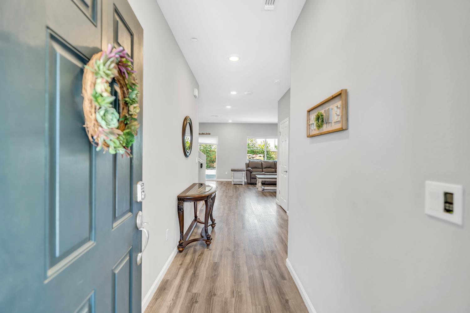 Welcome to this beautifully maintained Charles model by K. Hovnanian, located in the highly desirable Solaire community of West Roseville. Backing to open farmland, this home offers a peaceful backyard retreat with added privacy perfect for quiet evenings or entertaining. Inside, you'll find a bright and open floor plan that flows effortlessly from the spacious living area to the stunning kitchen. Enjoy cooking and gathering around the large island, complete with elegant quartz countertops, and appreciate the stylish grey-toned interior paint and luxury vinyl plank flooring throughout. The professionally installed pavers in both the front walkway and backyard add a polished touch, while the covered patio with ceiling fans creates a great space for outdoor living. A downstairs bedroom and full bath provide comfort and flexibilityideal for guests or multi-generational living. Energy efficiency is a plus with solar panels and utilities powered by Roseville Electric, helping keep monthly costs low. Conveniently located near local favorites like Kitchen 747 and MoJoe's Coffee, plus the newest Safeway in the area and the upcoming Costco shopping center, you'll have everything you need just minutes away.