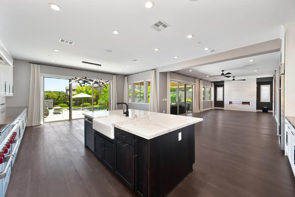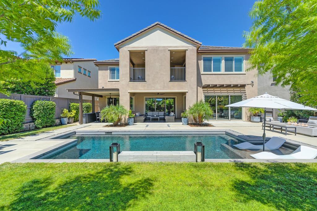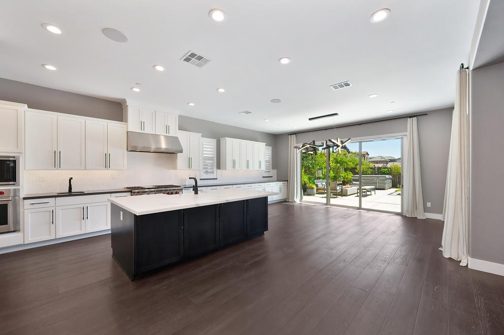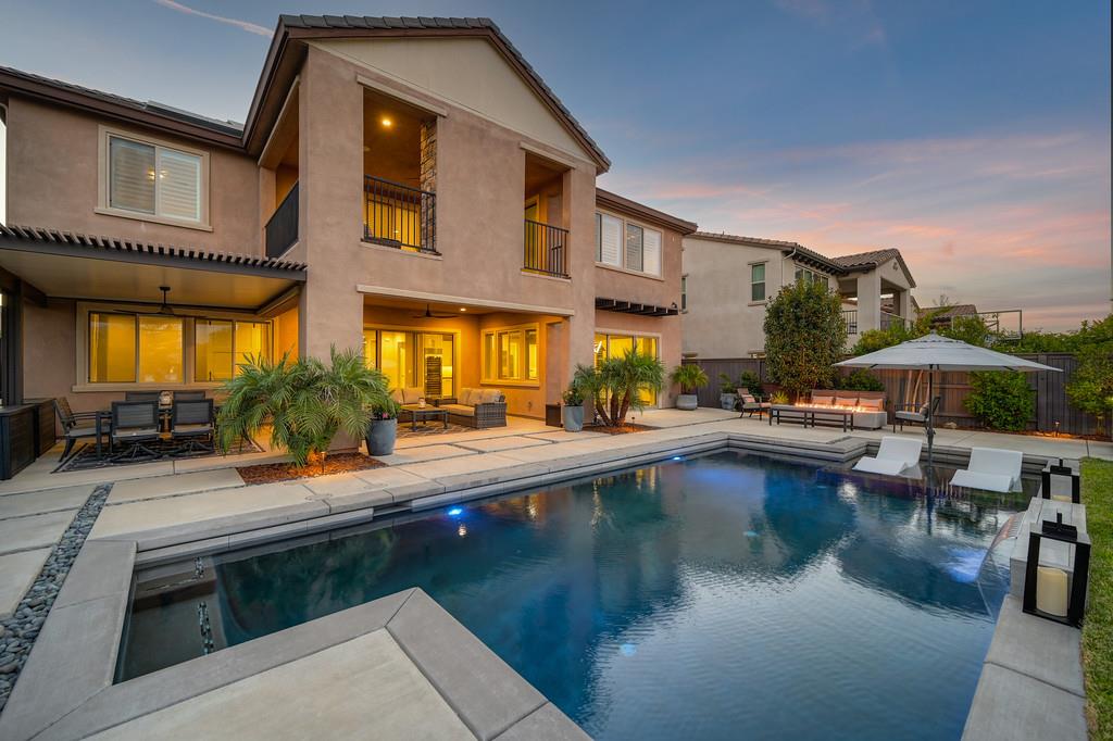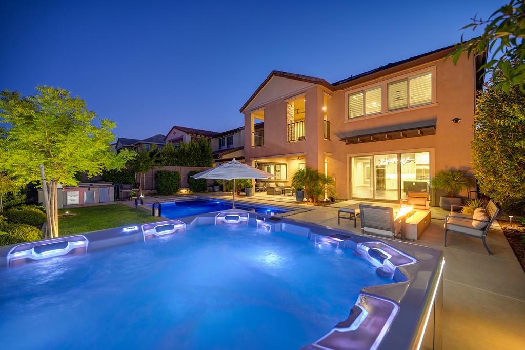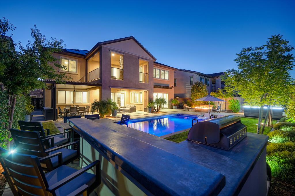 726 Wyeth Court in Serrano's Country Club community offers 4,475 square feet of living space - 5 bedroom / 5.5 bathroom home blends modern elegance and functional design with not one, but two primary suites, perfect for multigenerational living. The main floor with sweeping staircase, modern form designer chandeliers, expansive great room with fireplace and custom barn door which connects to a versatile flex work space, and Junior Primary Suite w/ it's own washer & dryer, enhances the overall living experience downstairs. The kitchen is incredible, boasting top-of-the-line Wolf appliances, SubZero 145 bottle wine fridge, dual freestanding SubZero refrigerator/freezer, and endless counter space. Upstairs has its own expansive family room/loft, Main Primary Suite with covered balcony and fireplace that overlooks the beautifully landscaped backyard. Owned solar for the home and pool keep everyone comfortable all summer long! Step outside through multi-panel stacking doors that offer access to your resort style backyard oasis with extended covered patio area, built-in custom bbq kitchen, gas fire lounge, gorgeous pool area, and Bull Frog Hot Tub! Control your home's sound system and all other features with state-of-the-art Control4 automation.