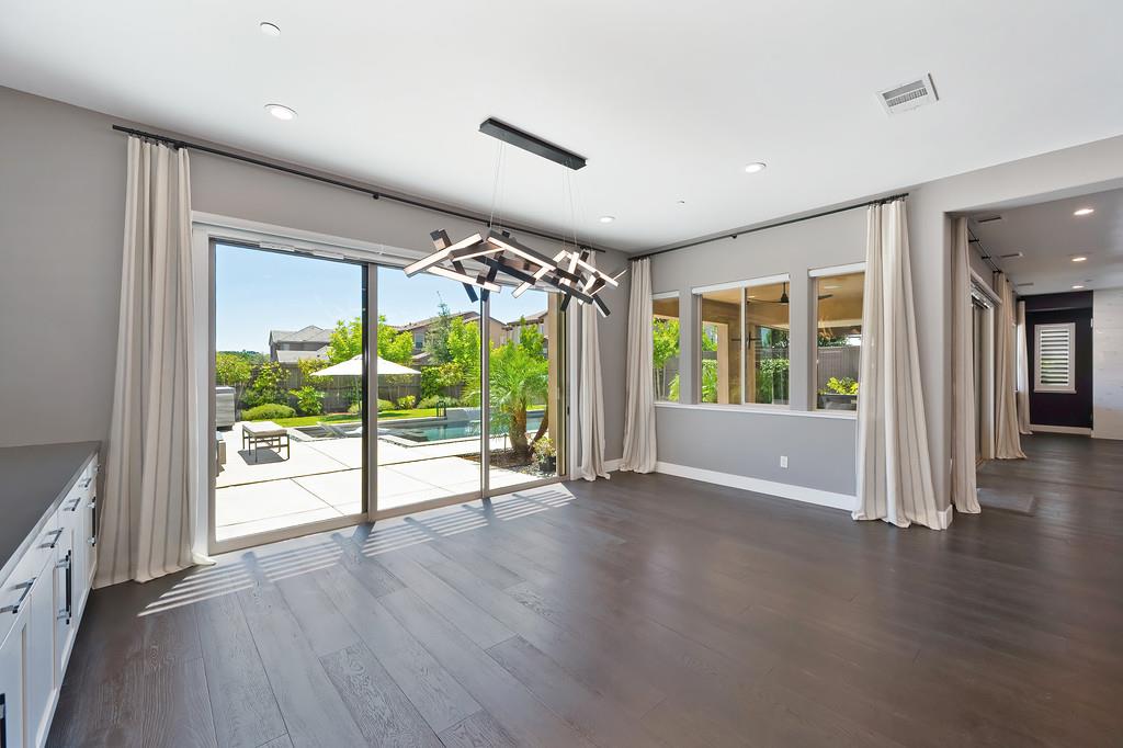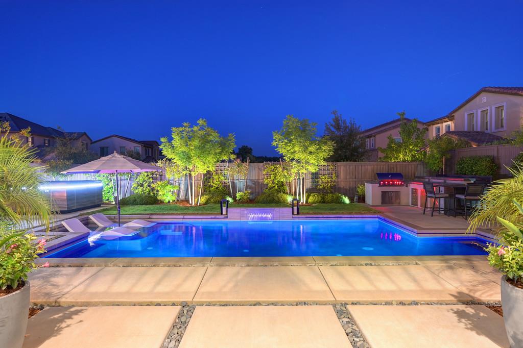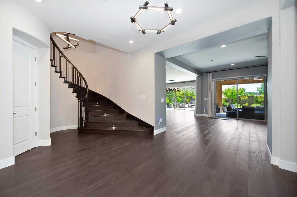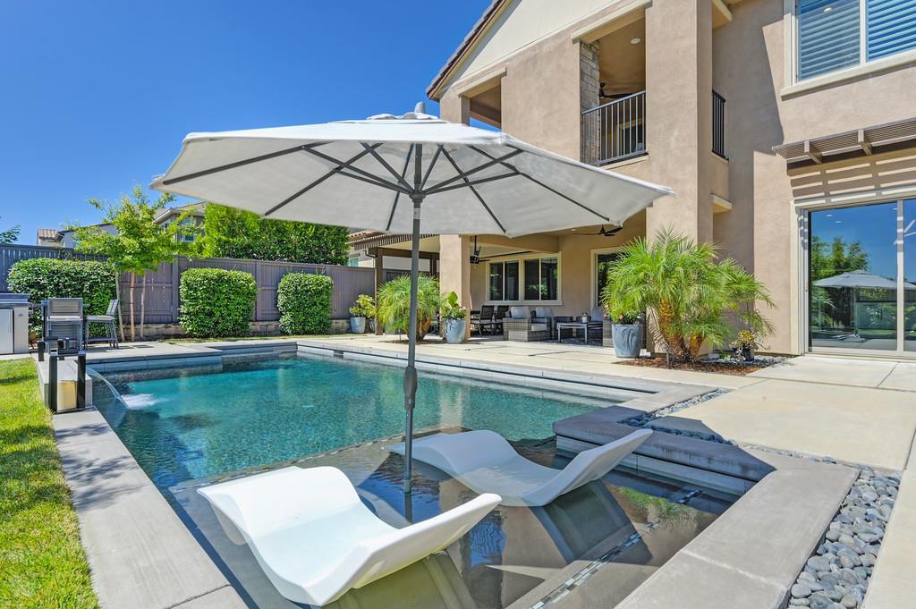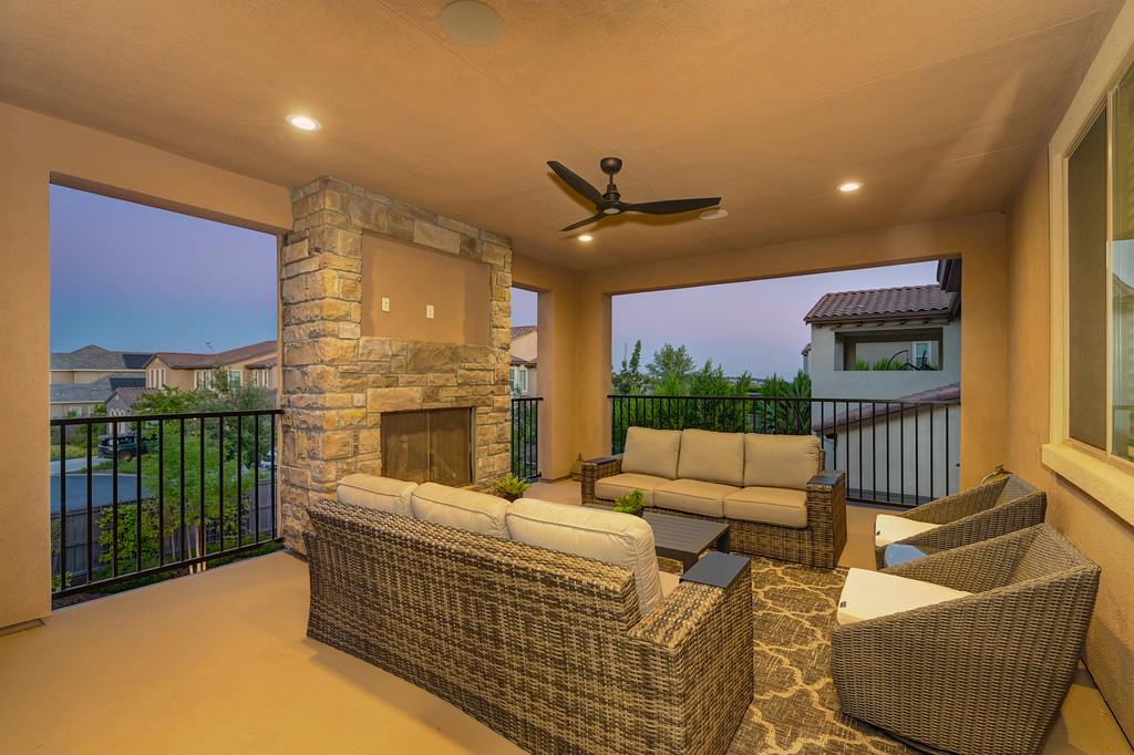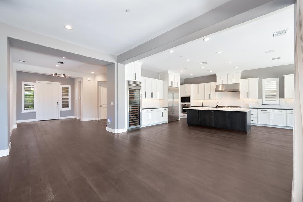 726 Wyeth Court in Serrano's Country Club community offers 4,475 square feet of living space - 5 bedroom / 5.5 bathroom home blends modern elegance and functional design with not one, but two primary suites, perfect for multigenerational living. The main floor with sweeping staircase, modern form designer chandeliers, expansive great room with fireplace and custom barn door which connects to a versatile flex work space, and Junior Primary Suite w/ it's own washer & dryer, enhances the overall living experience downstairs. The kitchen is incredible, boasting top-of-the-line Wolf appliances, SubZero 145 bottle wine fridge, dual freestanding SubZero refrigerator/freezer, and endless counter space. Upstairs has its own expansive family room/loft, Main Primary Suite with covered balcony and fireplace that overlooks the beautifully landscaped backyard. Owned solar for the home and pool keep everyone comfortable all summer long! Step outside through multi-panel stacking doors that offer access to your resort style backyard oasis with extended covered patio area, built-in custom bbq kitchen, gas fire lounge, gorgeous pool area, and Bull Frog Hot Tub! Control your home's sound system and all other features with state-of-the-art Control4 automation.